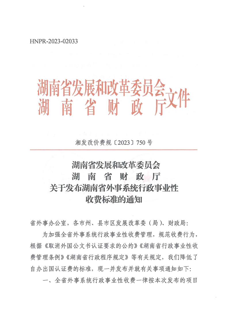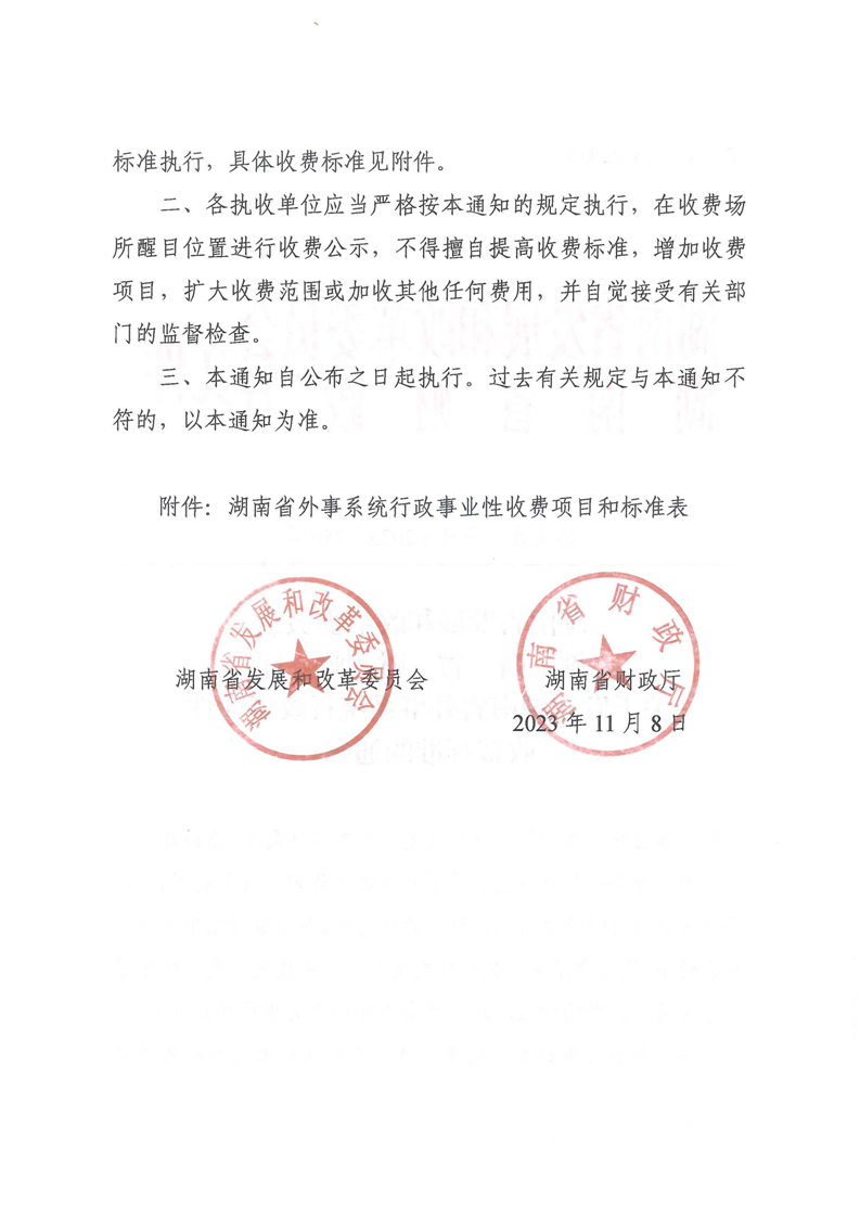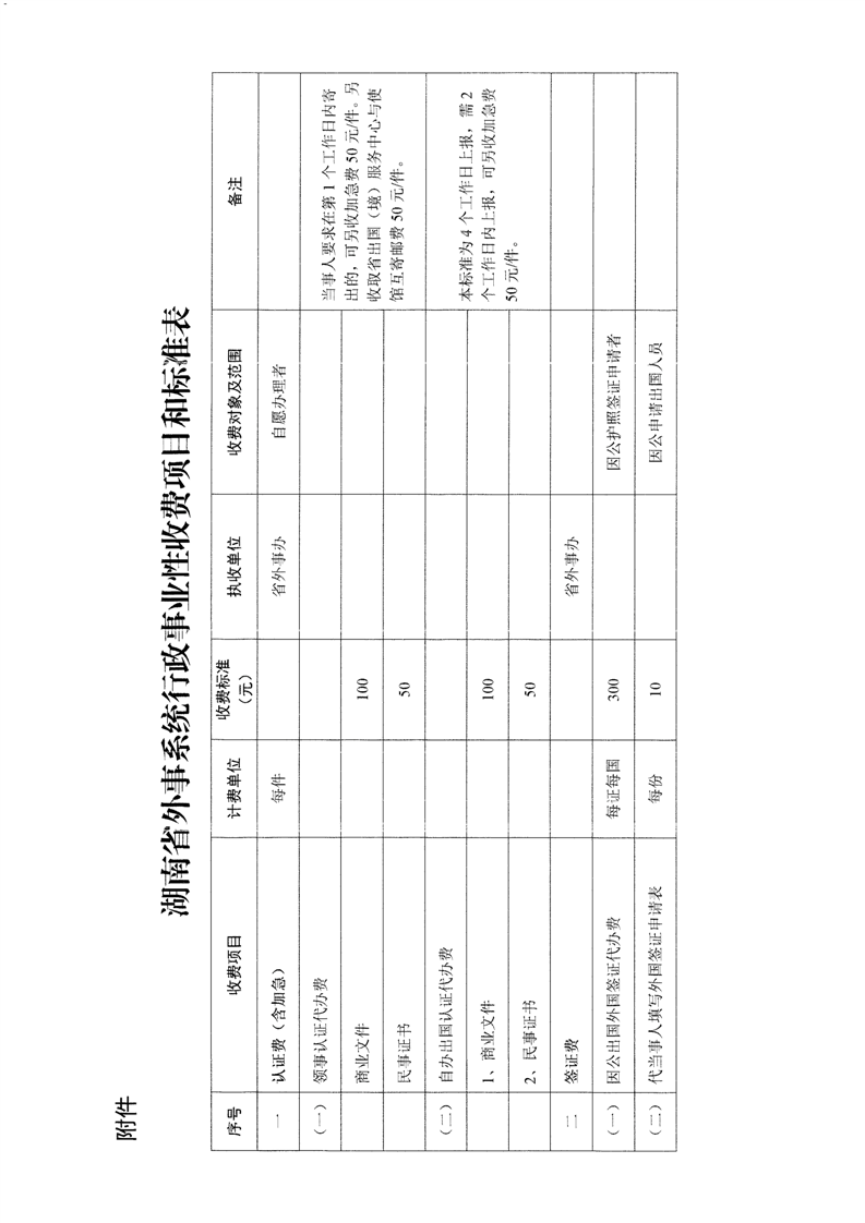 关于发布湖南省外事系统行政事业性收费标准的通知