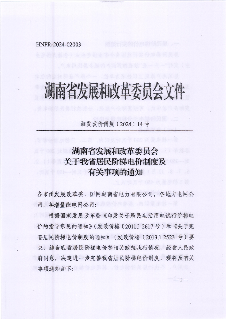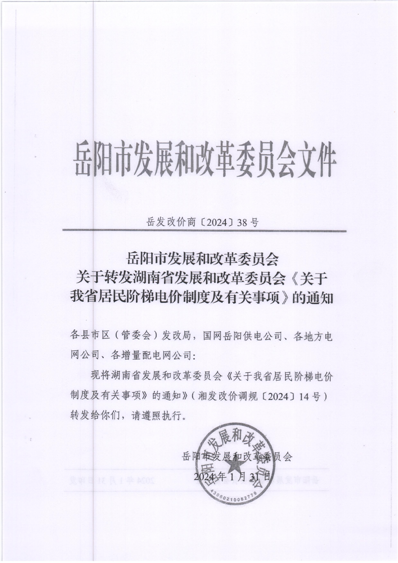 关于转发湖南省发展和改革委员会《关于我省居民阶梯电价制度及有关事项》的通知