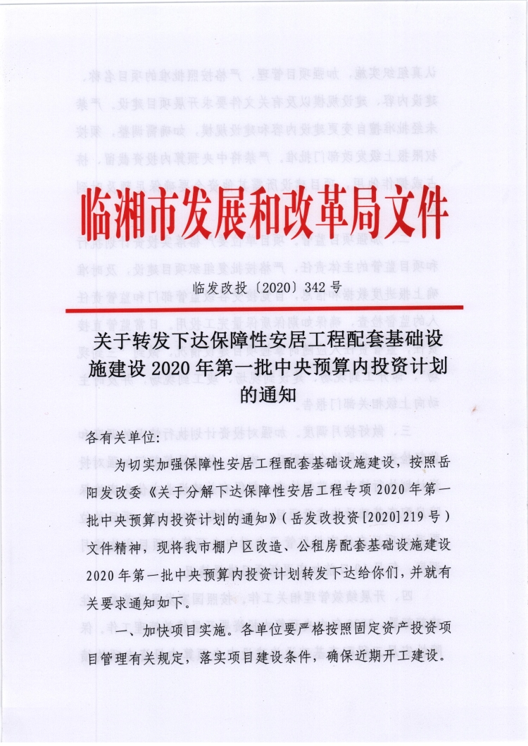 关于转发下达保障性安居工程配套基础设施建设2020年第一批中央预算内投资计划的通知