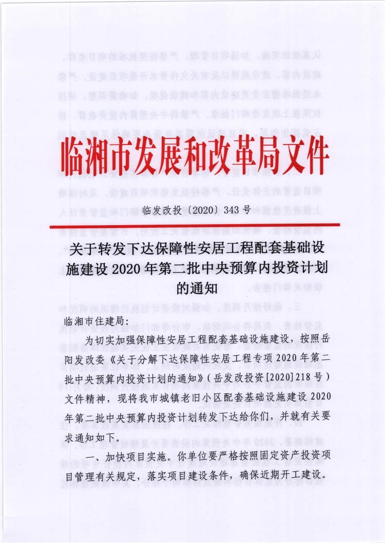 关于转发下达保障性安居工程配套基础设施建设2020年第二批中央预算内投资计划的通知