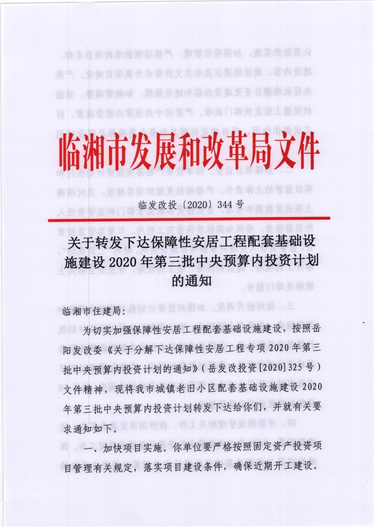 关于转发下达保障性安居工程配套基础设施建设2020年第三批中央预算内投资计划的通知