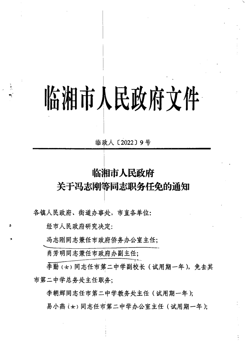 关于冯志刚等同志职务任免的通知