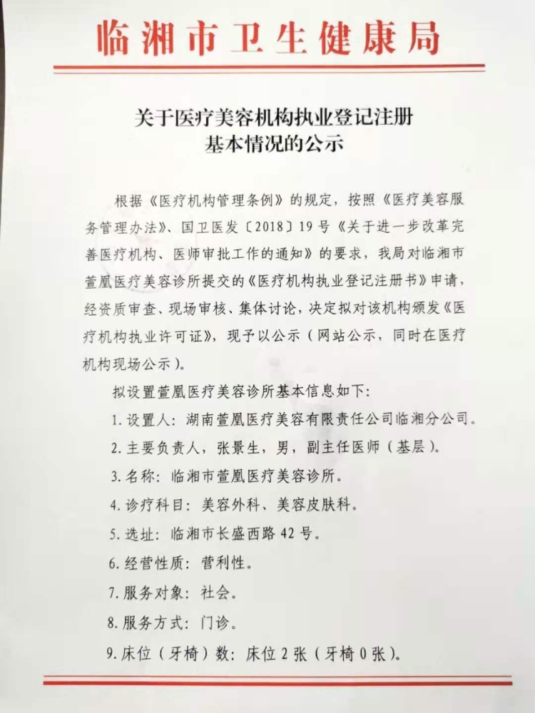 关于医疗美容机构执业登记注册基本情况的公示
