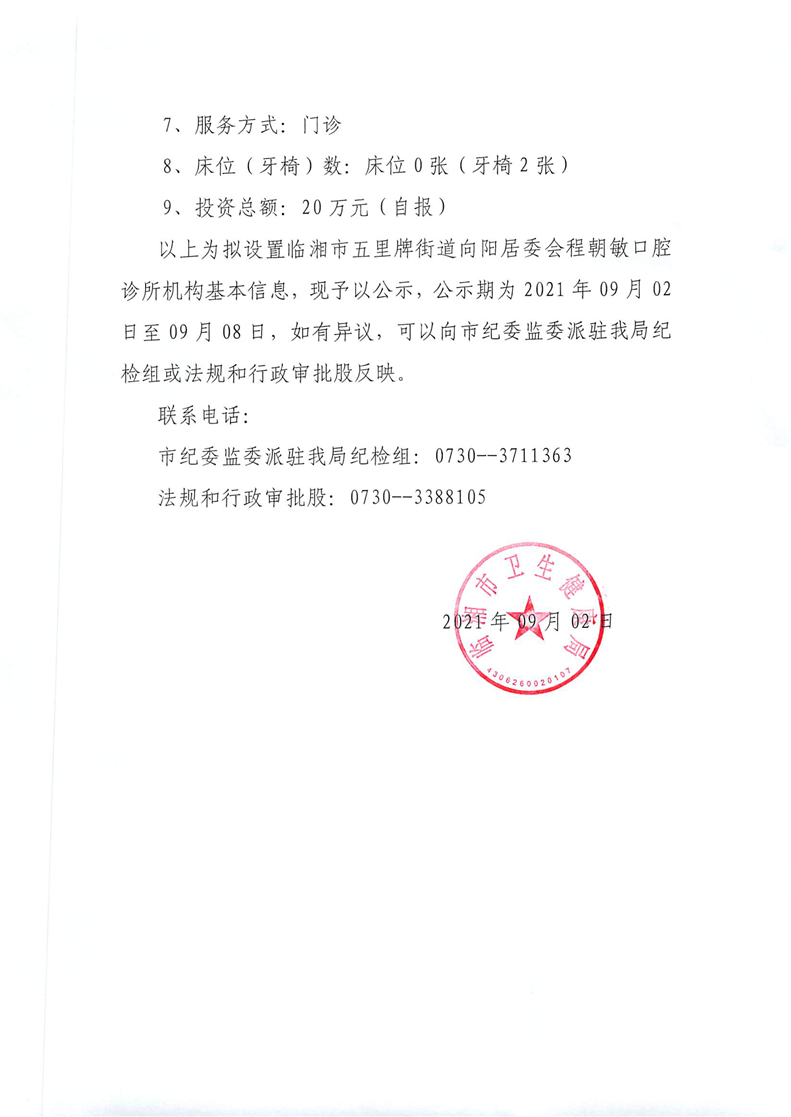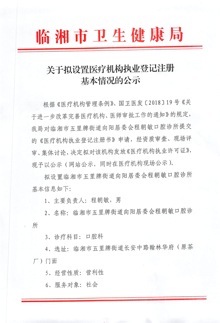 关于拟设置医疗机构执业登记注册基本情况的公示(1)