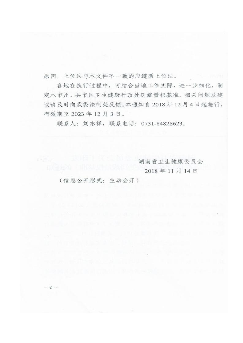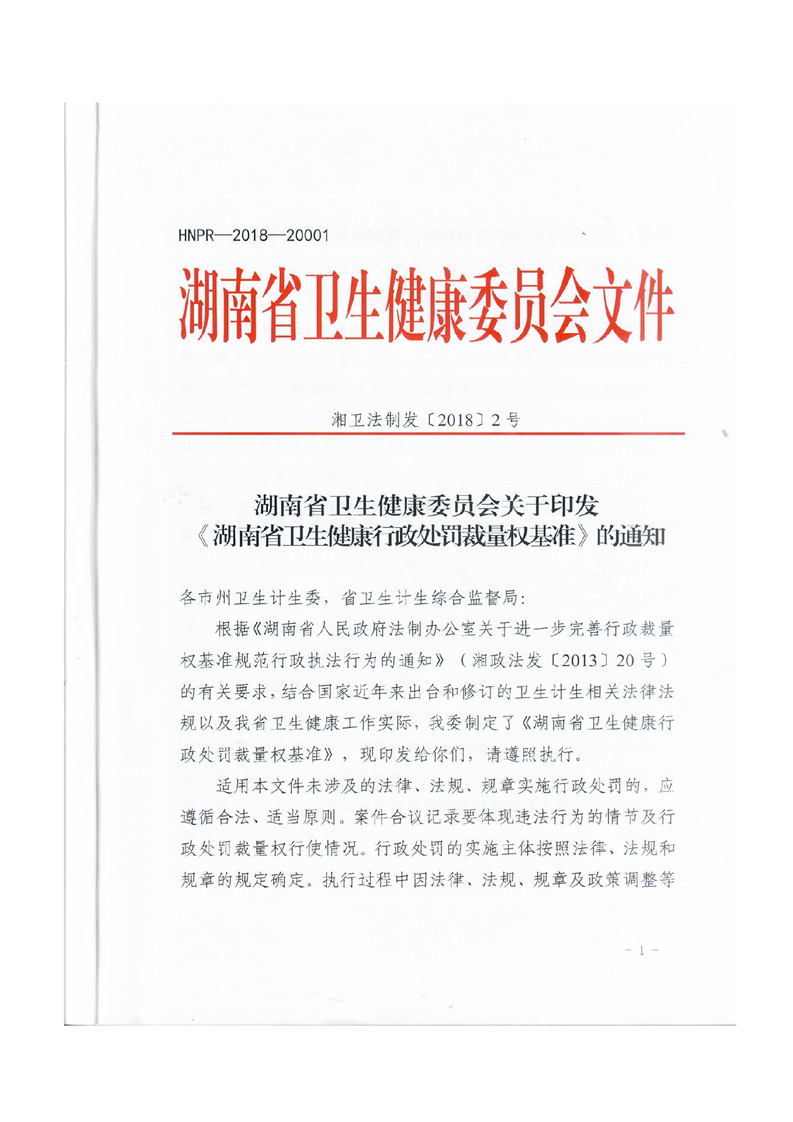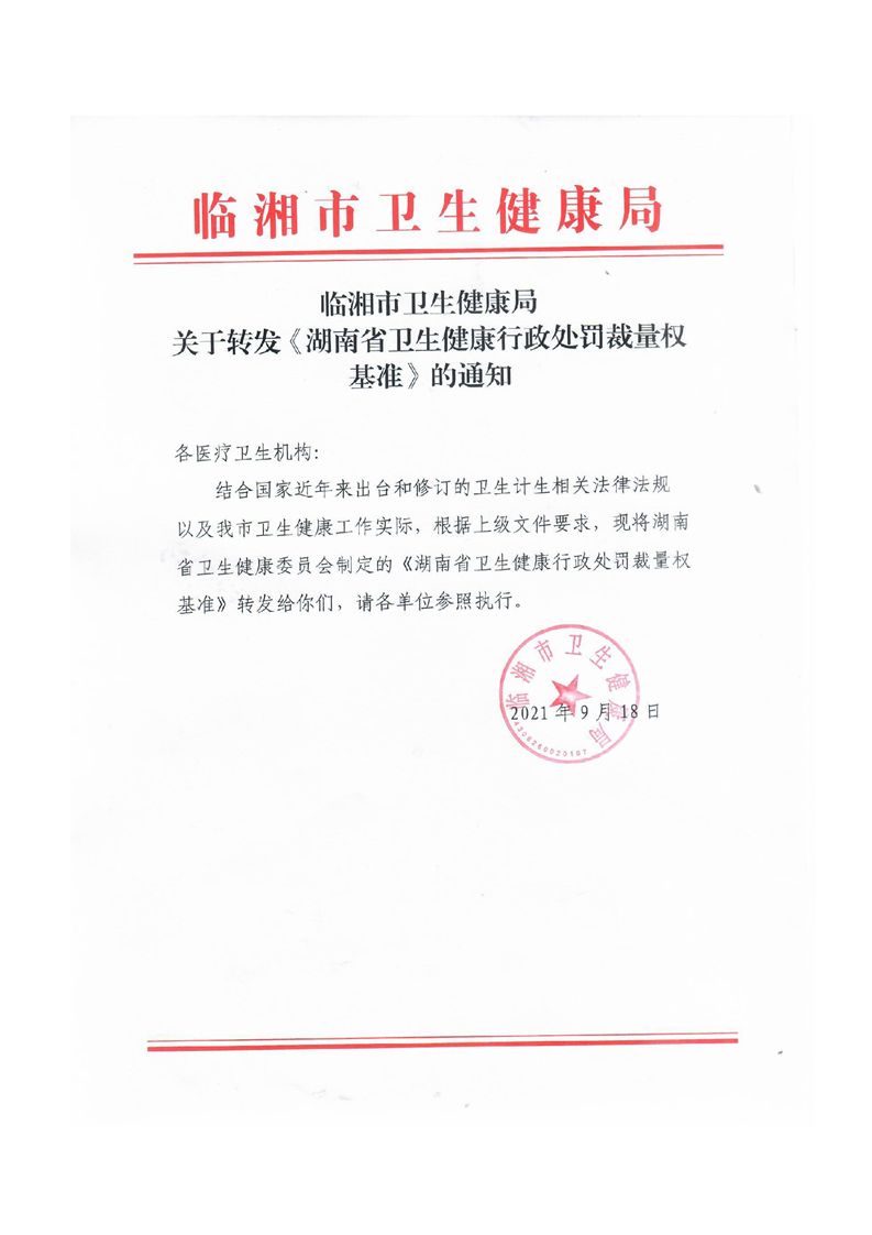 关于转发《湖南省卫生健康行政处罚裁量权基准》的通知