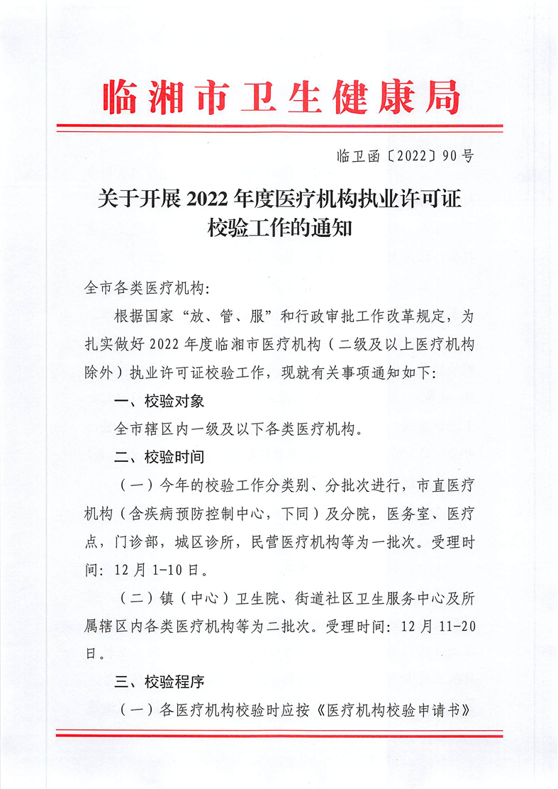 关于开展2022年度医疗机构执业许可证效验工作的通知
