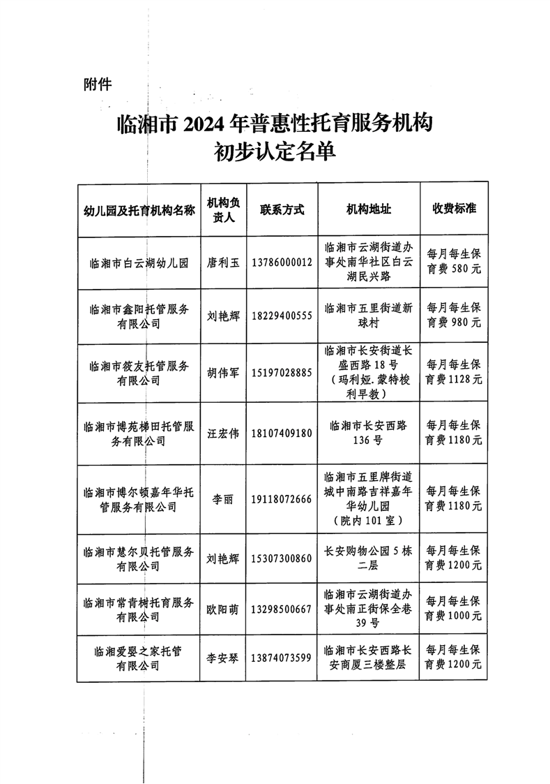 临湘市2024年普惠性托育服务机构初步认定结果公示