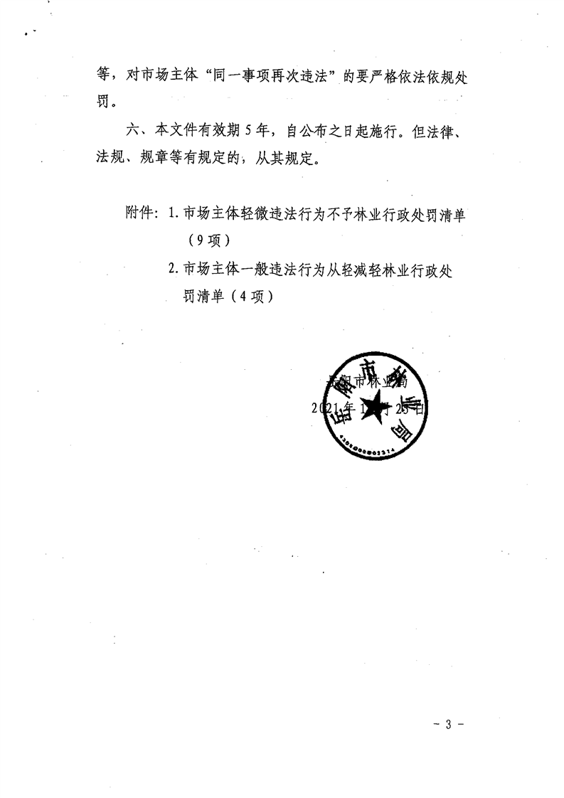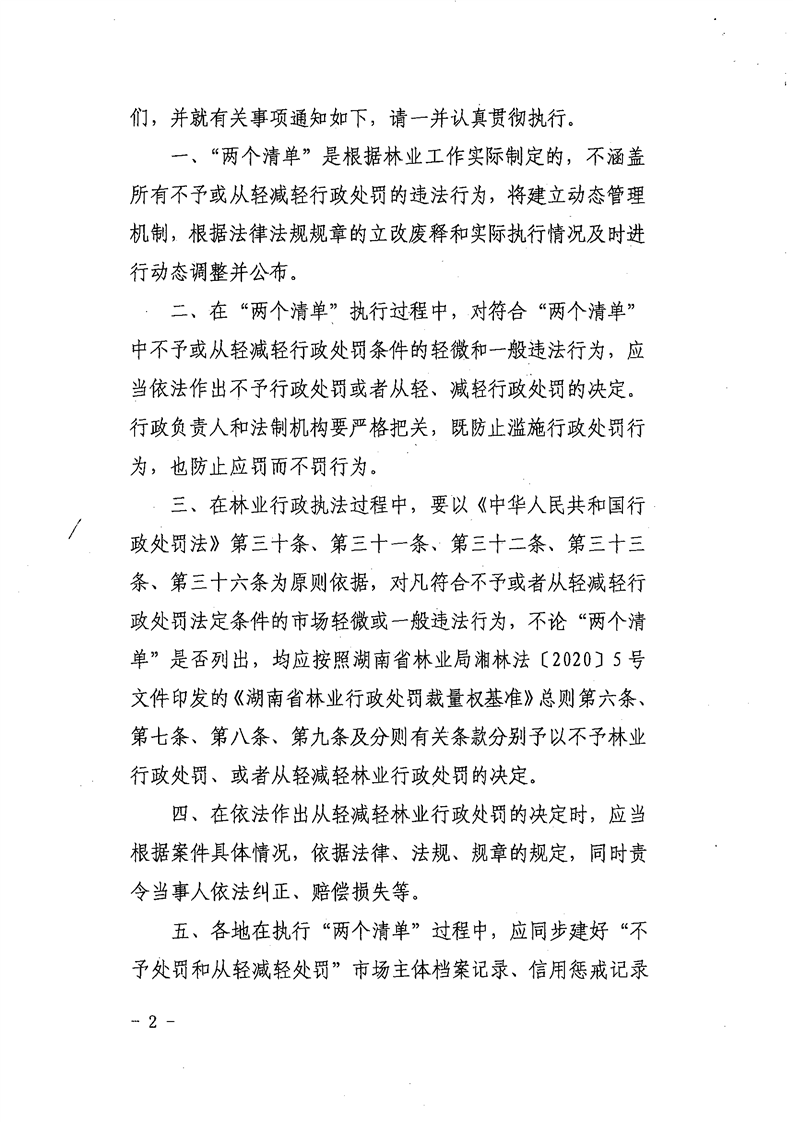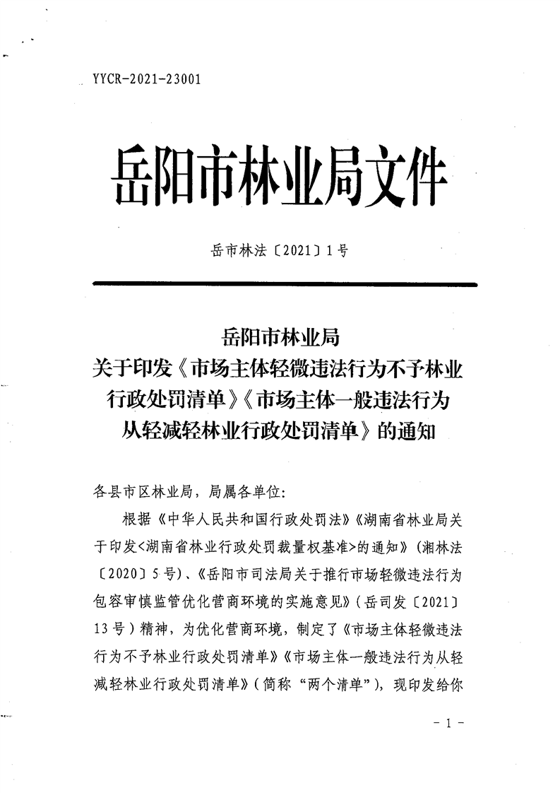 临湘市林业局转发岳阳市林业局关于印发《市场主体轻微违法行为不予林业行政处罚清单》《市场主体一般违法行为 从轻减轻林业行政处罚清单》的通知