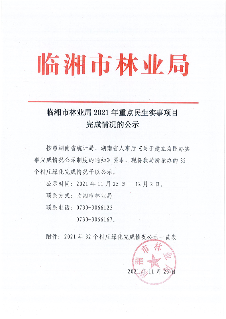 临湘市林业局2021年重点民生实事项目完成情况的公示