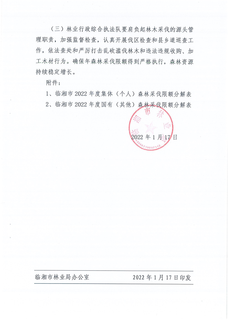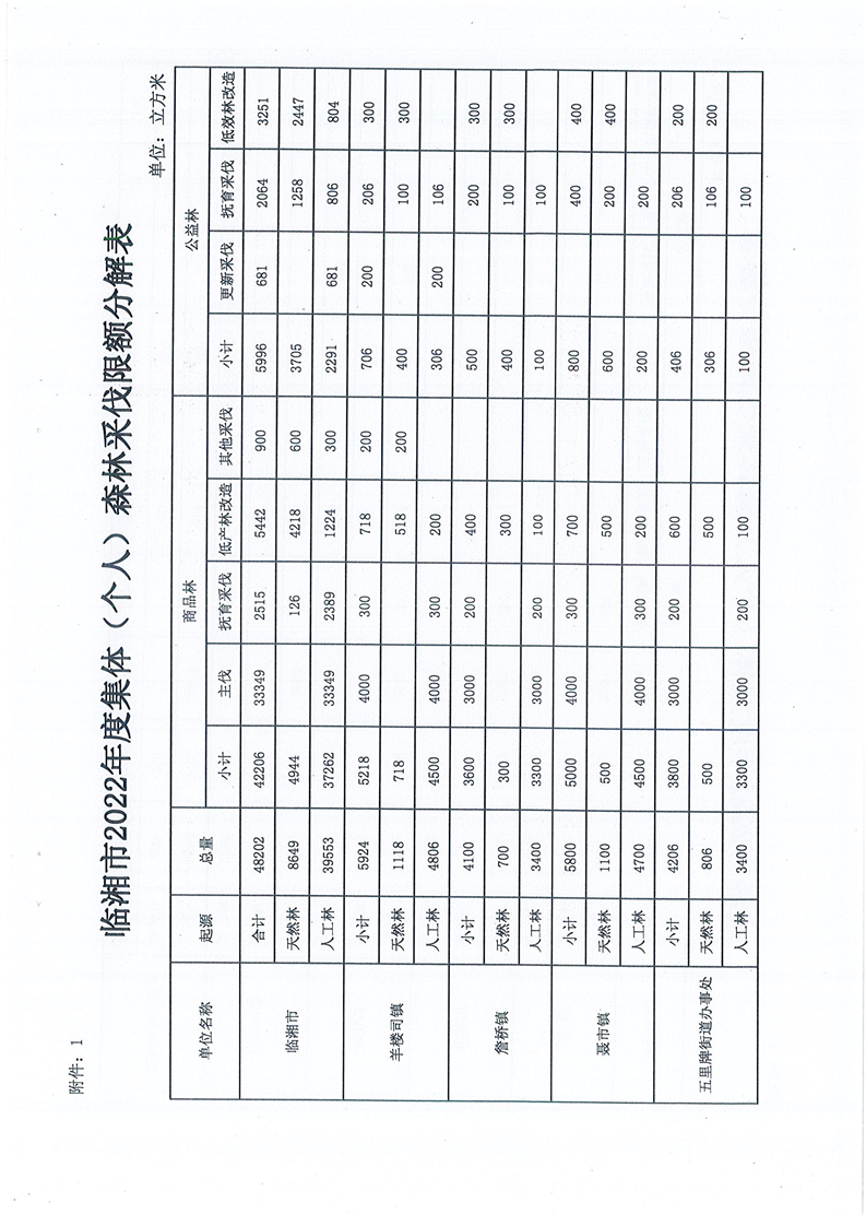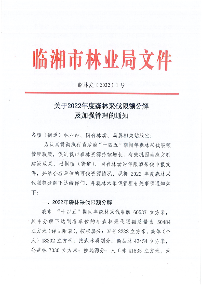 关于2022年度森林采伐限额分解及加强管理的通知