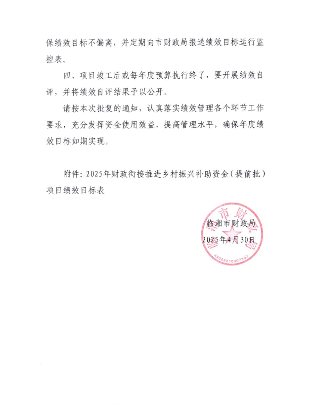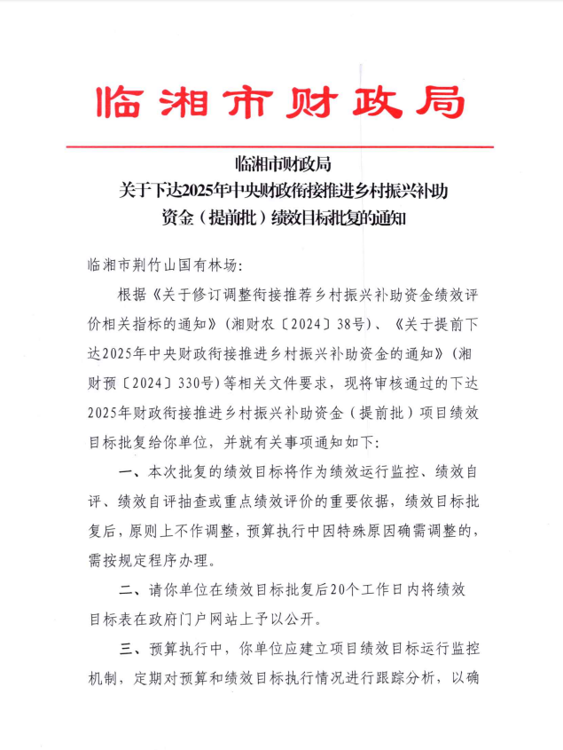 关于下达2025年中央财政衔接推进乡村振兴补助资金绩效目标批复的通知(荆竹山)