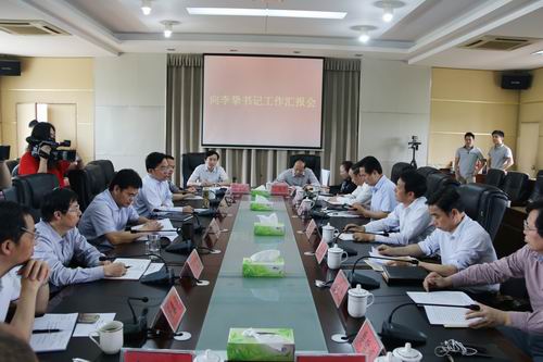 图为我市市委书记李美云向李挚书记现场汇报铁山嘴电排情况