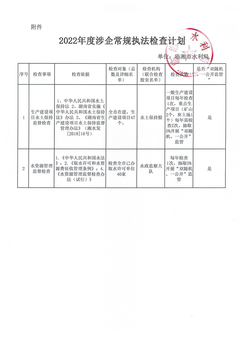 2022年度涉企常规执法检查计划