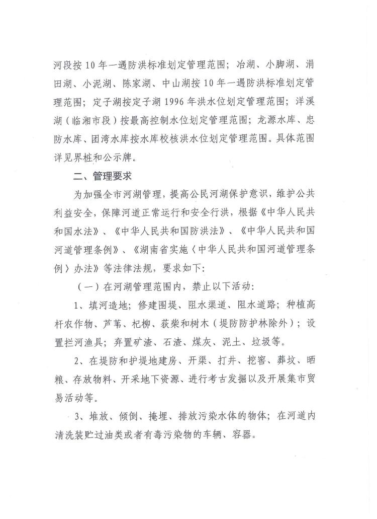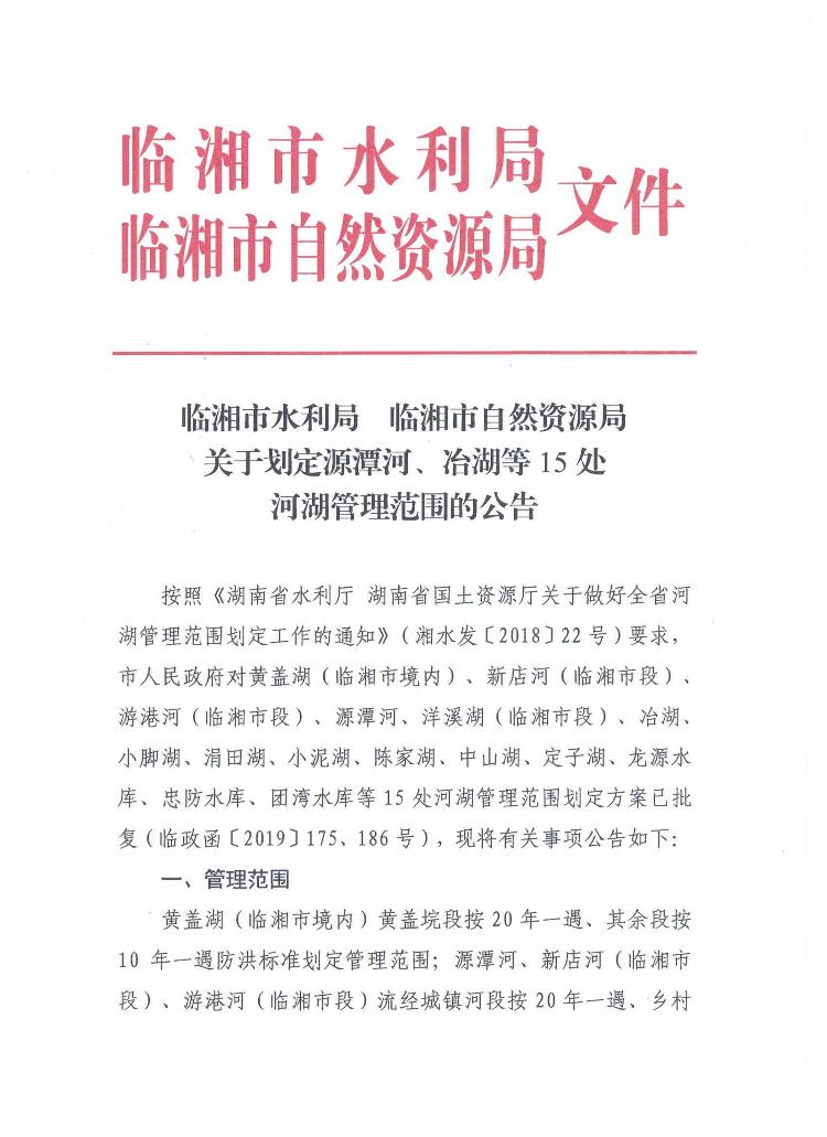 关于划定源潭河、冶湖等15处河湖管理范围的公告