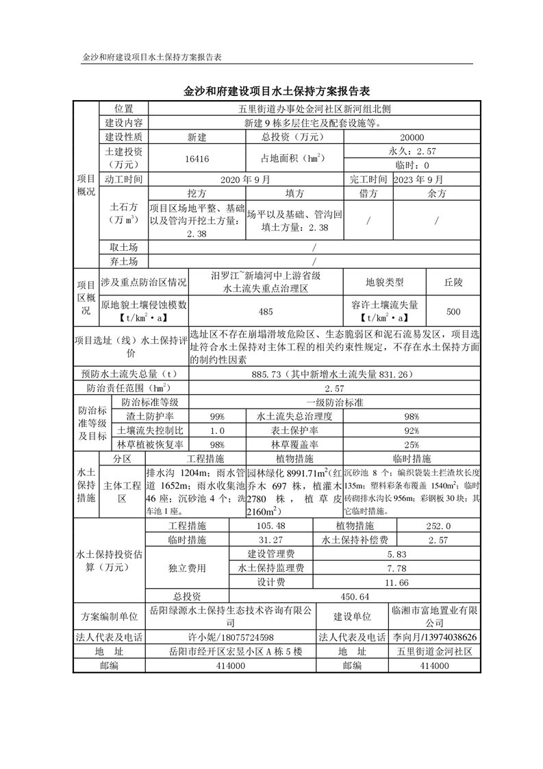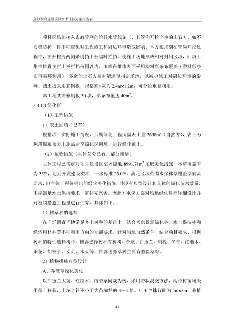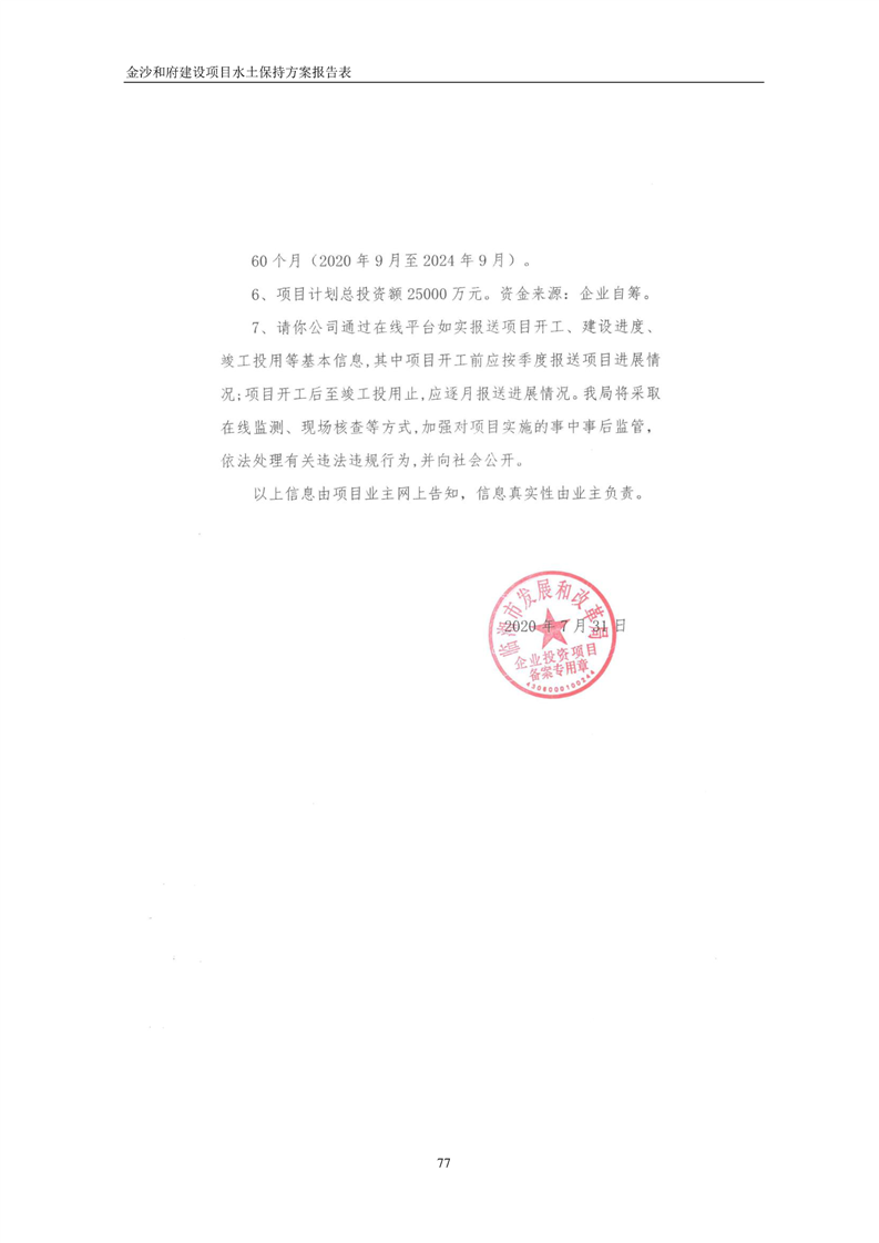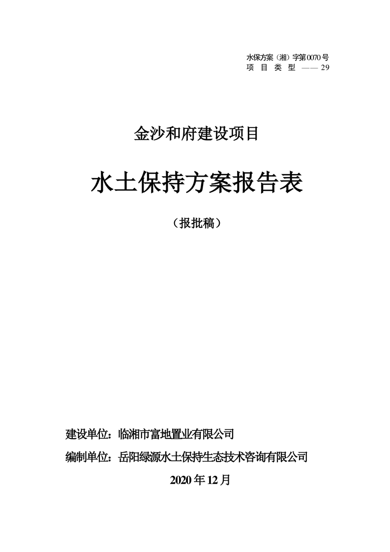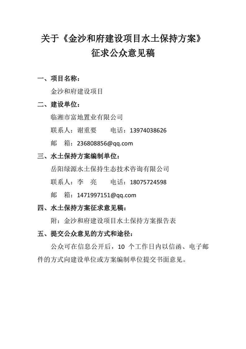 关于金沙和府建设项目水土保持方案征求公众意见稿