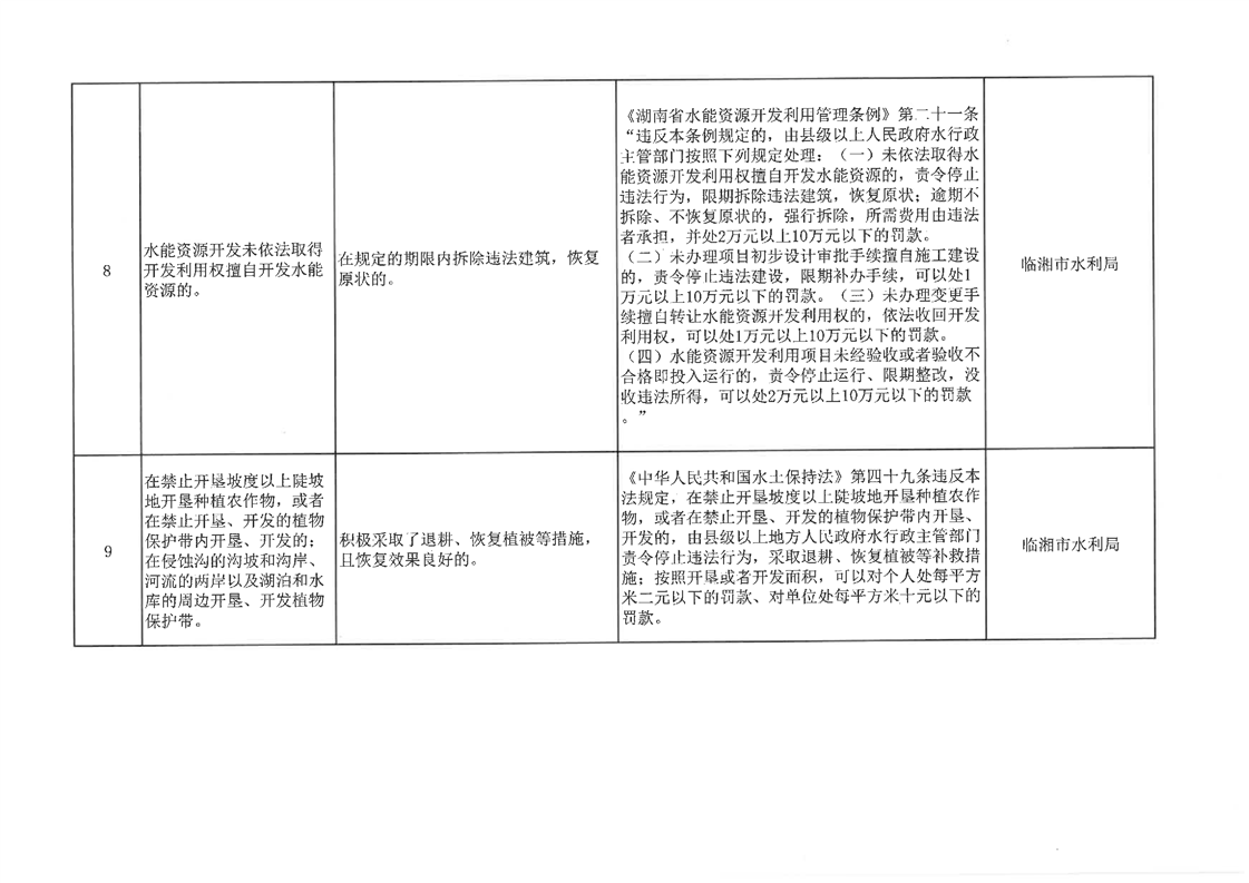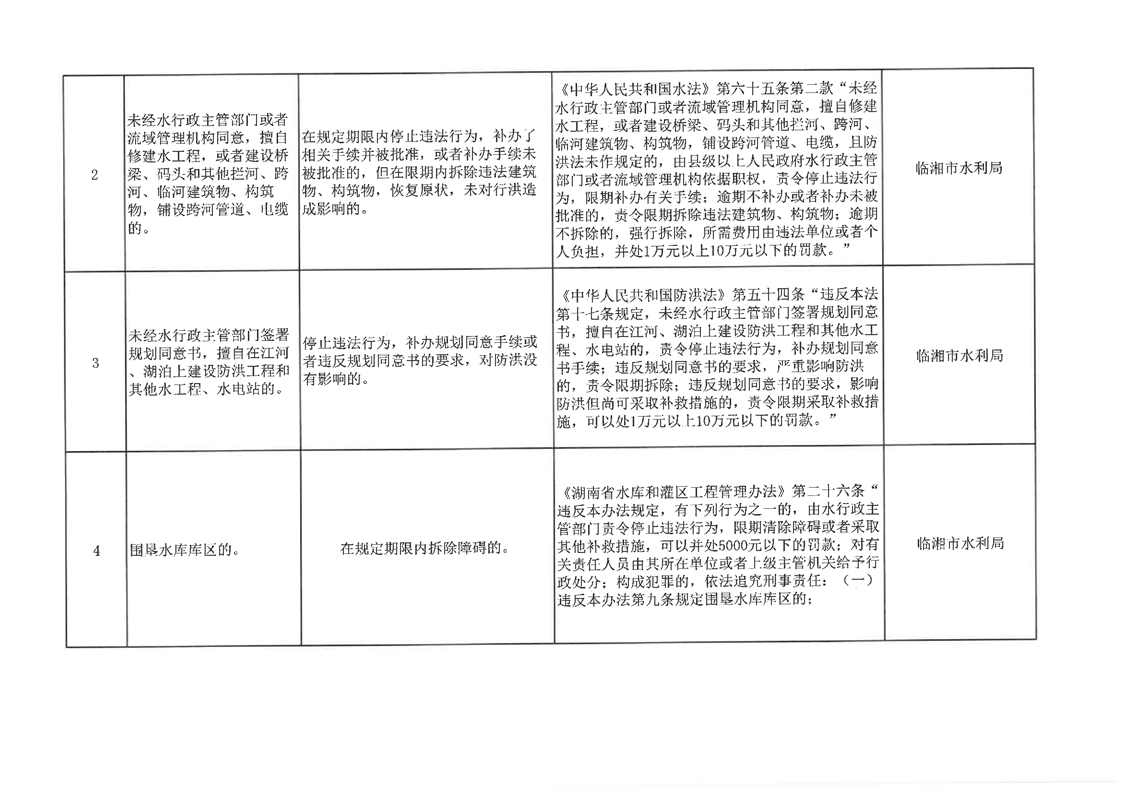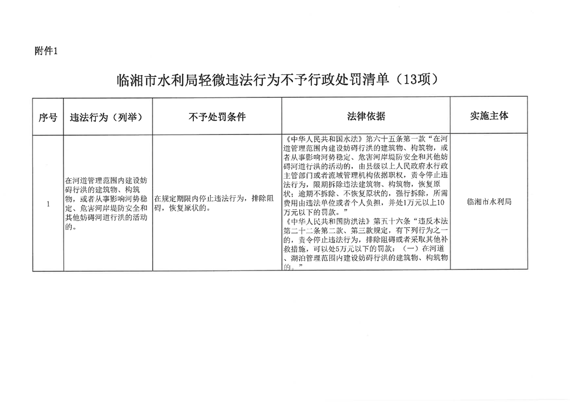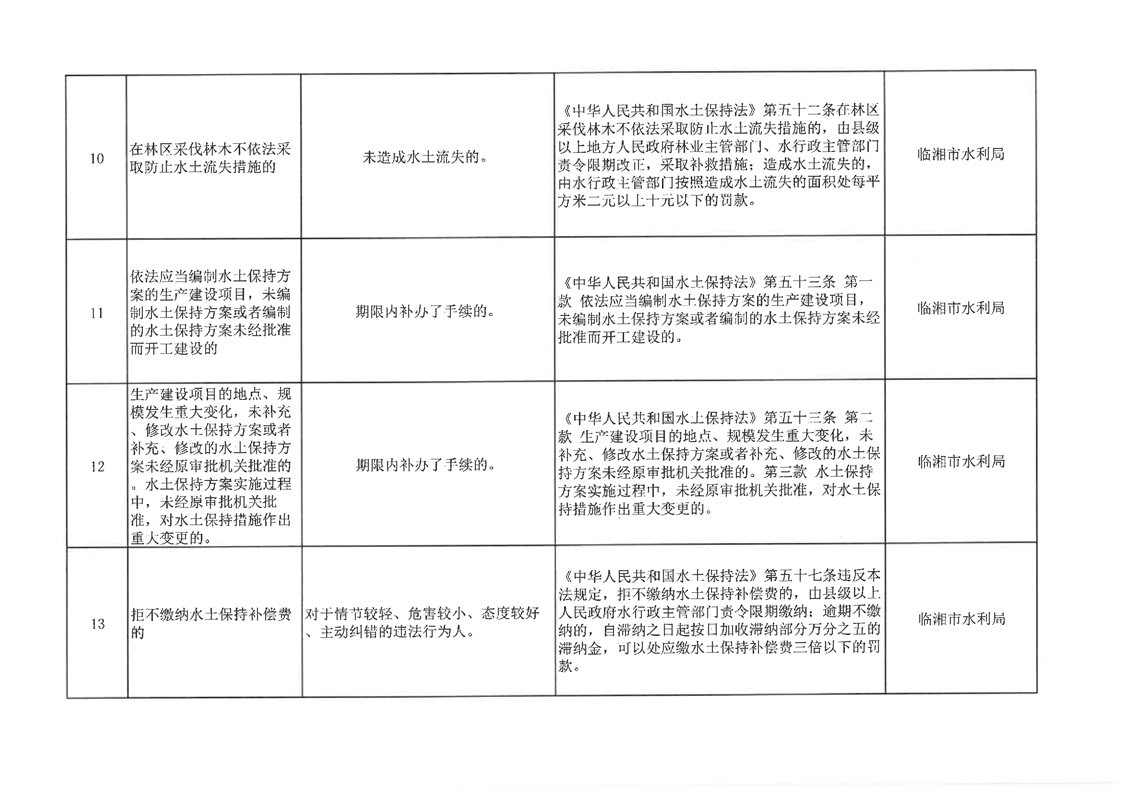 临湘市水利局轻微违法行为不予行政处罚清单(13项)
