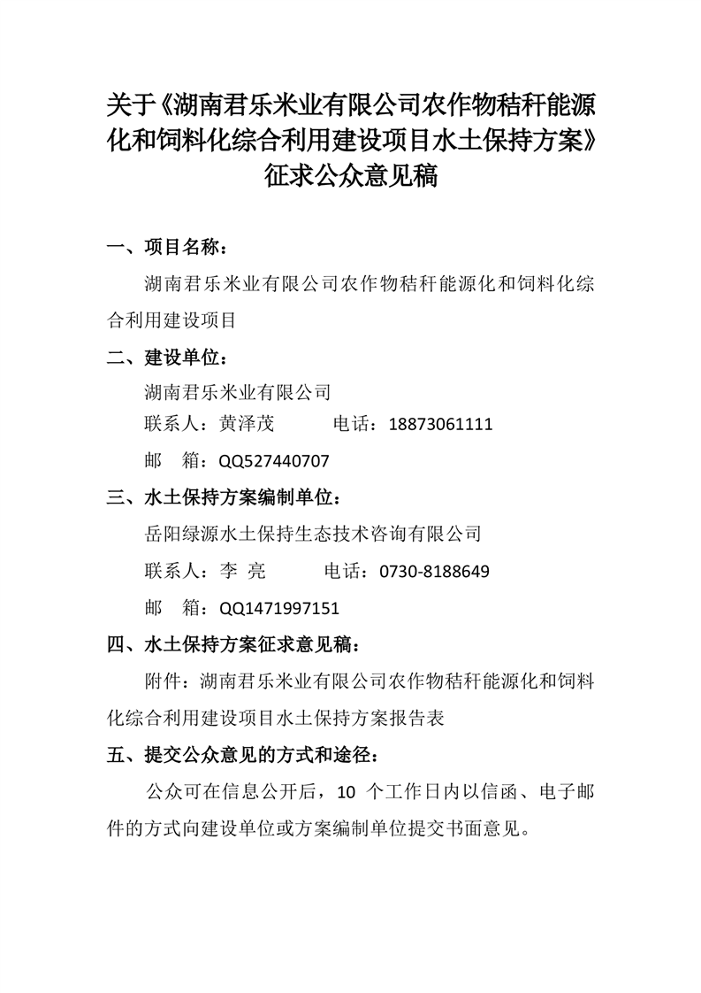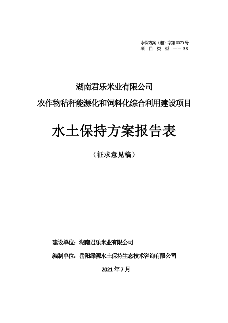 农作物秸秆能源化和饲料化综合利用生产建设项目水土保持方案征求公众意见稿
