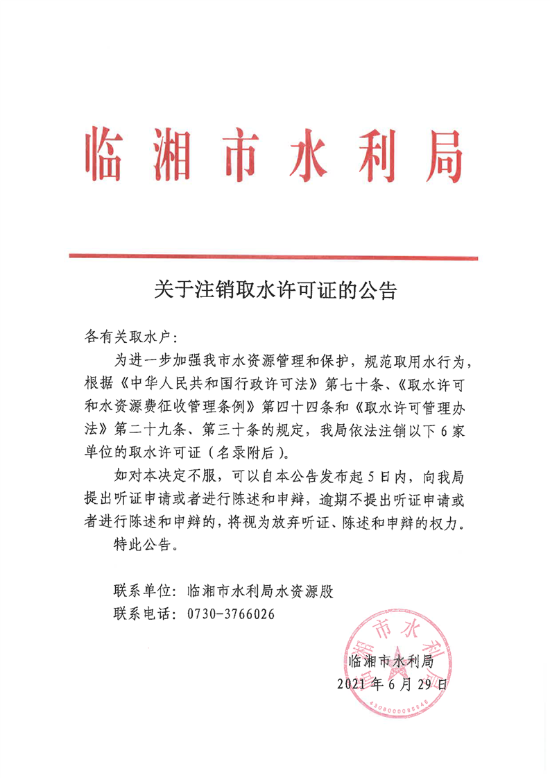 关于注销取水许可证的公告