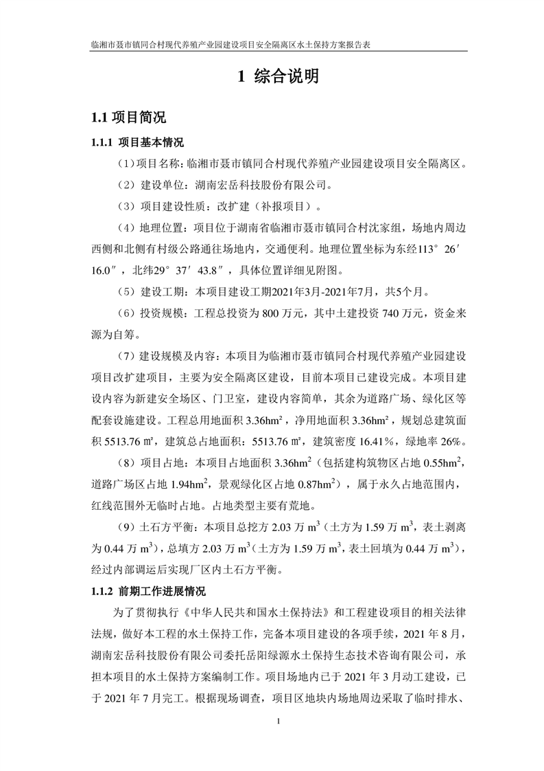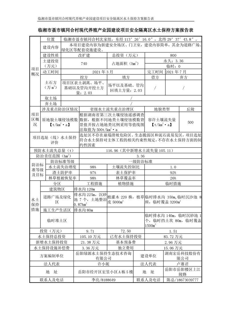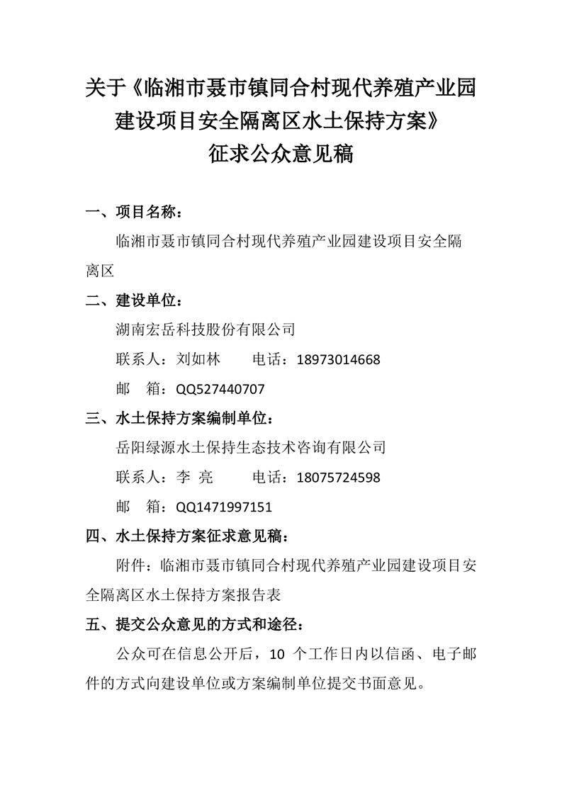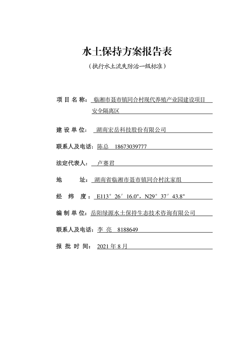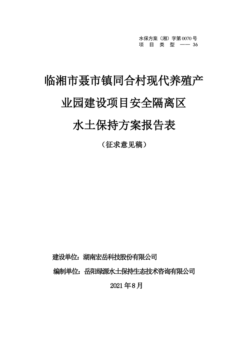 临湘市聂市镇同合村现代养殖产业园水土保持报告表(征求公众意见稿)