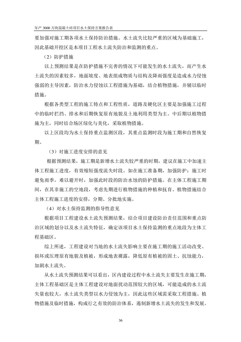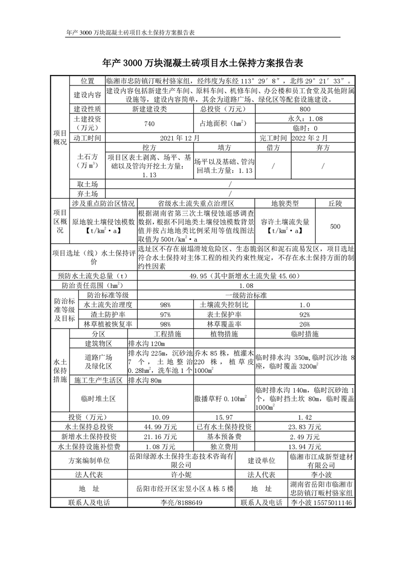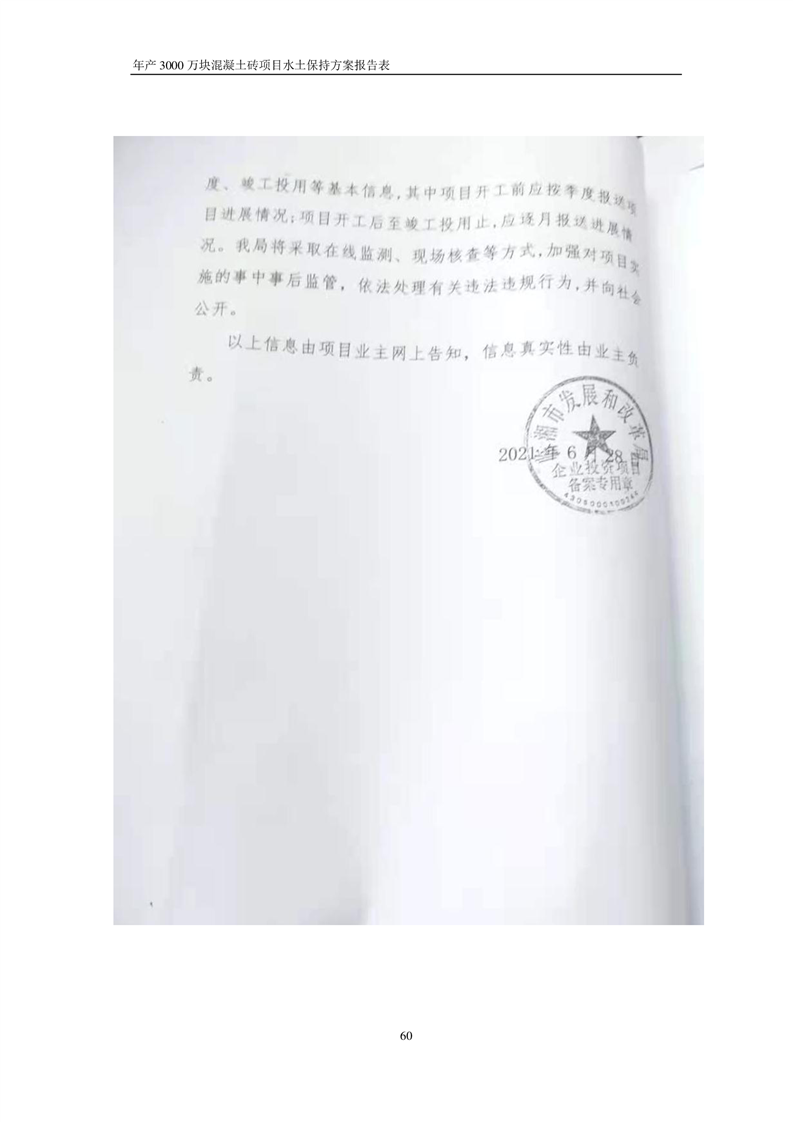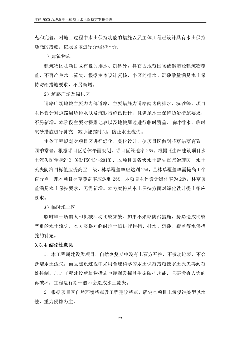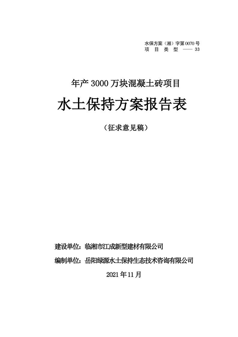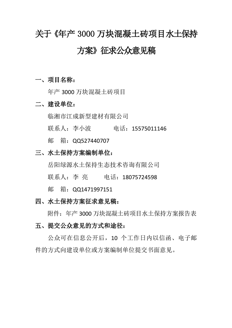 关于《年产 3000 万块混凝土砖项目水土保持方案》征求公众意见稿