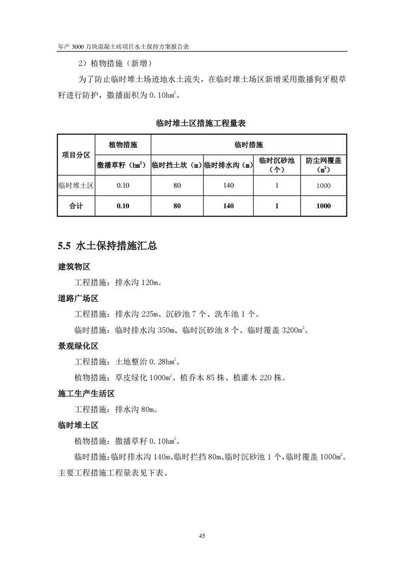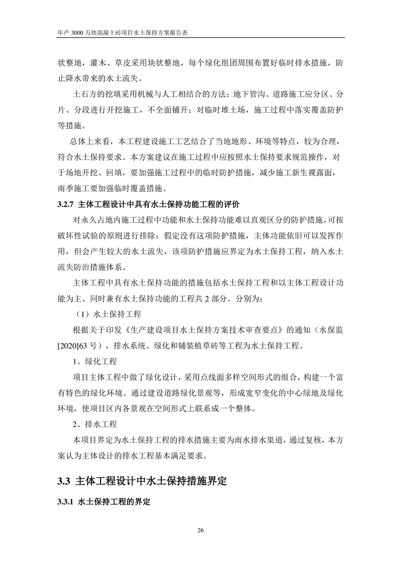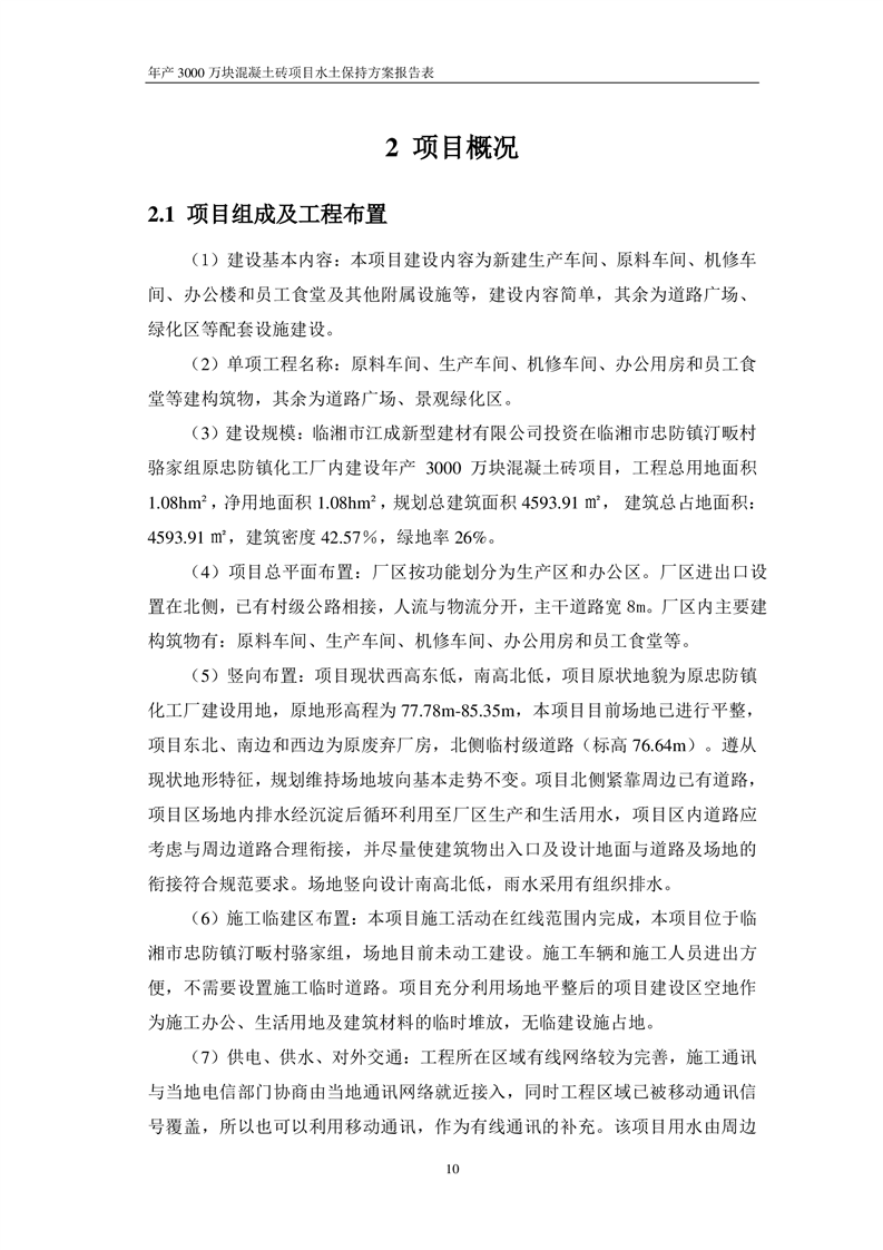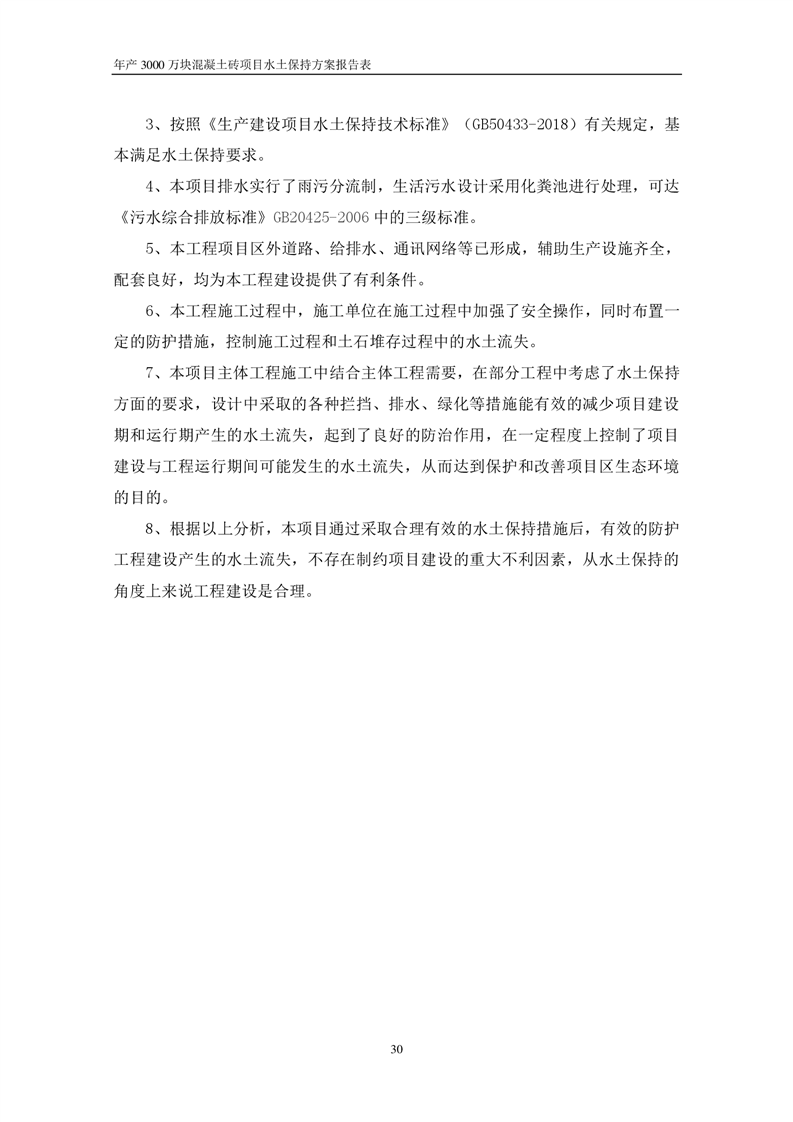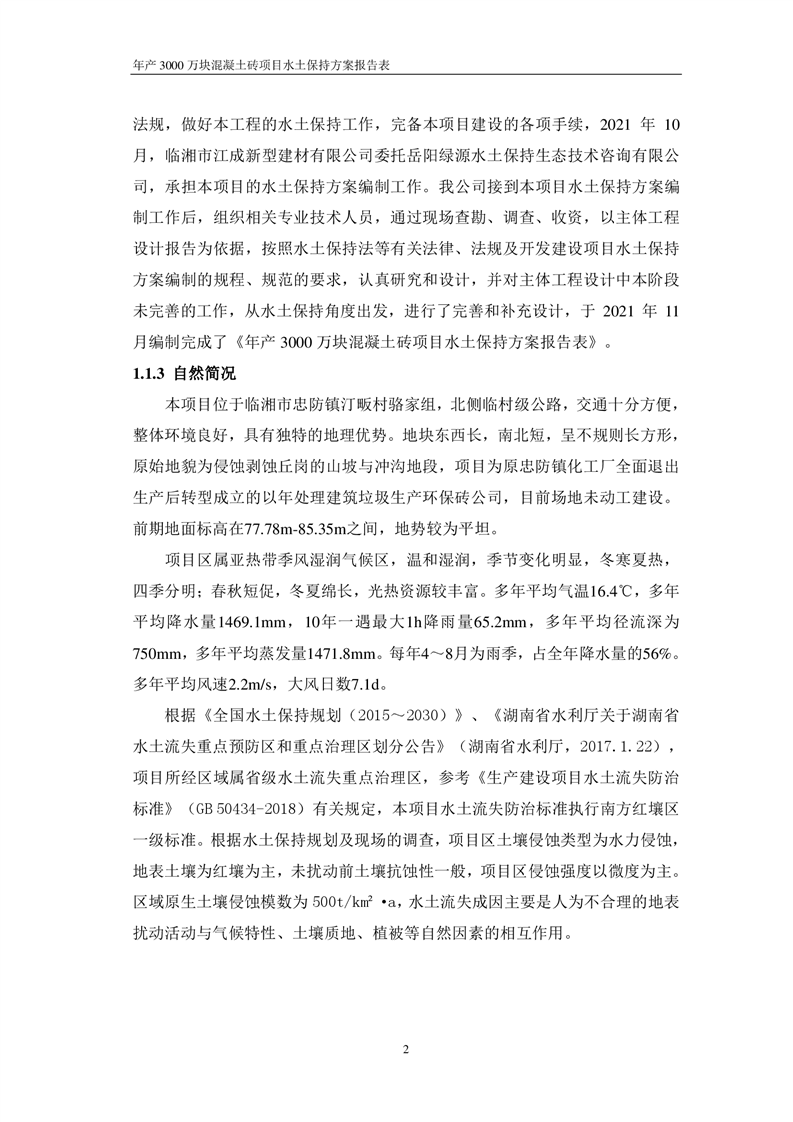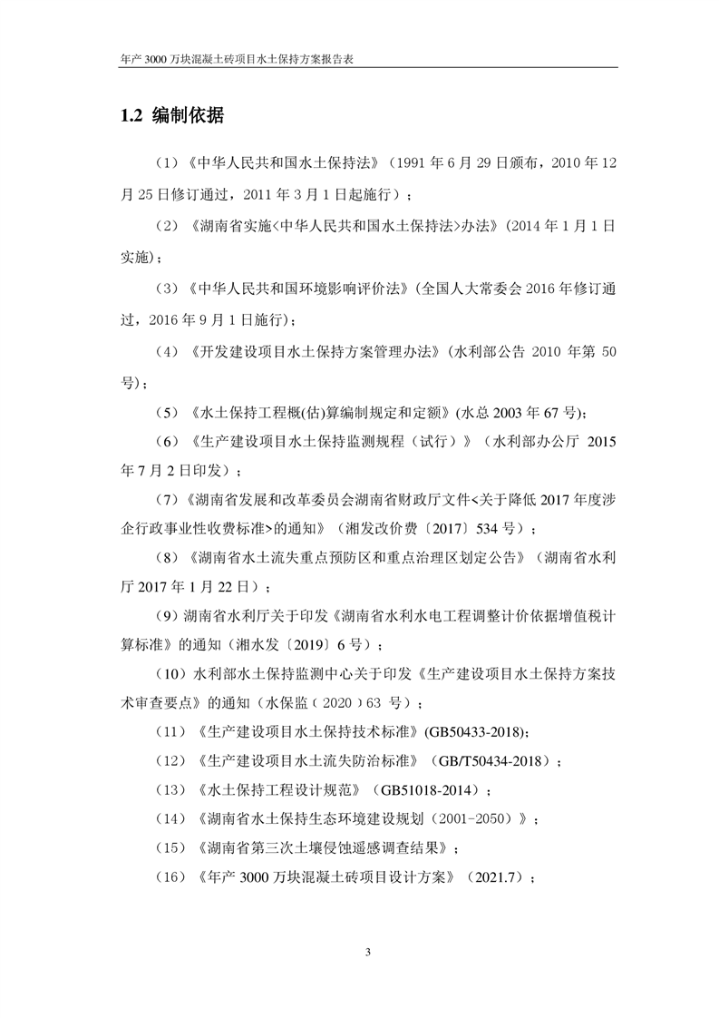 关于《年产 3000 万块混凝土砖项目水土保持方案》征求公众意见稿