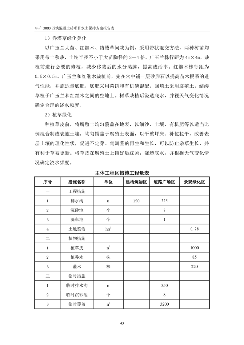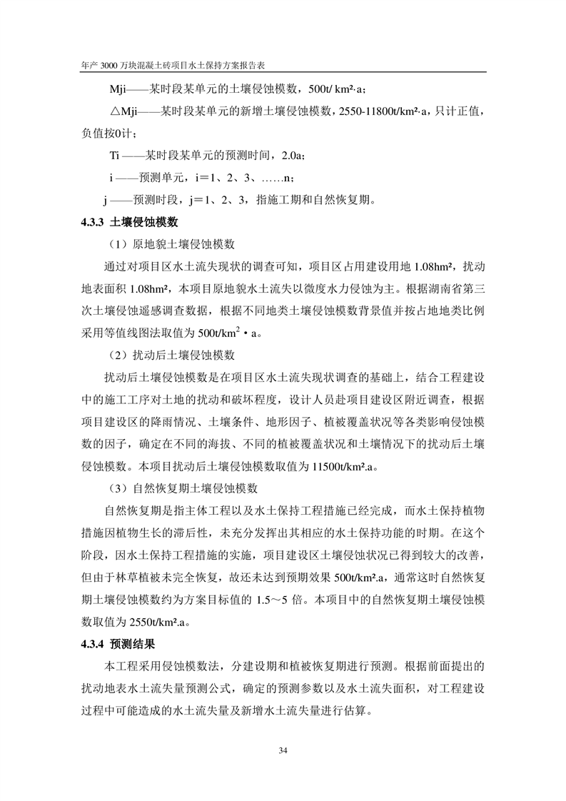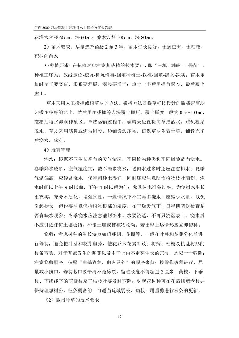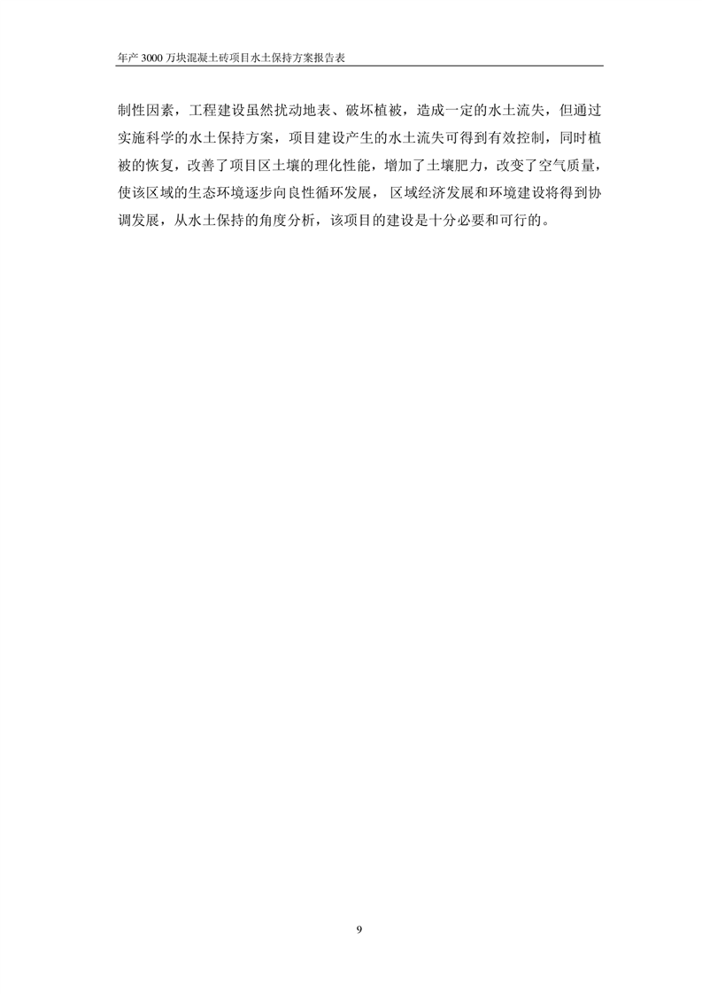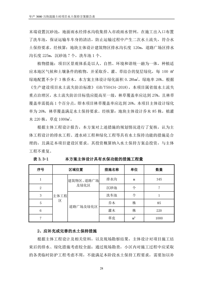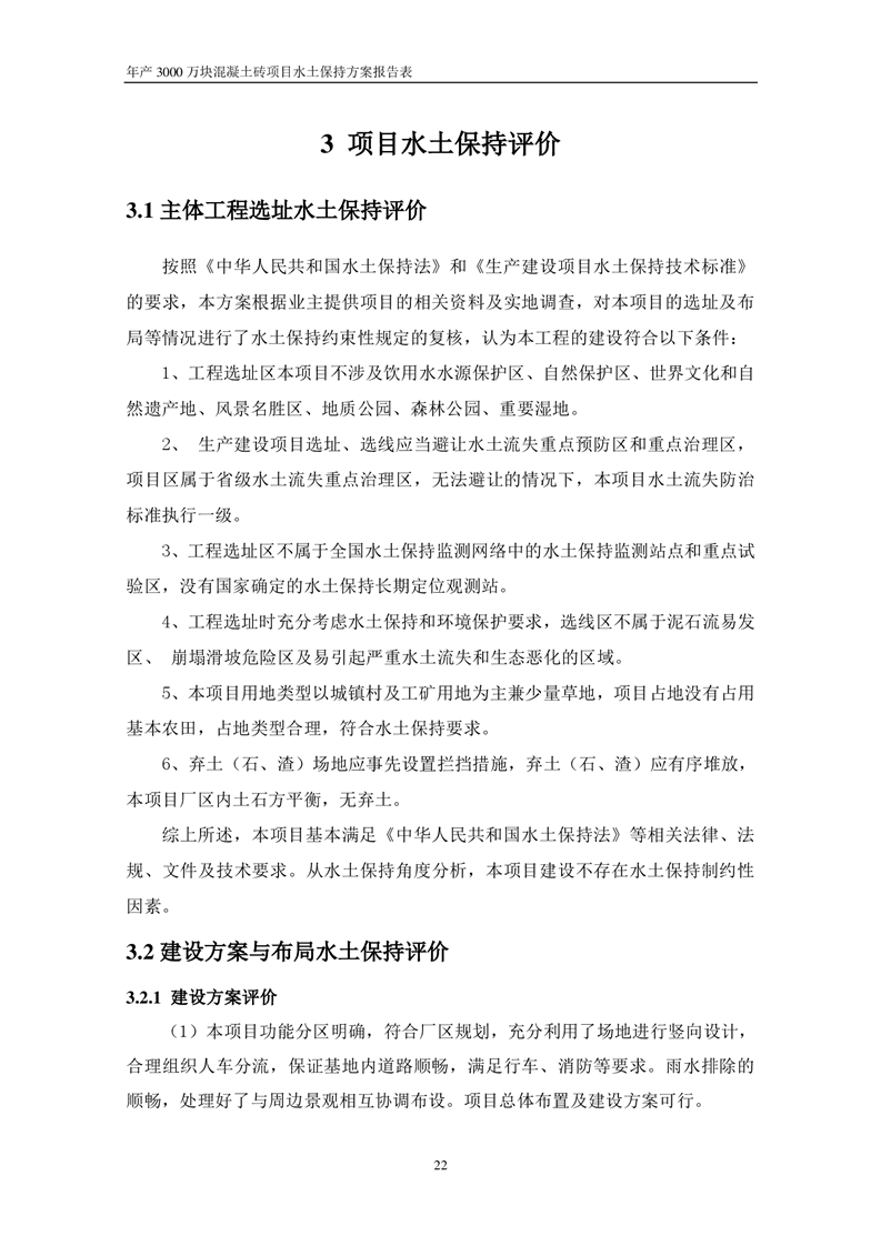 关于《年产 3000 万块混凝土砖项目水土保持方案》征求公众意见稿