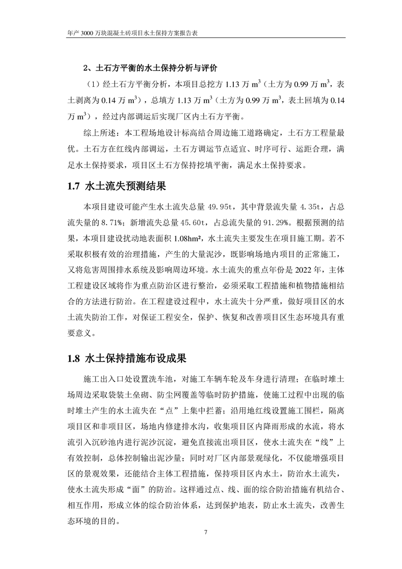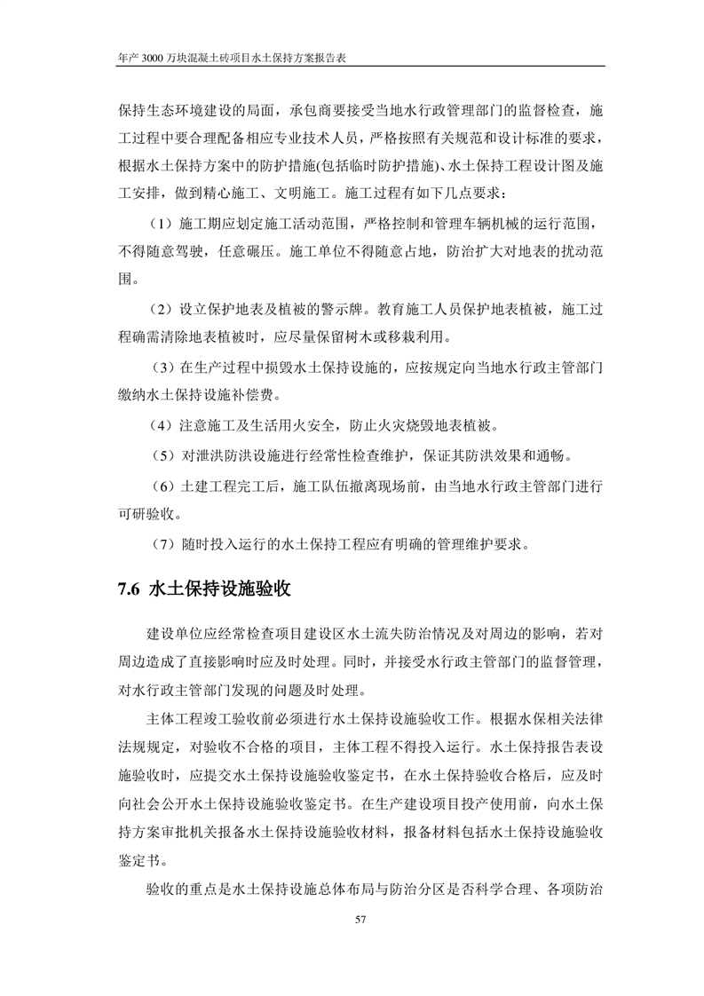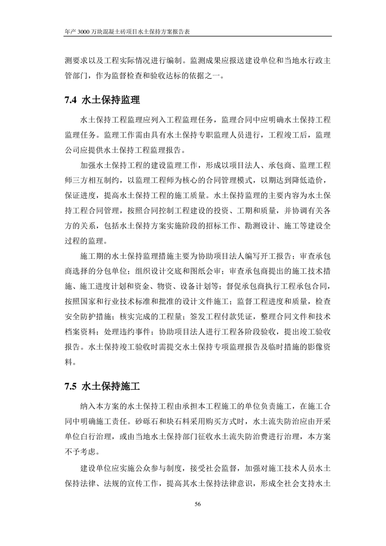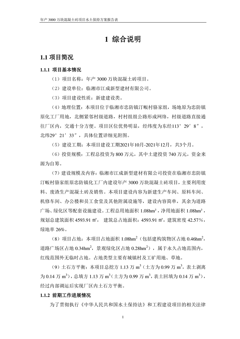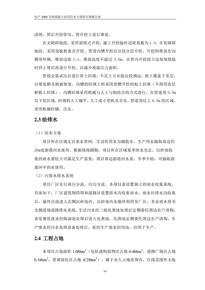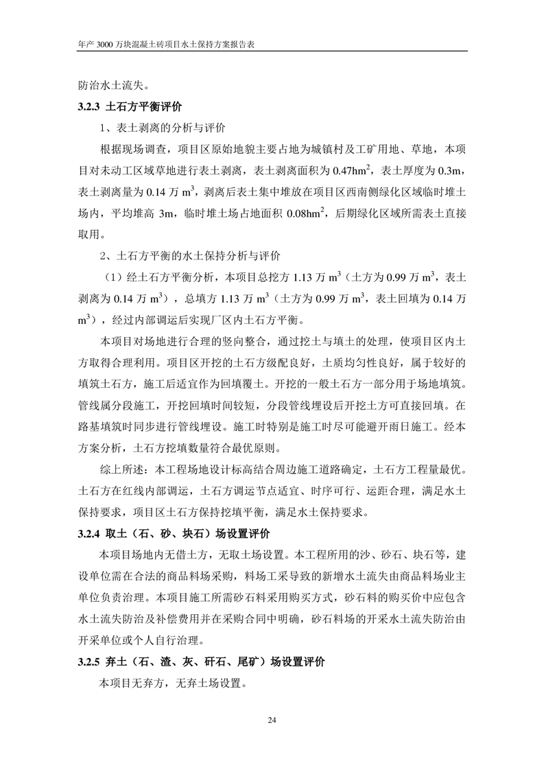 关于《年产 3000 万块混凝土砖项目水土保持方案》征求公众意见稿