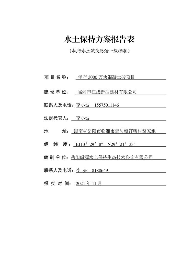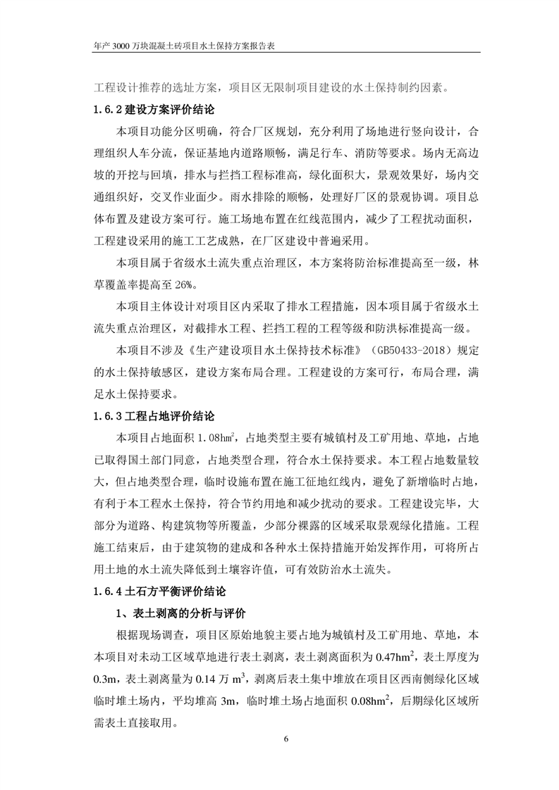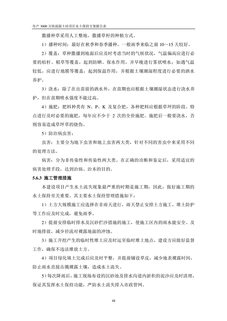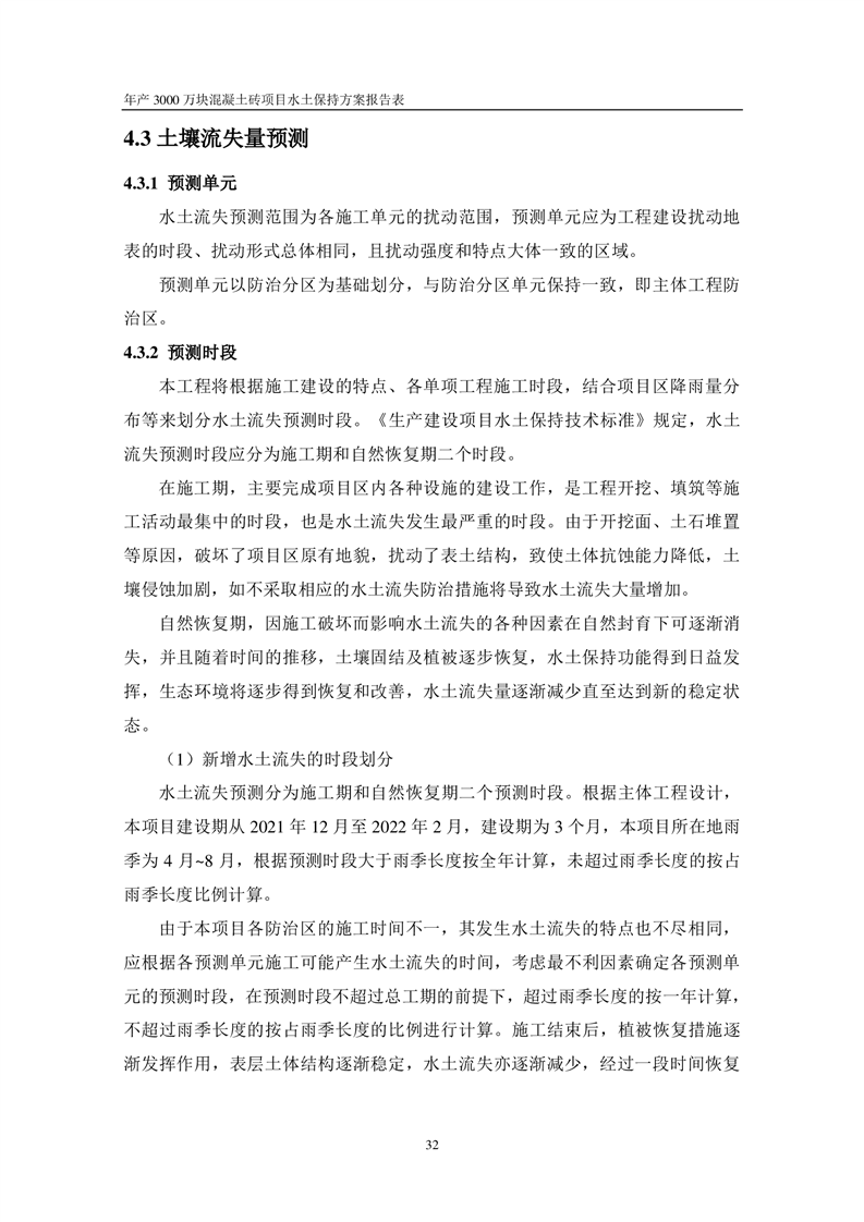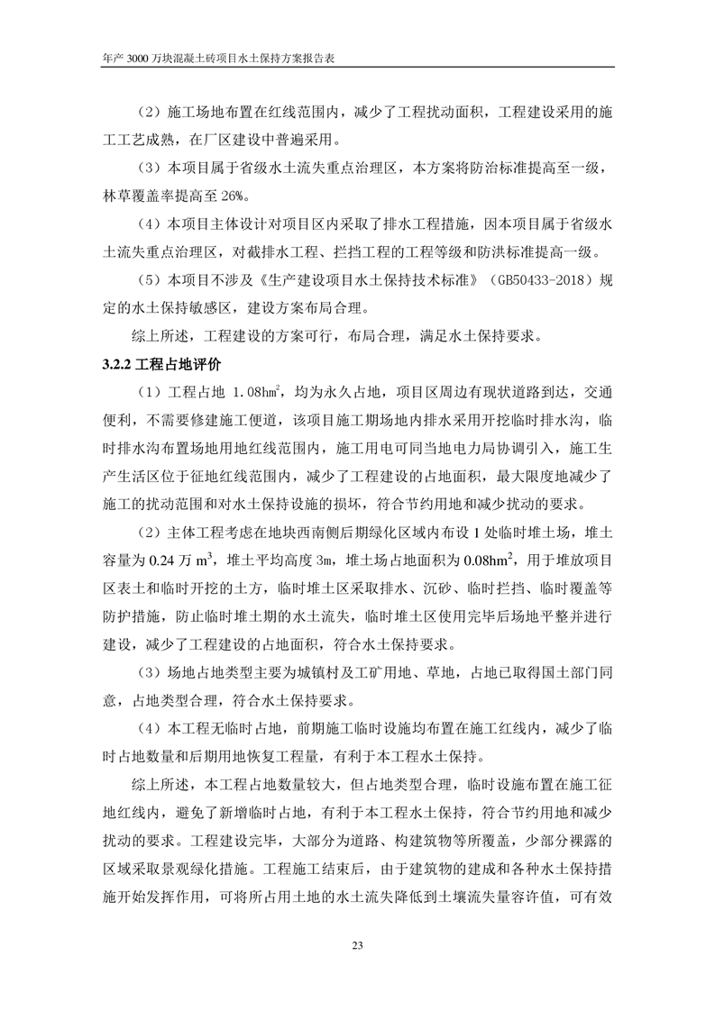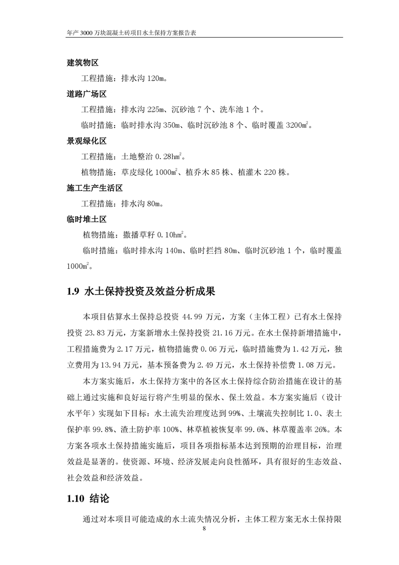 关于《年产 3000 万块混凝土砖项目水土保持方案》征求公众意见稿