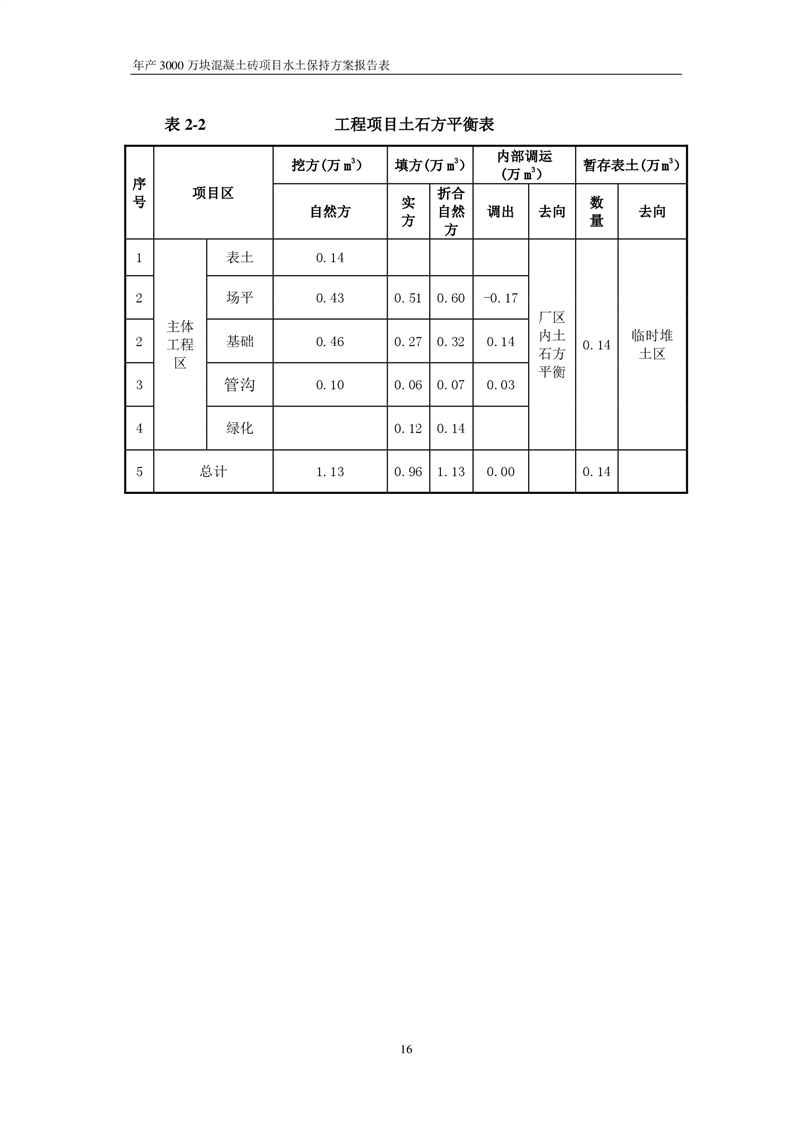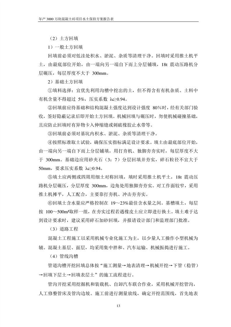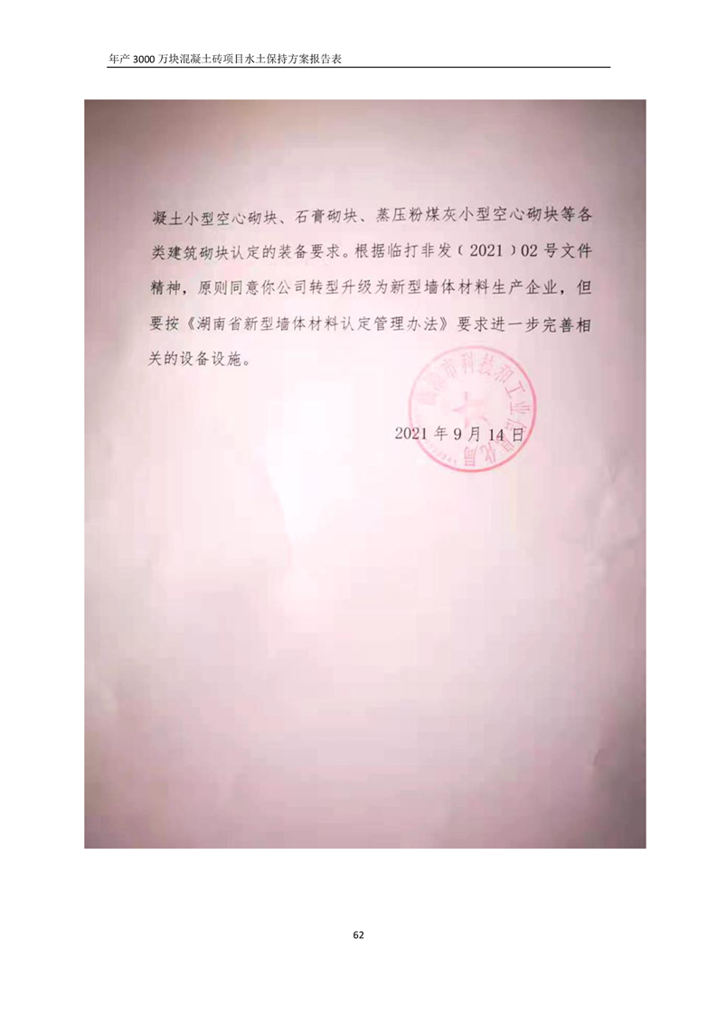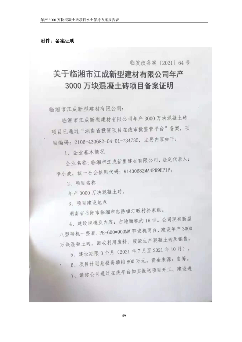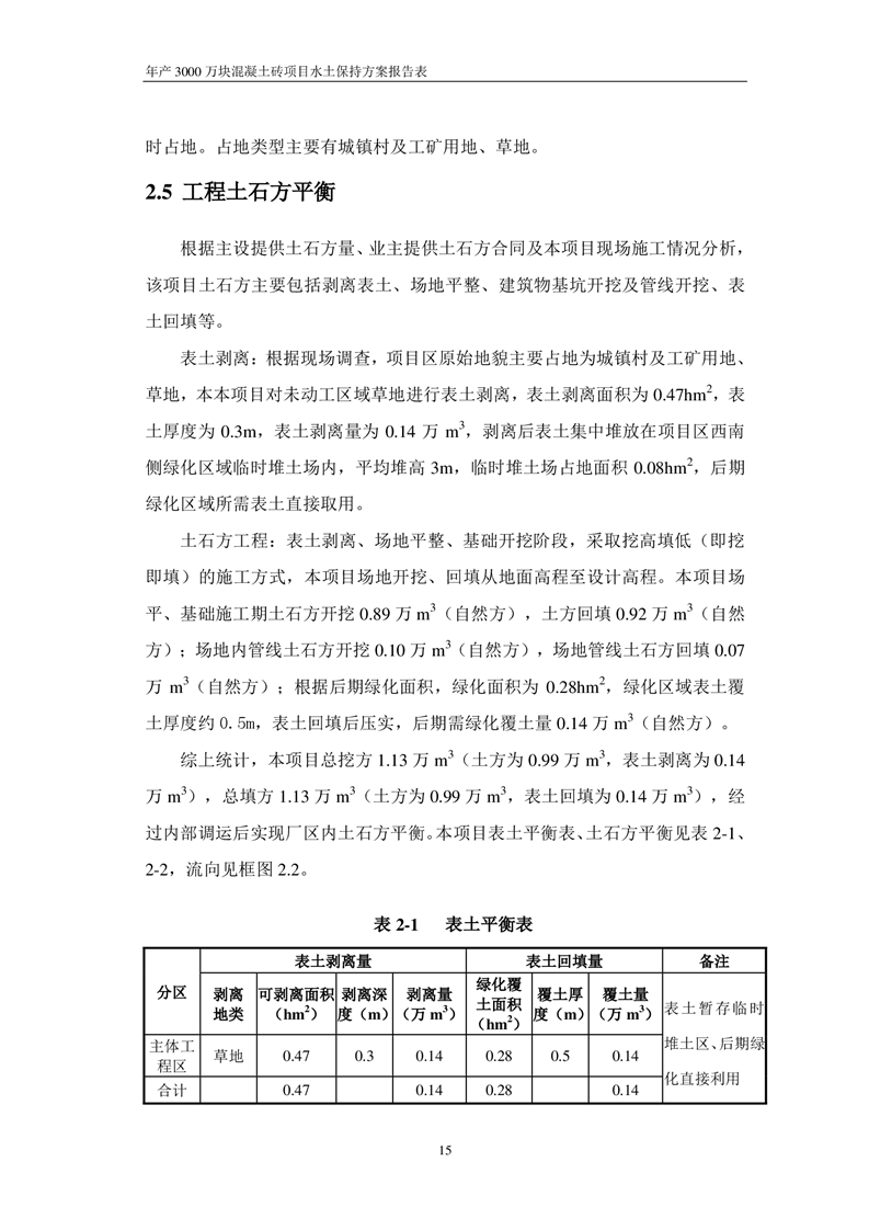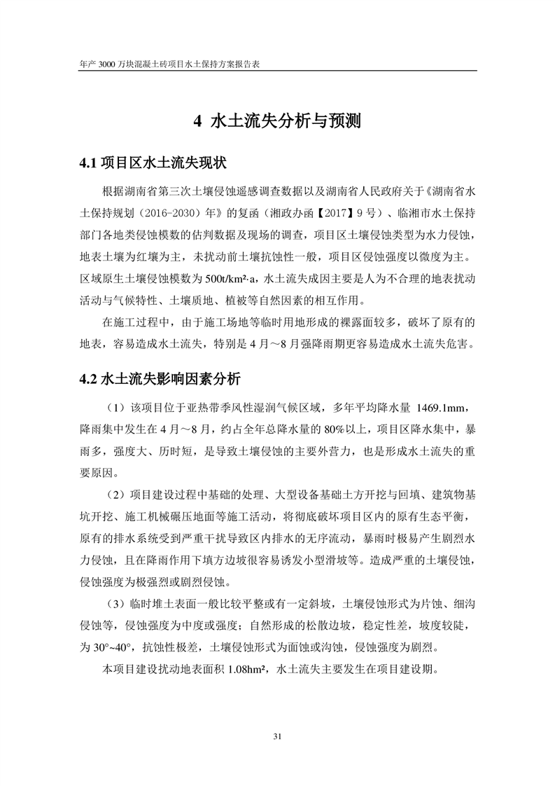 关于《年产 3000 万块混凝土砖项目水土保持方案》征求公众意见稿