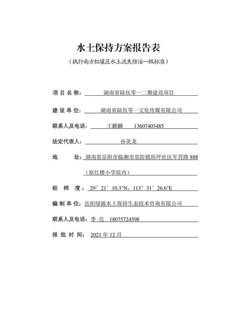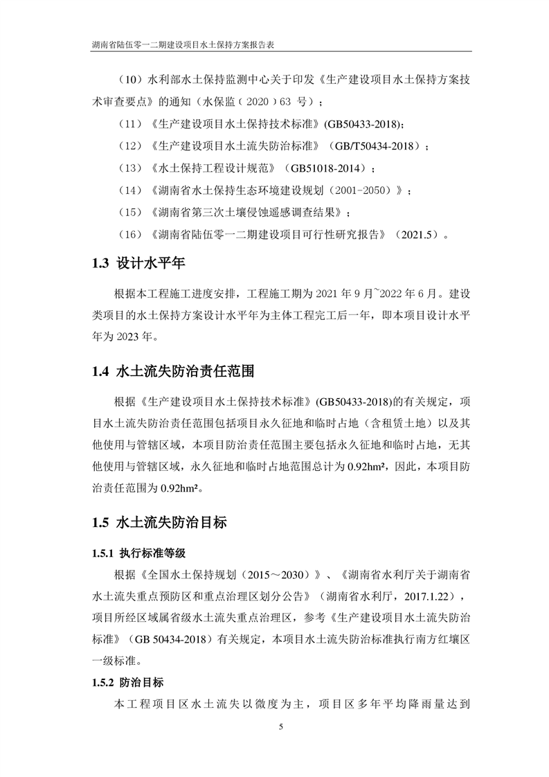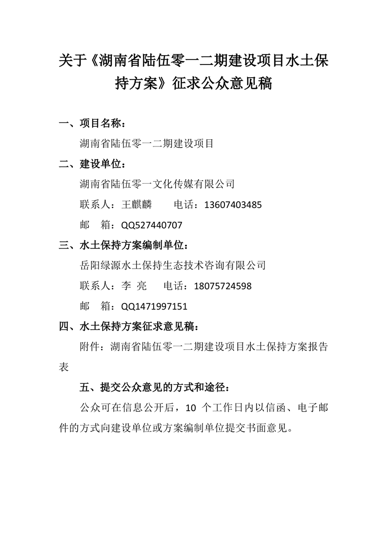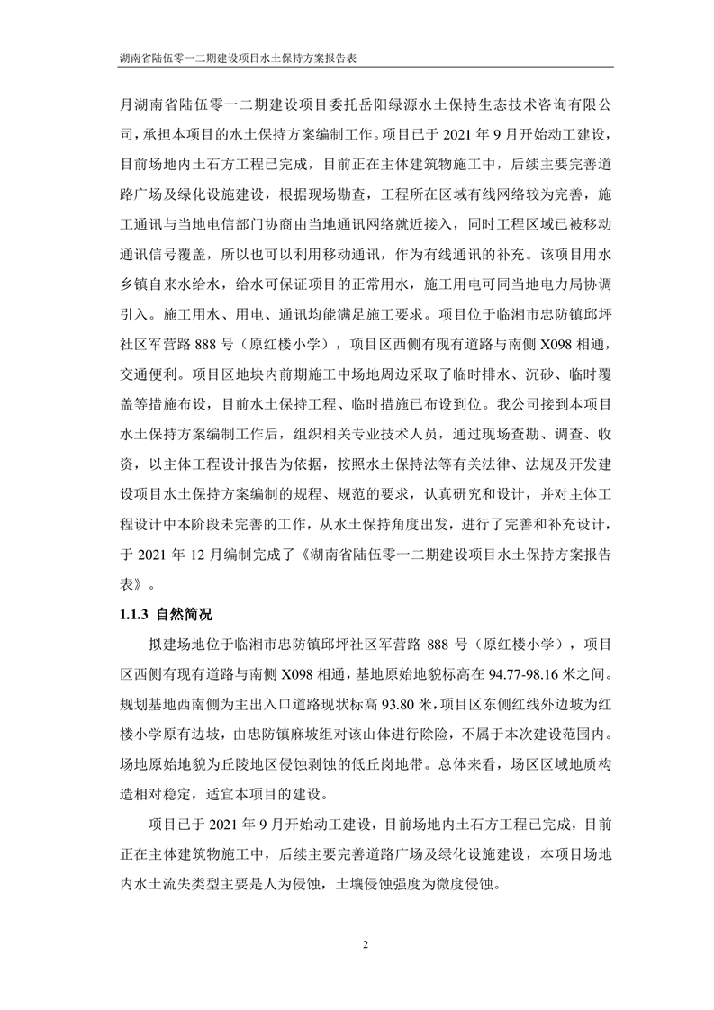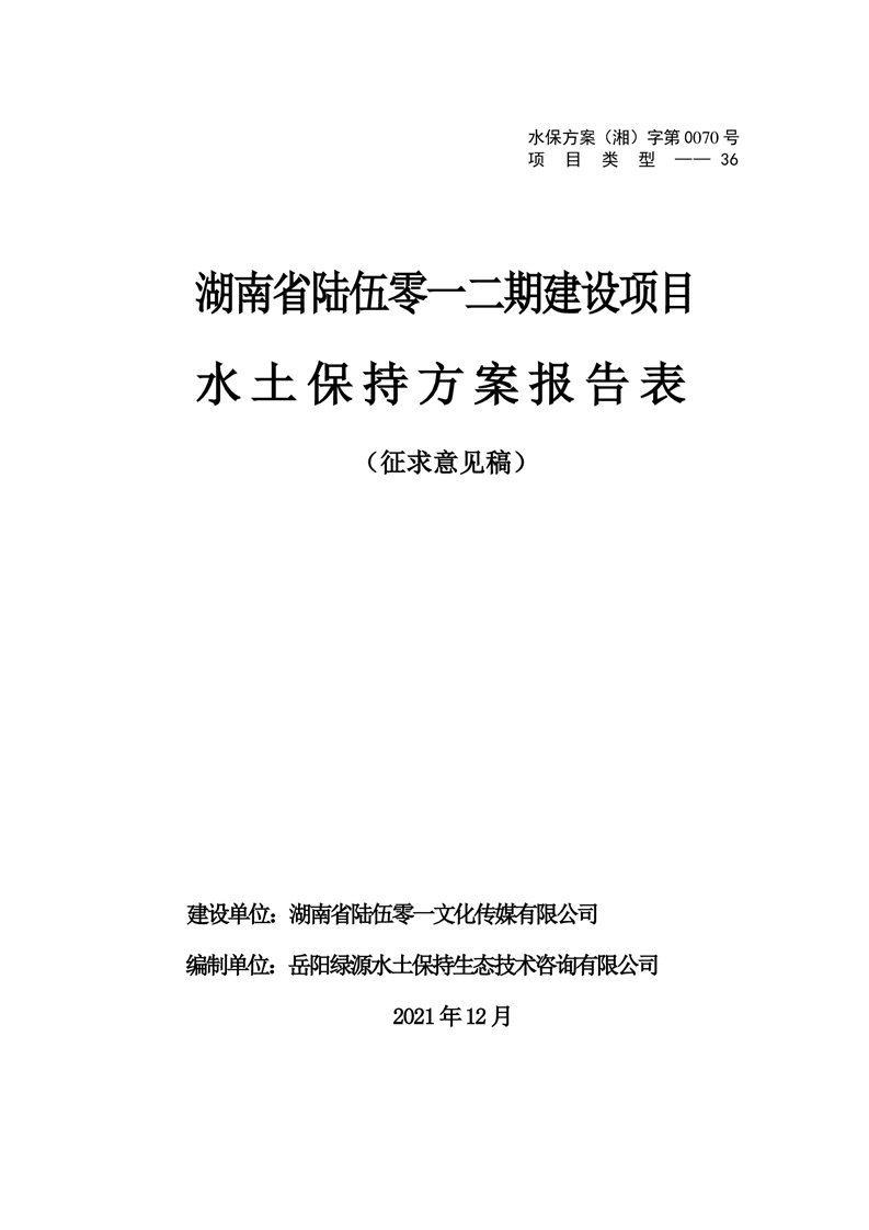 湖南省陆伍零一二期建设项目水土保持方案报告表(征求公众意见稿)