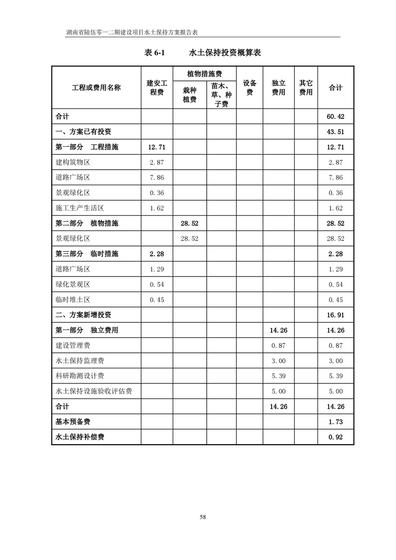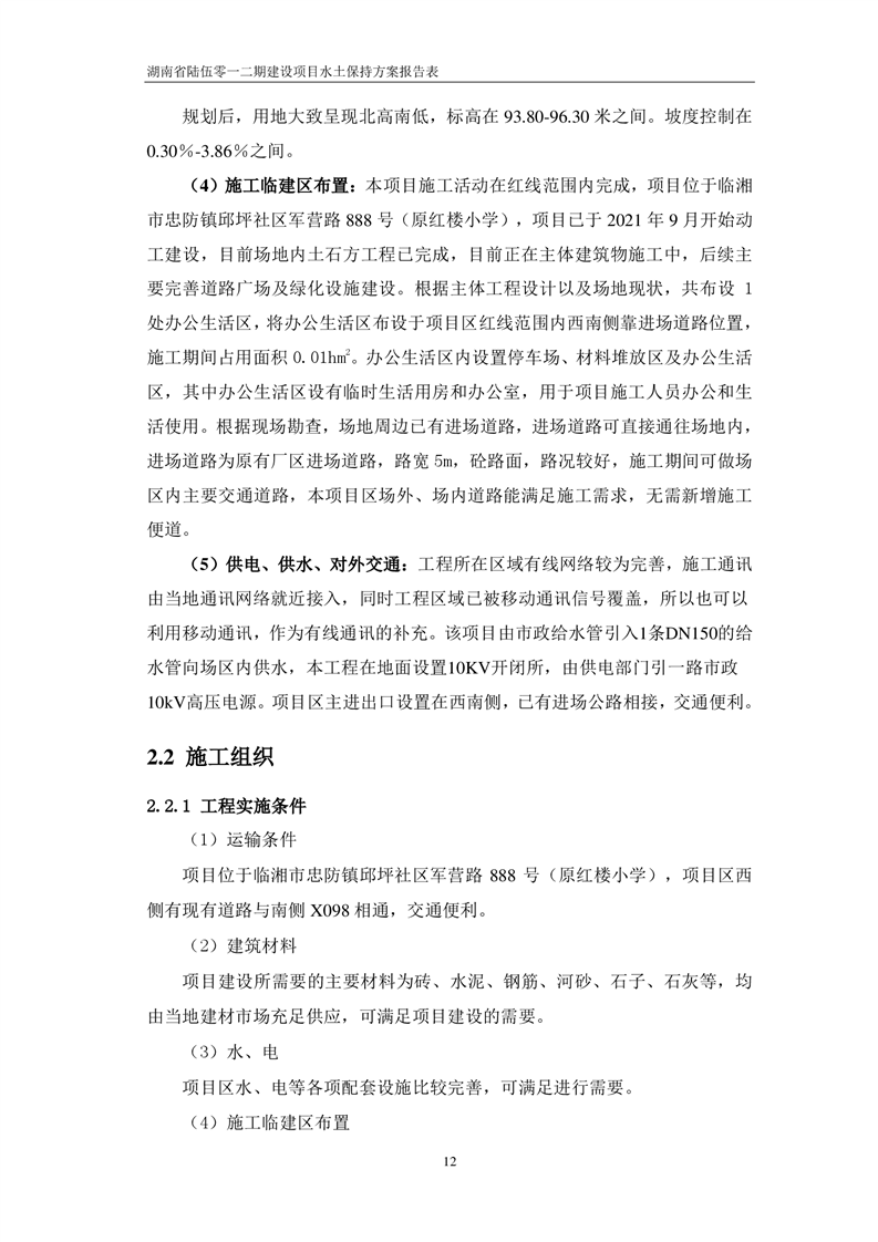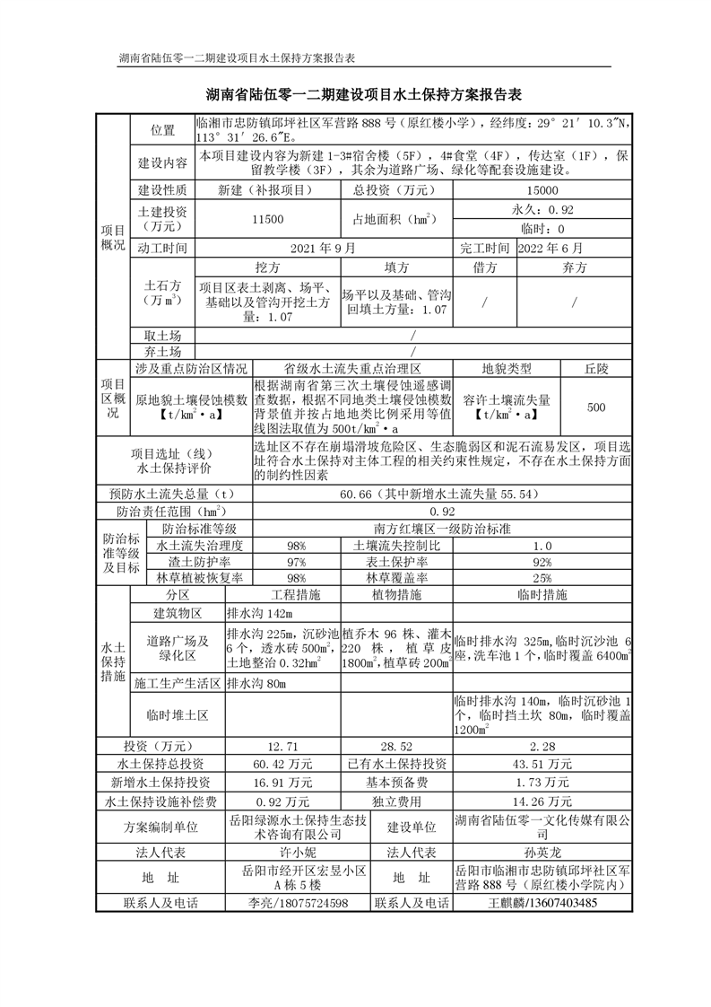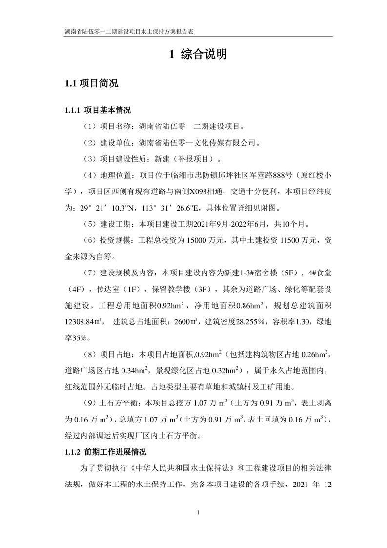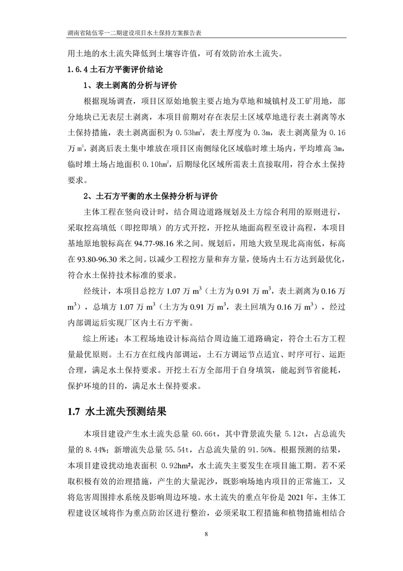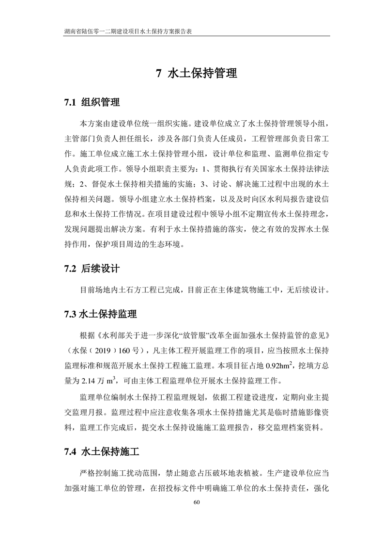 湖南省陆伍零一二期建设项目水土保持方案报告表(征求公众意见稿)