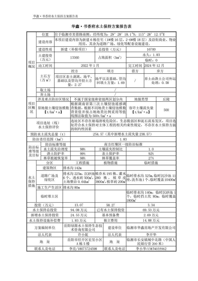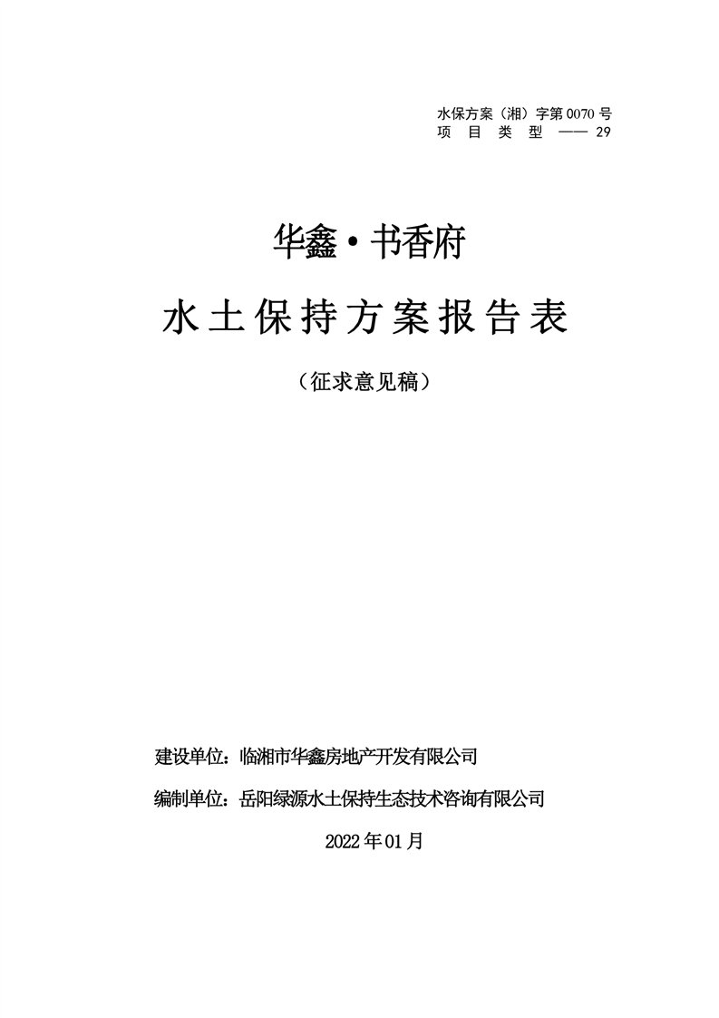 关于《华鑫·书香府项目水土保持方案》征求公众意见稿