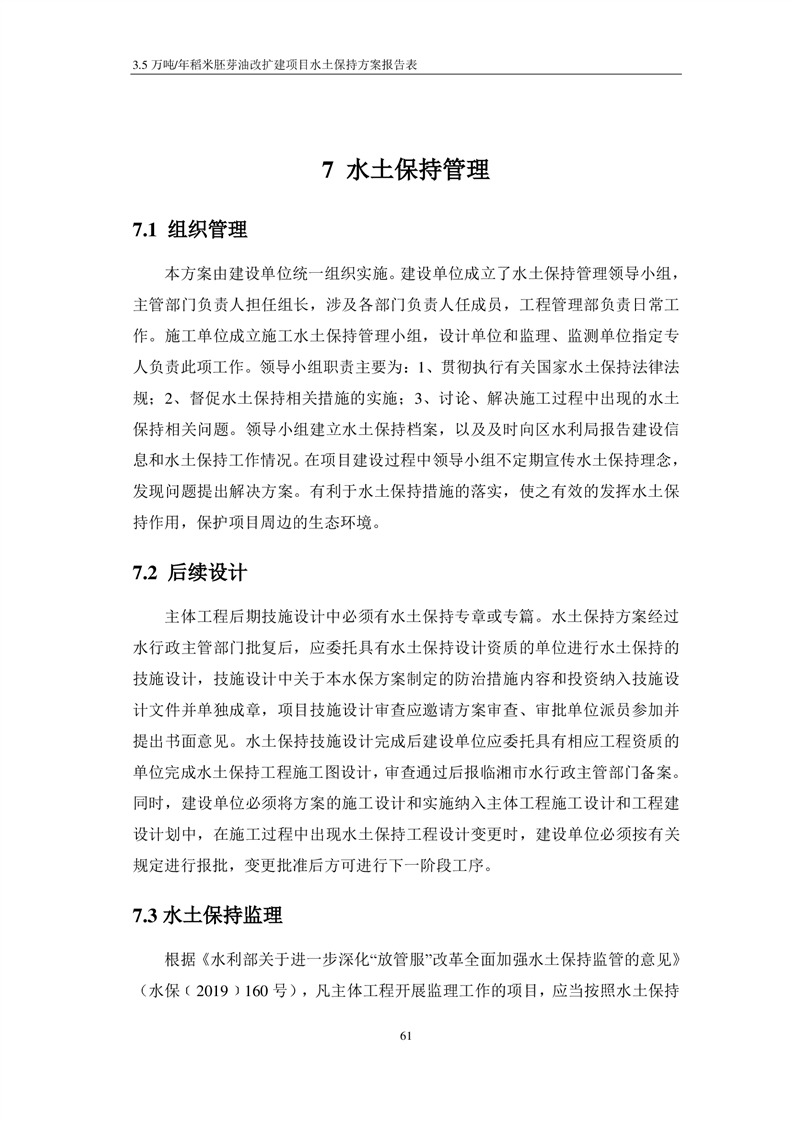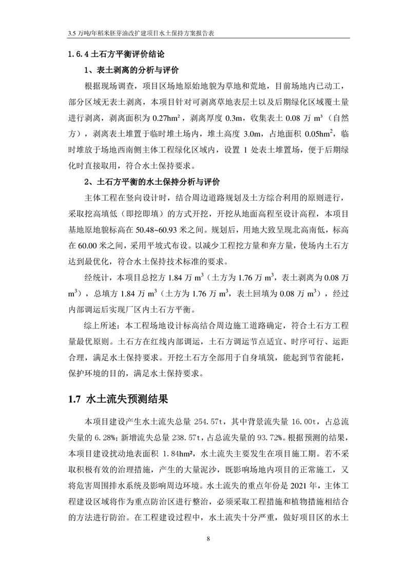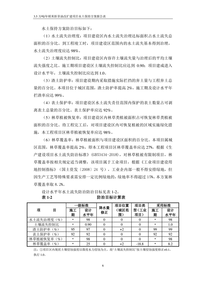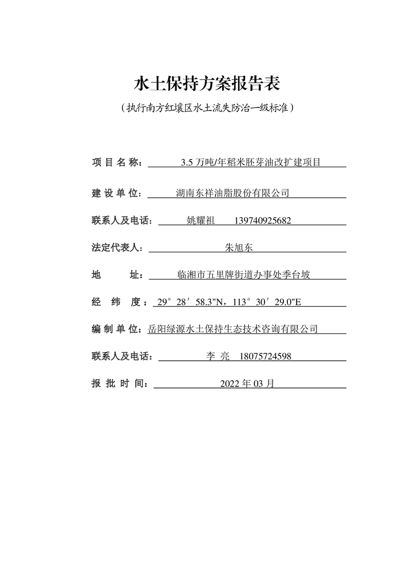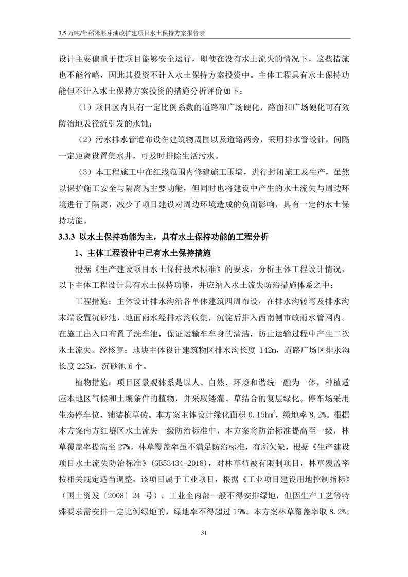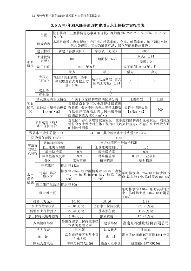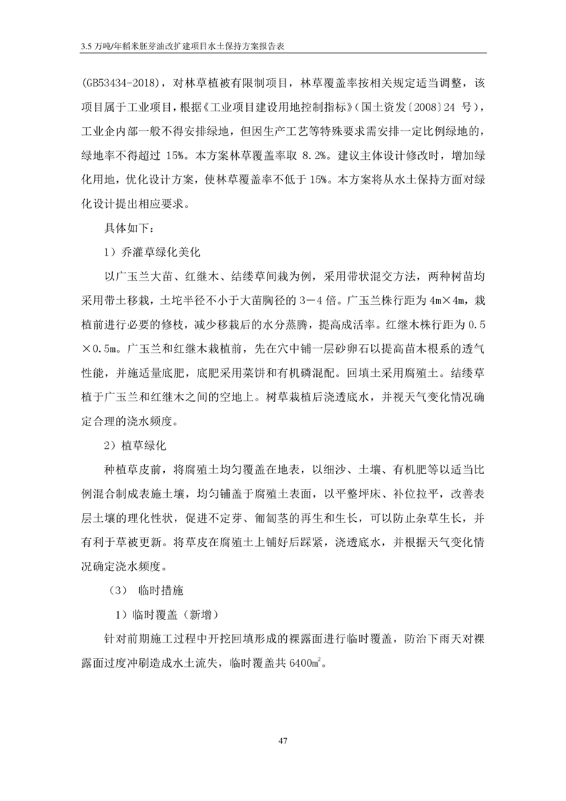 关于《3.5 万吨/年稻米胚芽油改扩建项目水土保持方案》征求公众意见稿