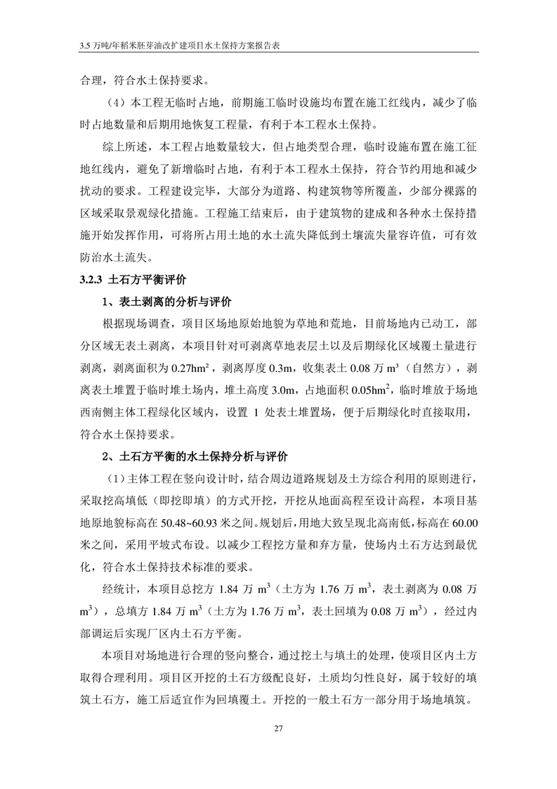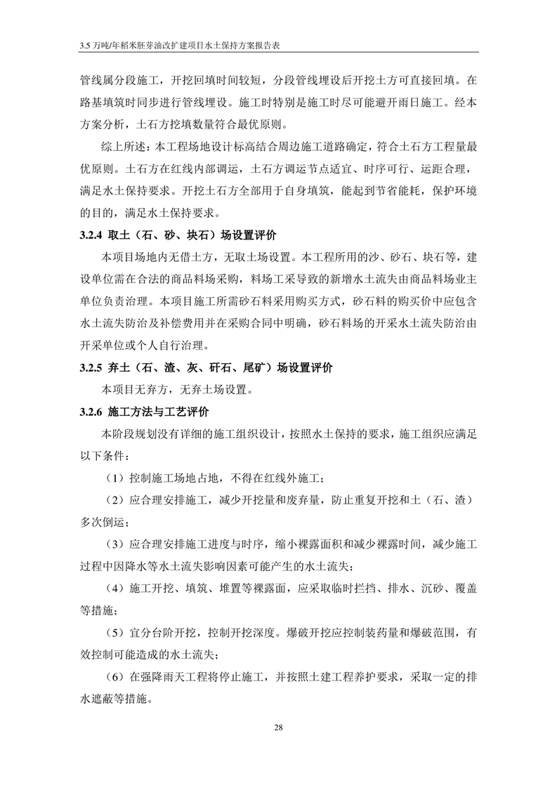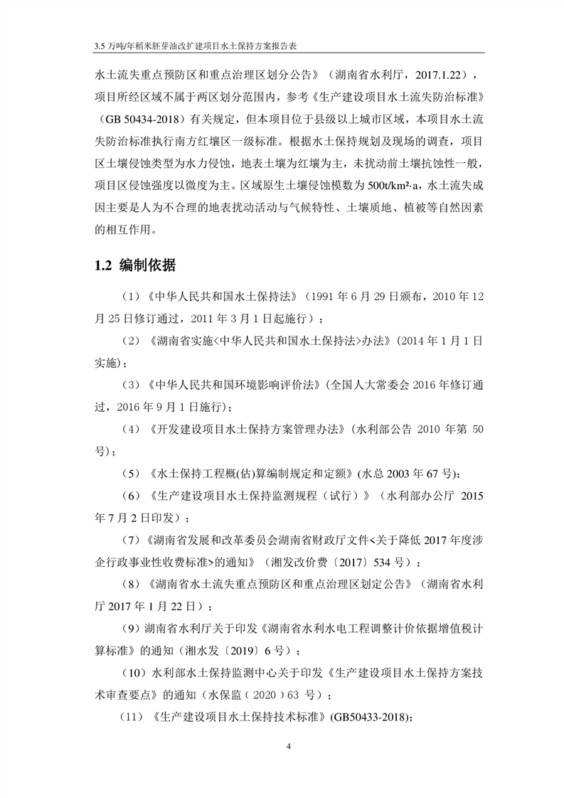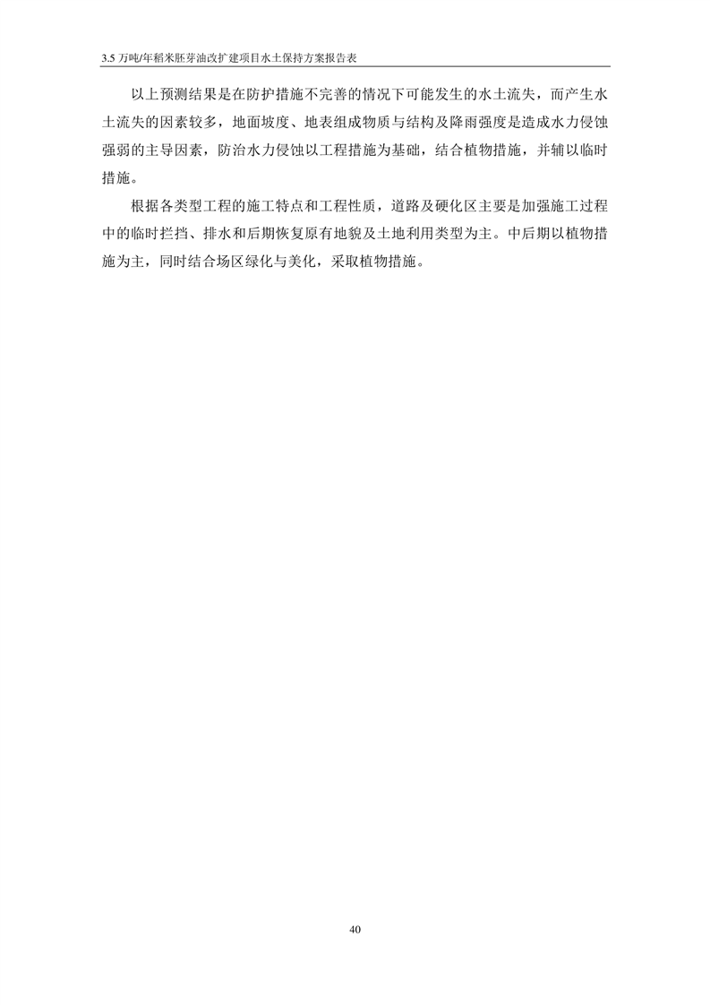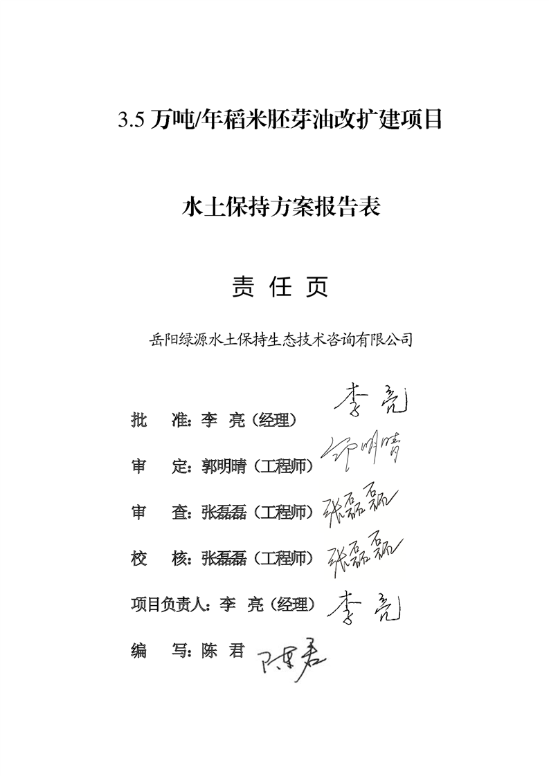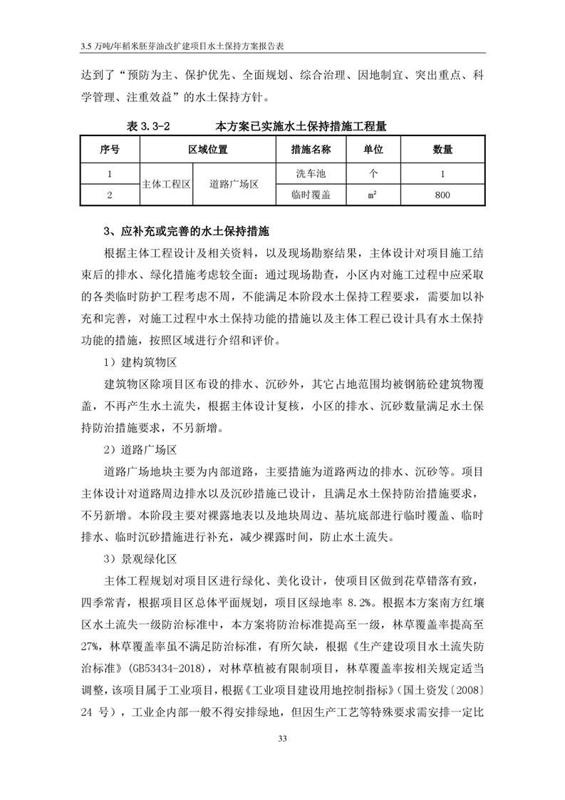 关于《3.5 万吨/年稻米胚芽油改扩建项目水土保持方案》征求公众意见稿