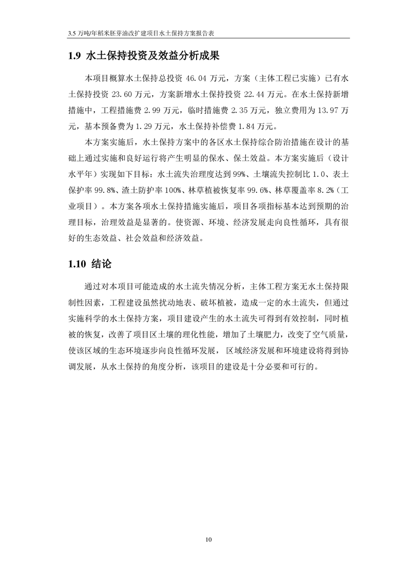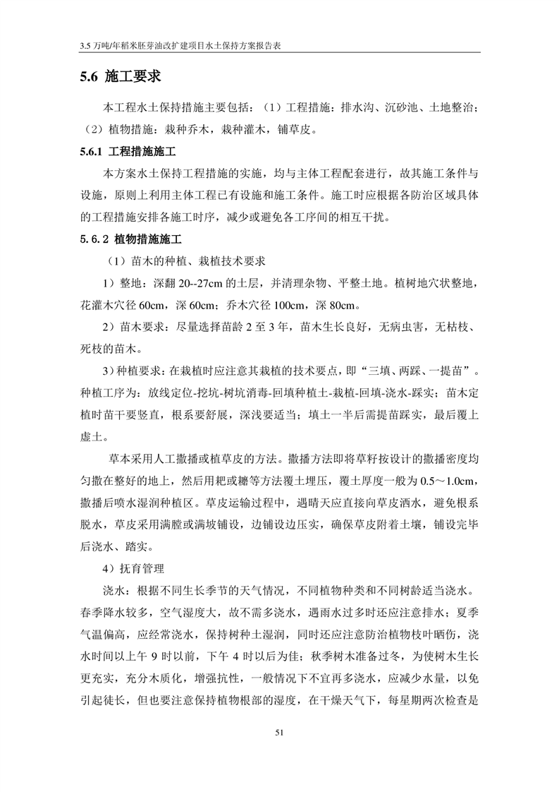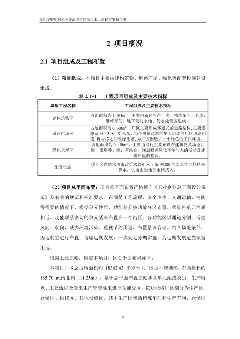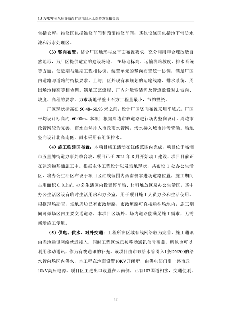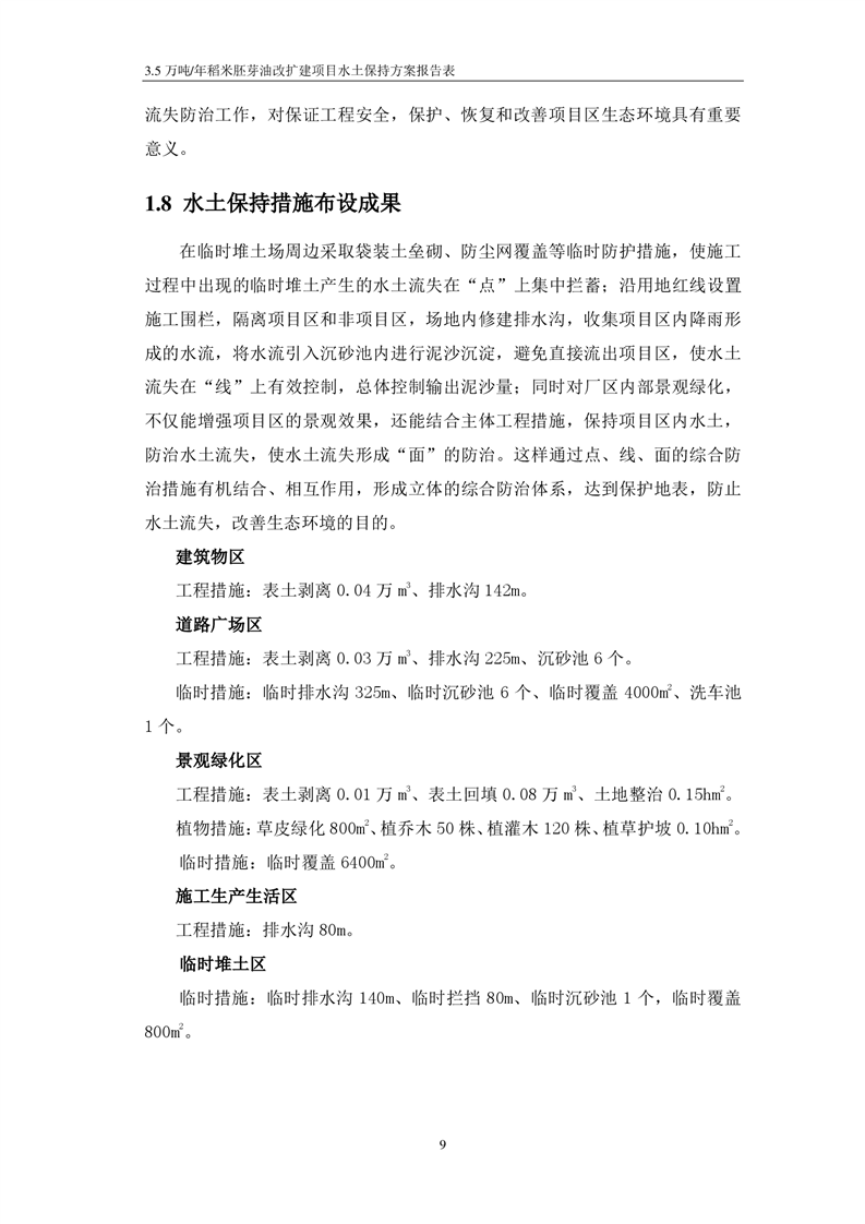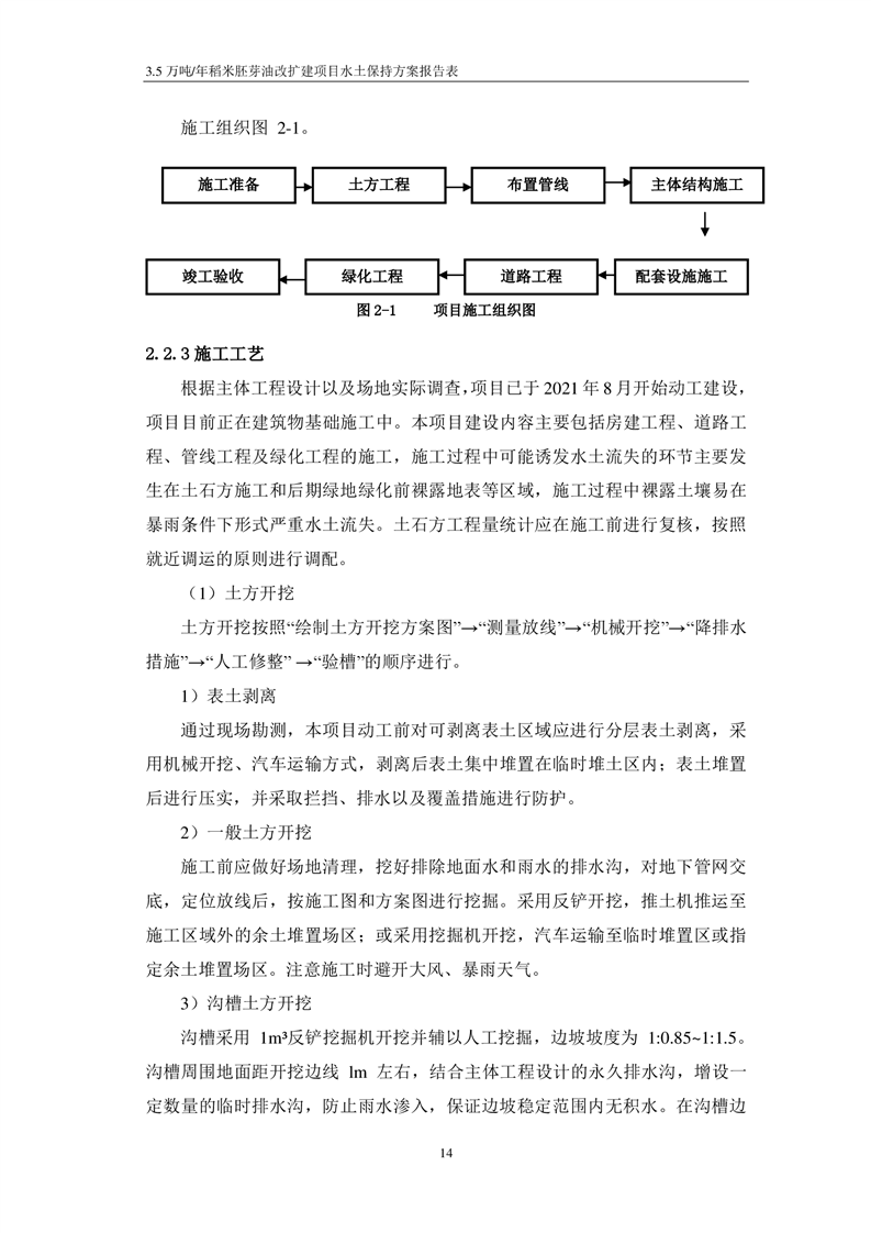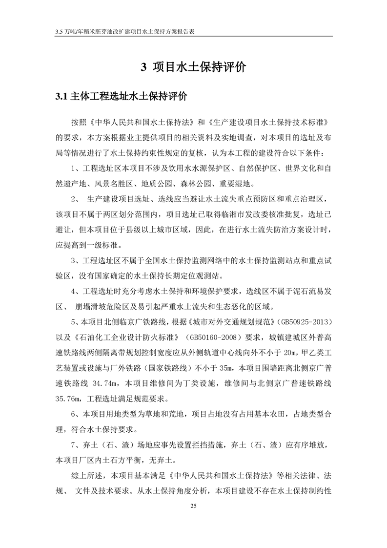 关于《3.5 万吨/年稻米胚芽油改扩建项目水土保持方案》征求公众意见稿