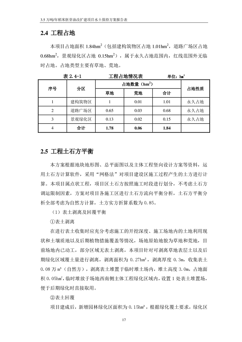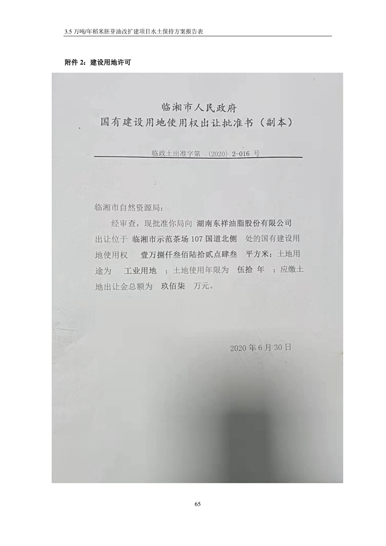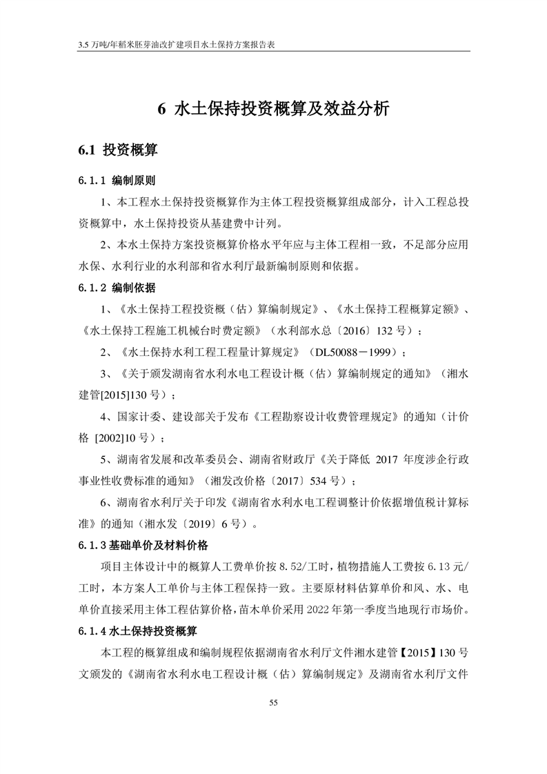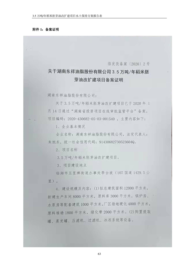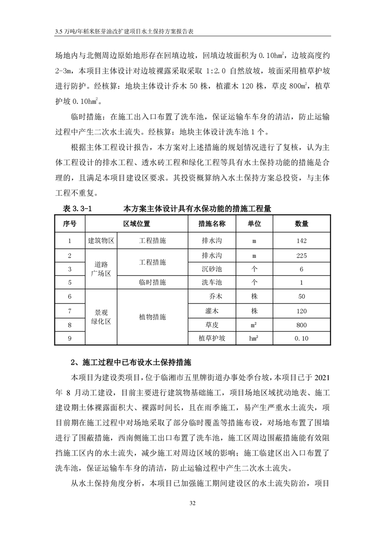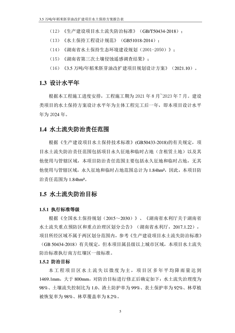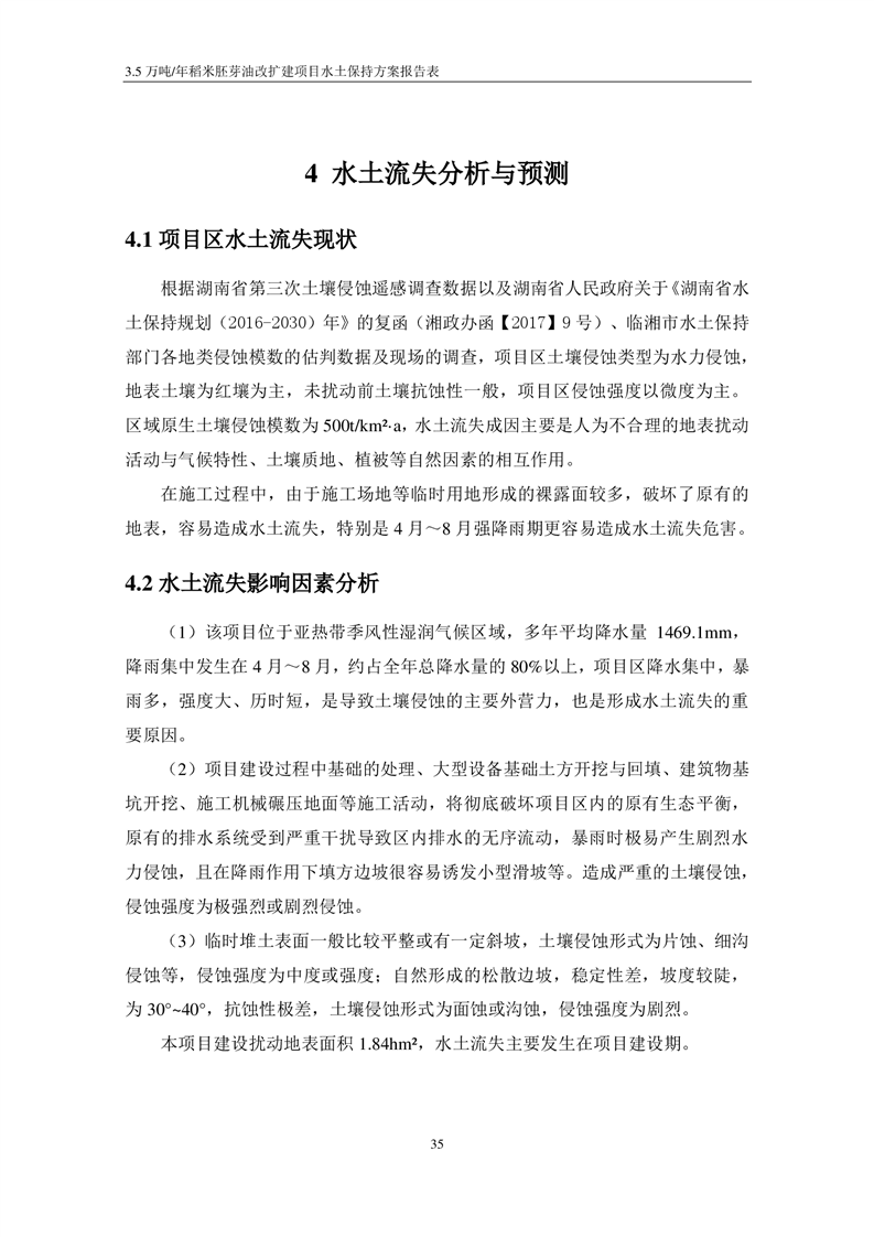 关于《3.5 万吨/年稻米胚芽油改扩建项目水土保持方案》征求公众意见稿