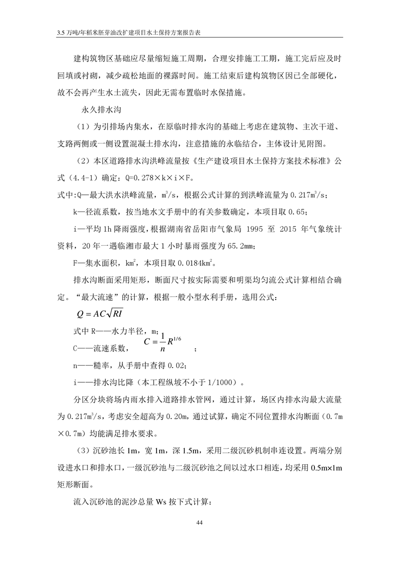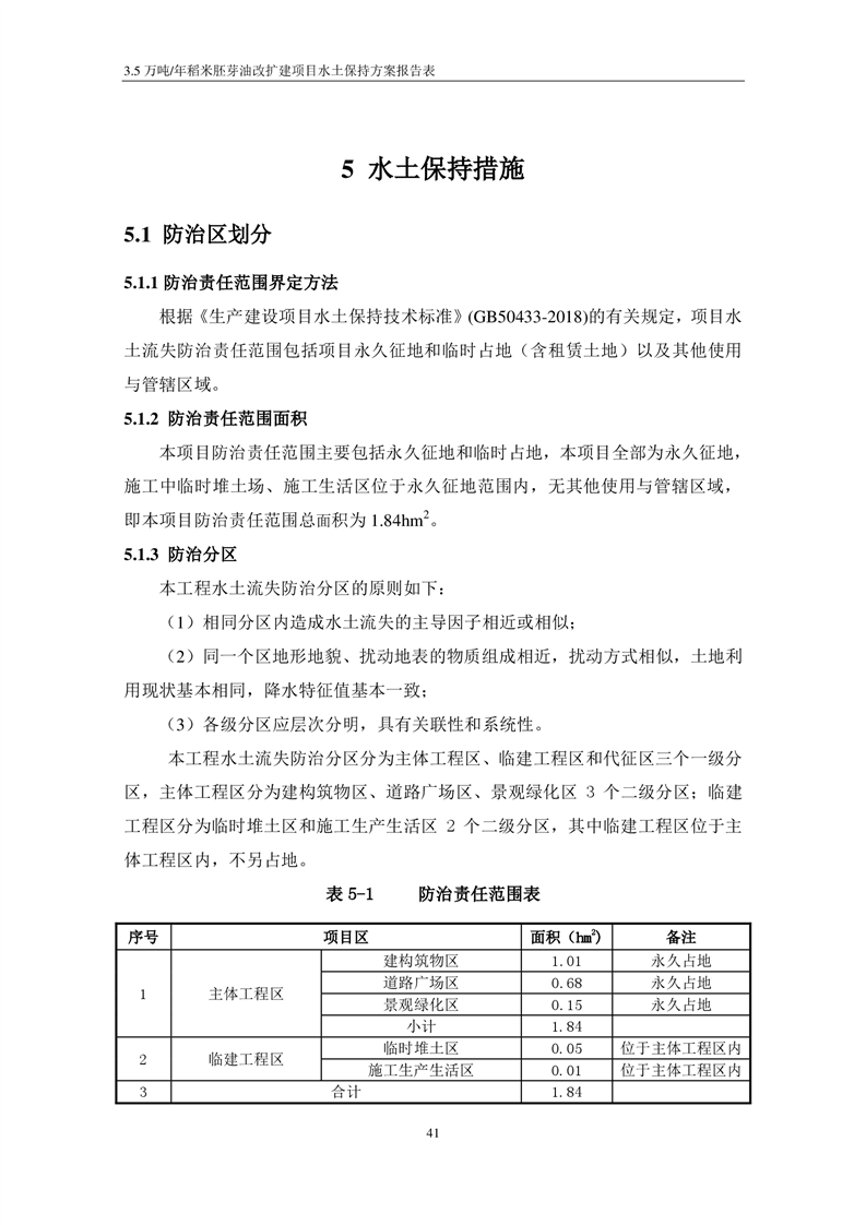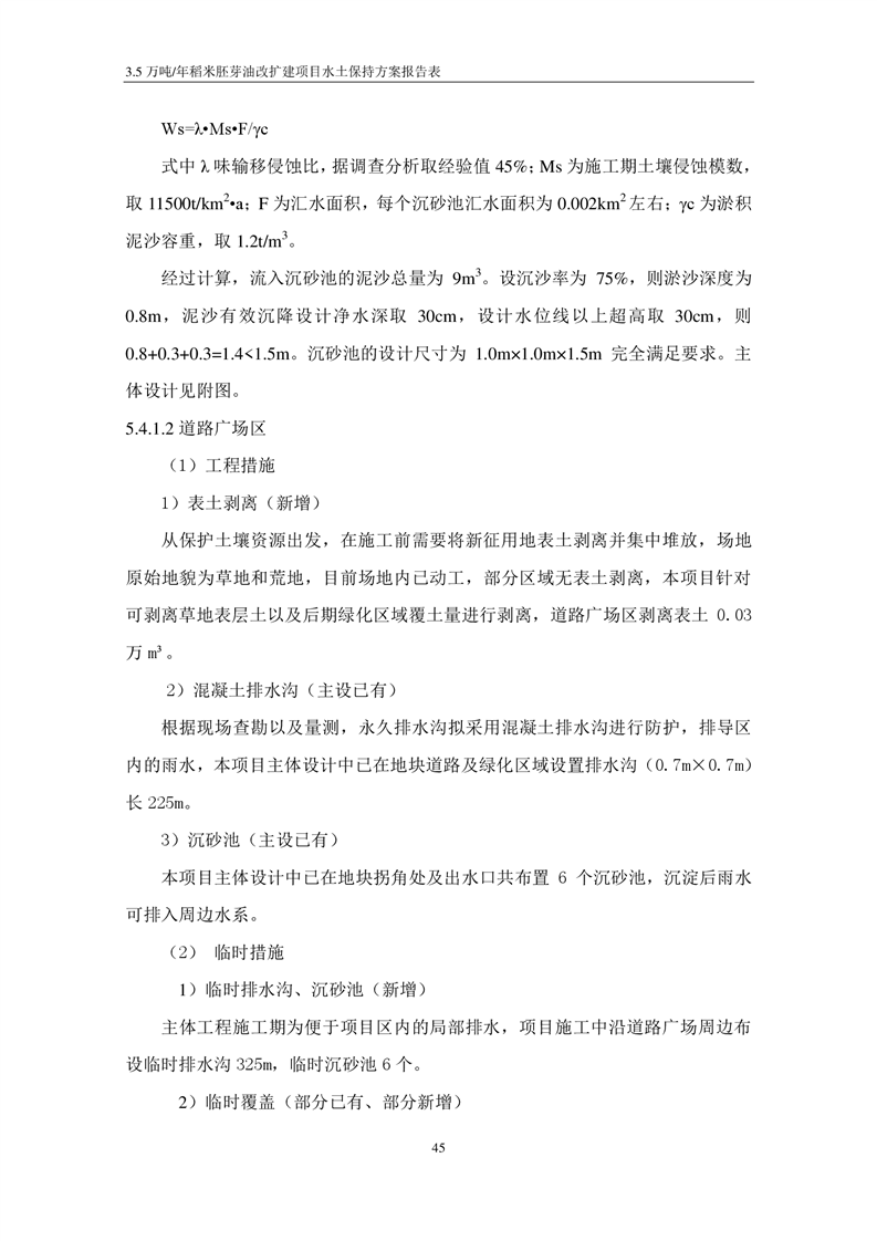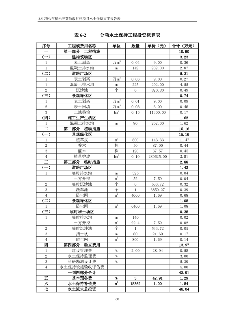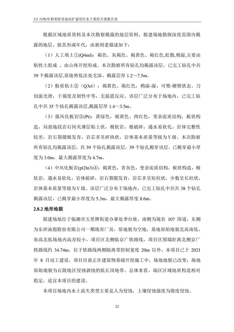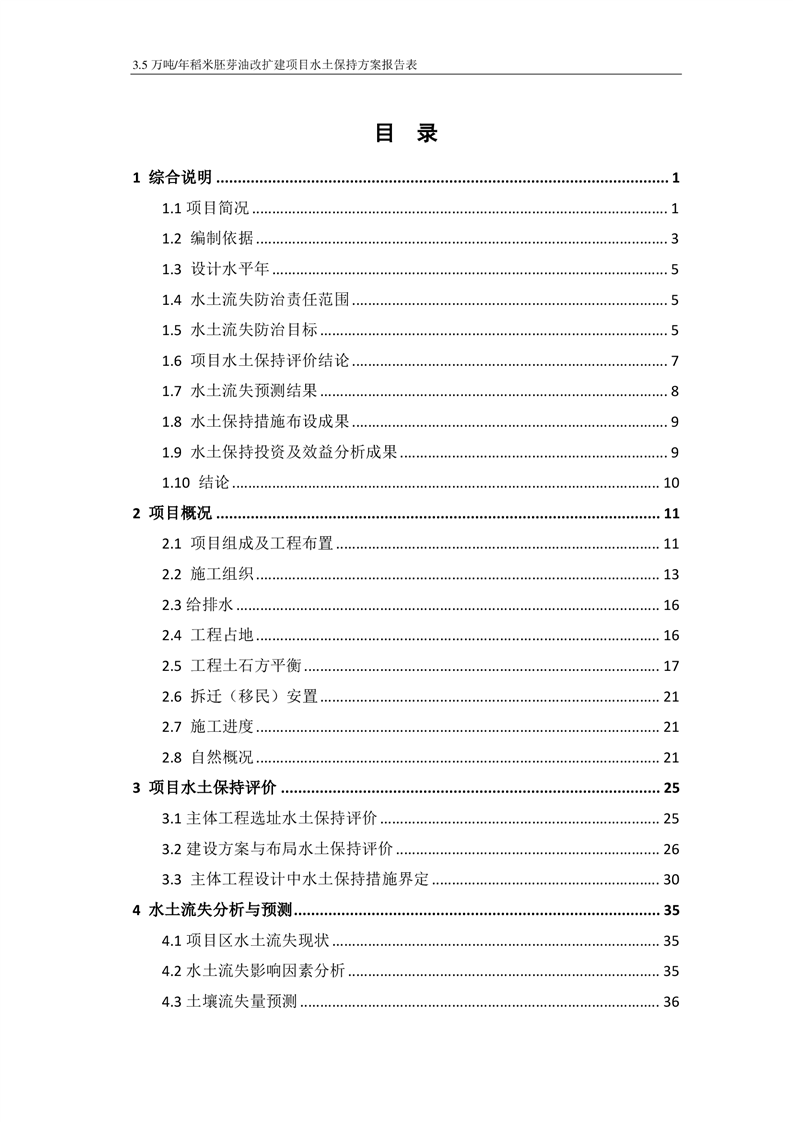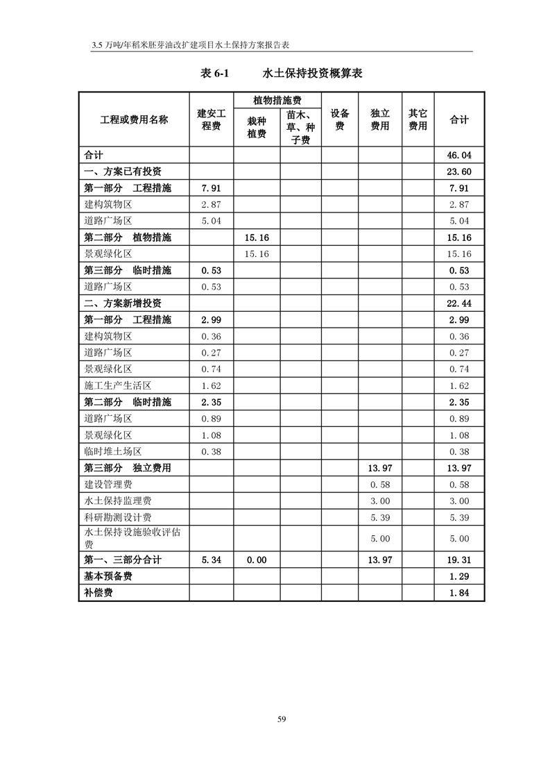 关于《3.5 万吨/年稻米胚芽油改扩建项目水土保持方案》征求公众意见稿