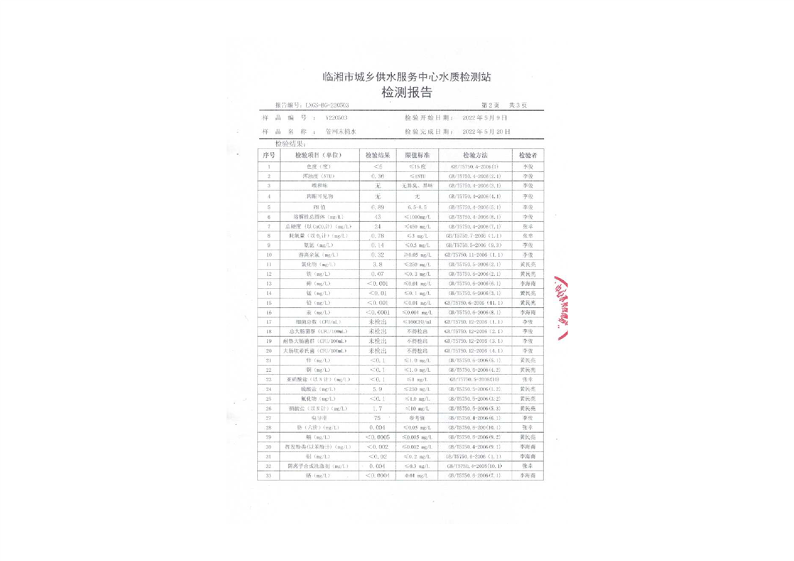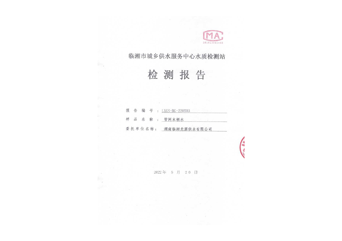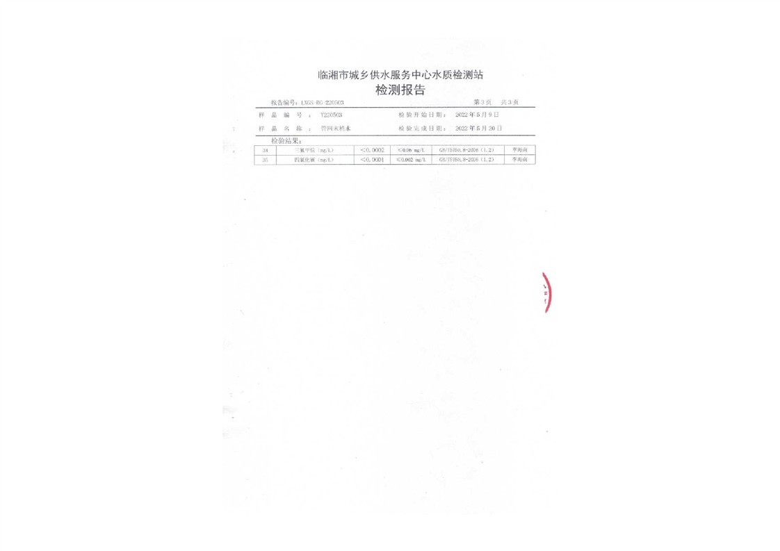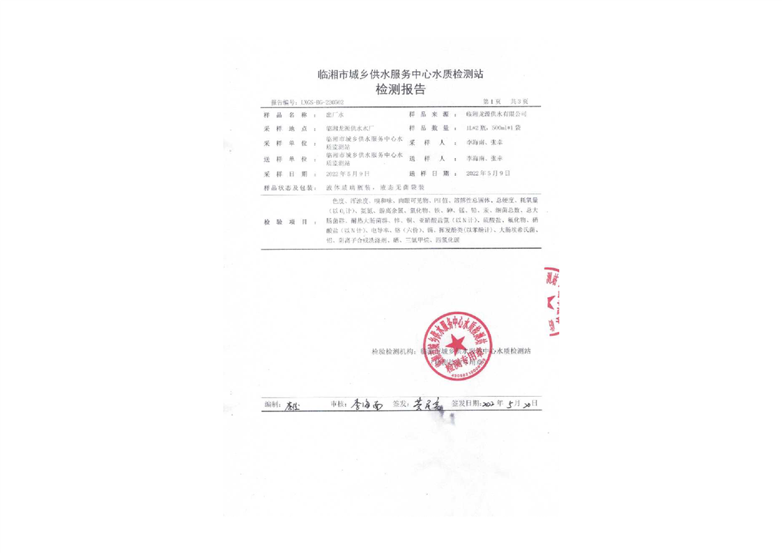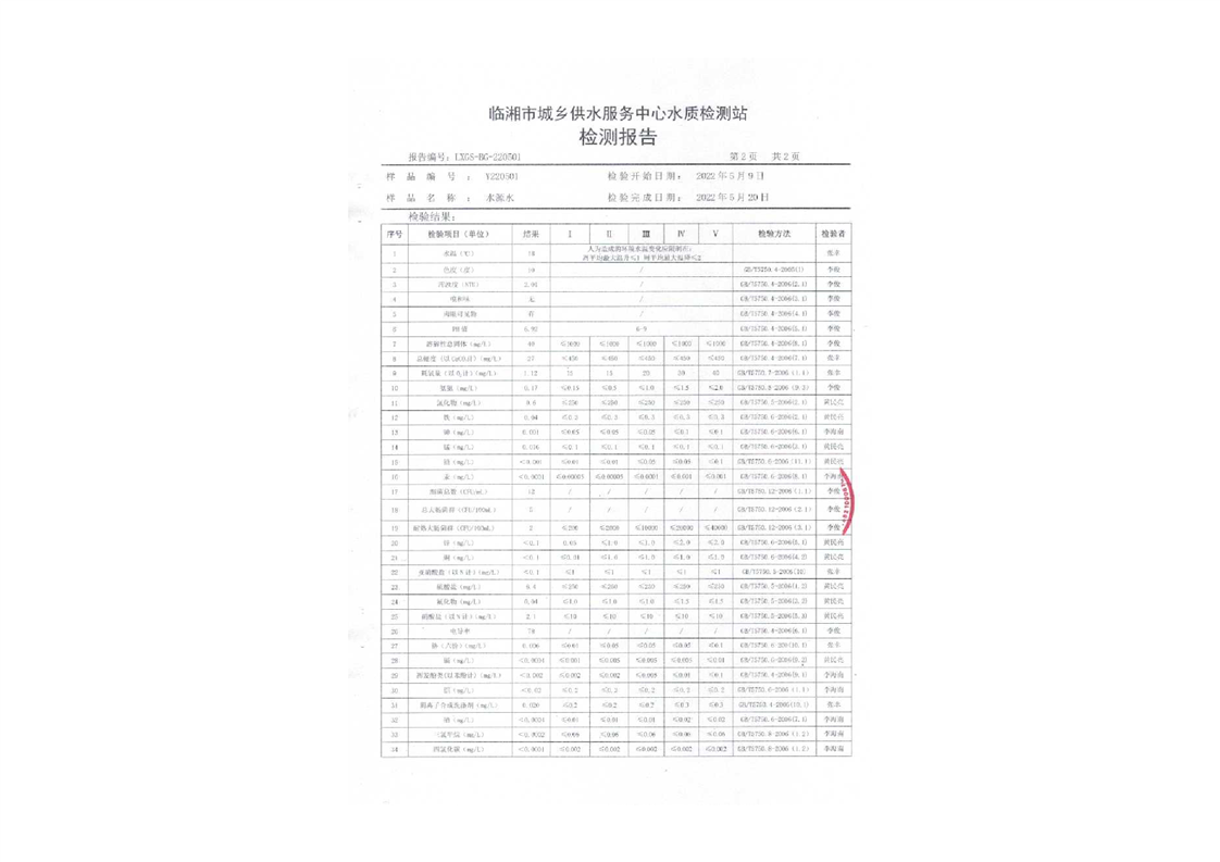五月份水质检测报告