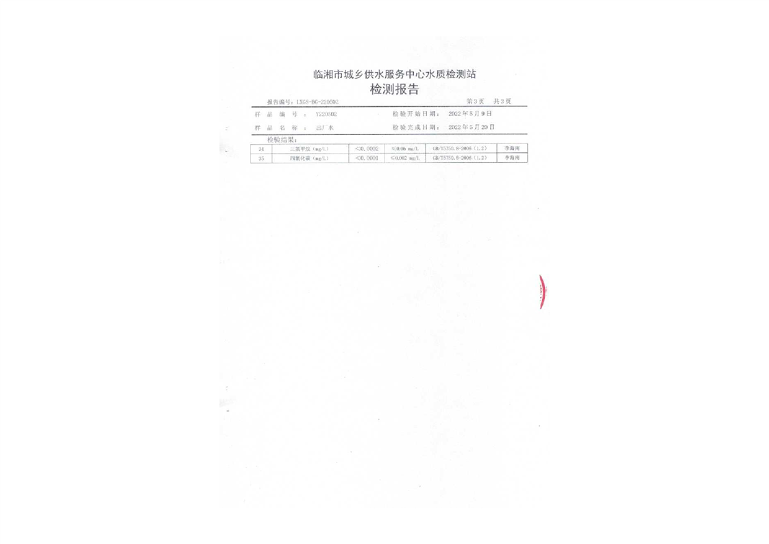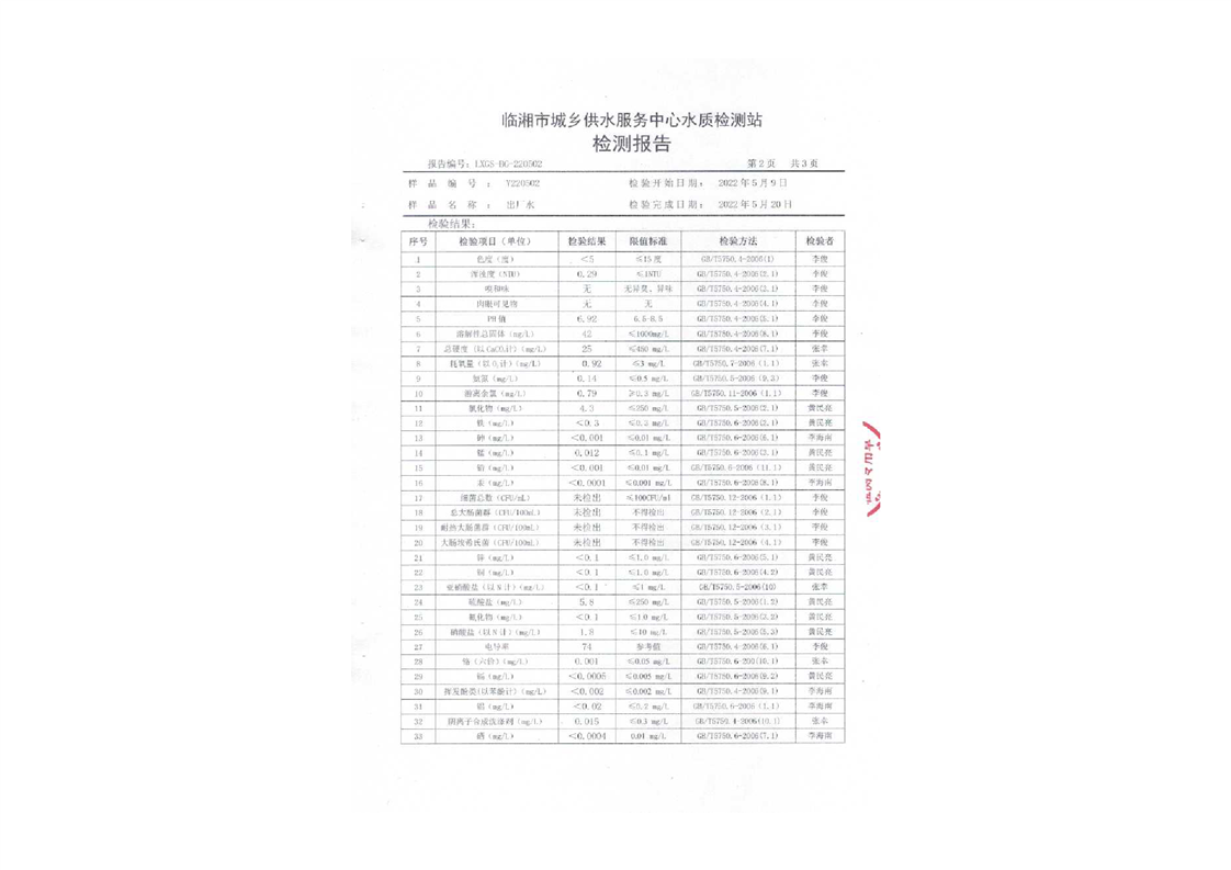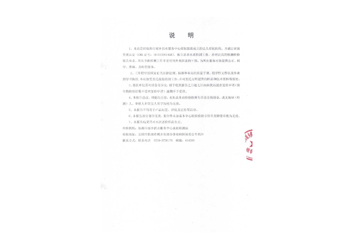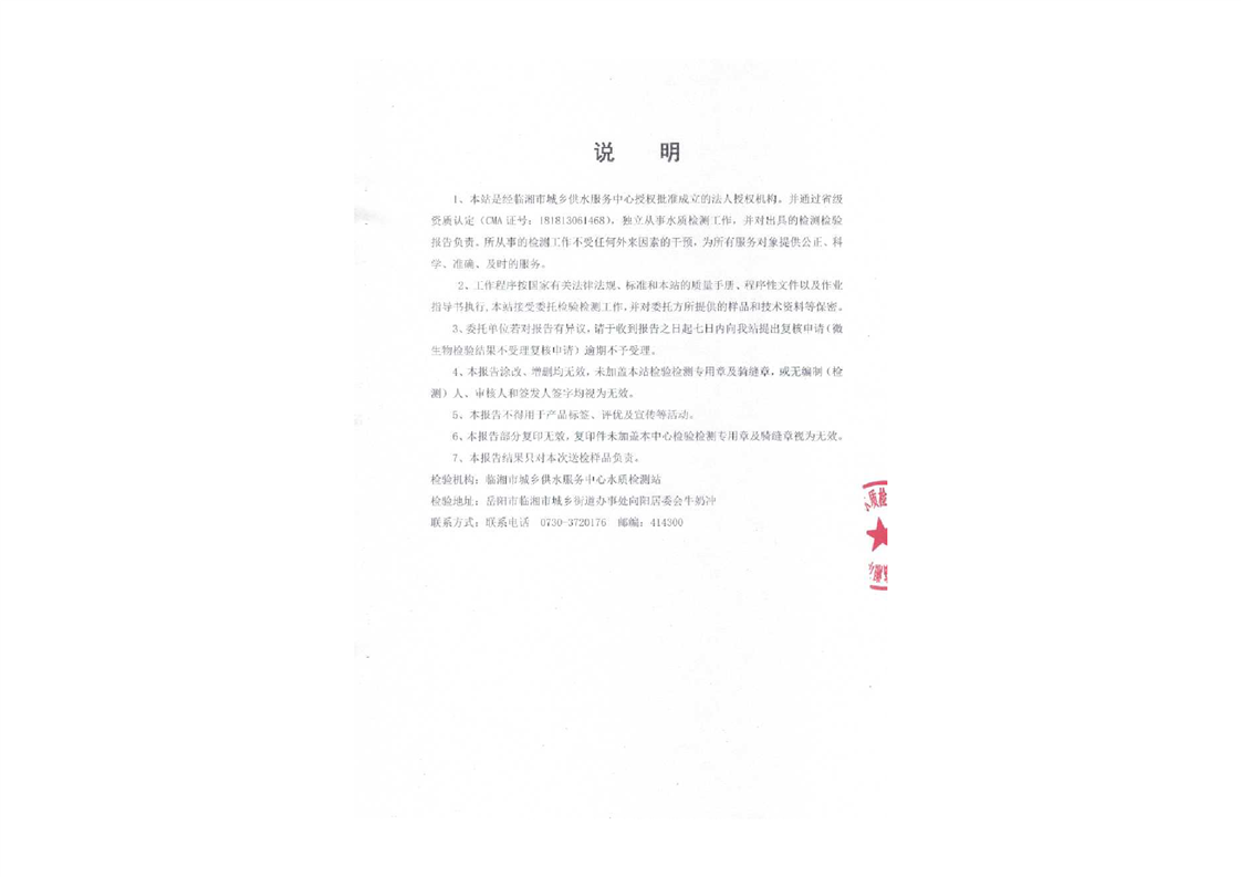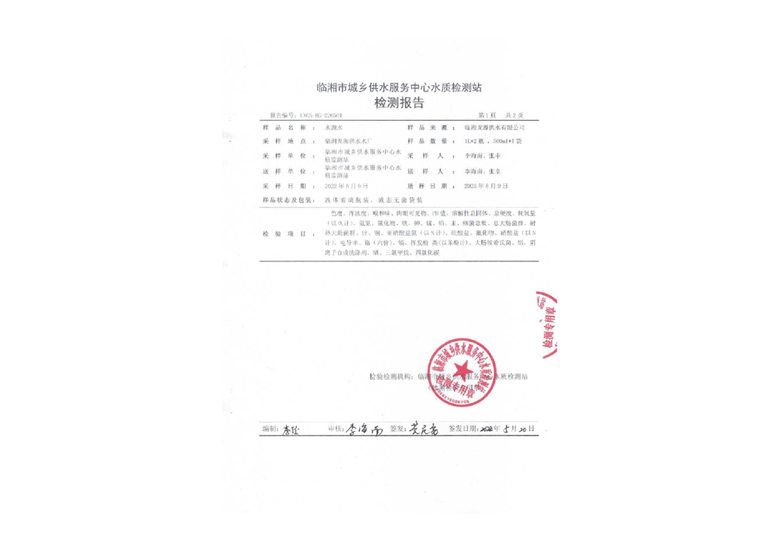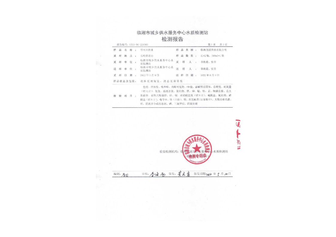 五月份水质检测报告