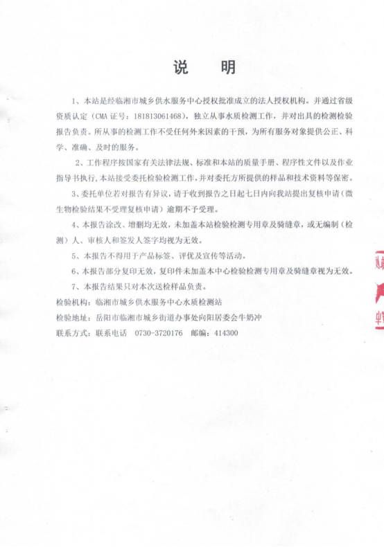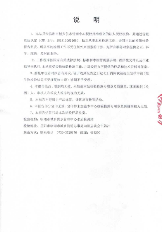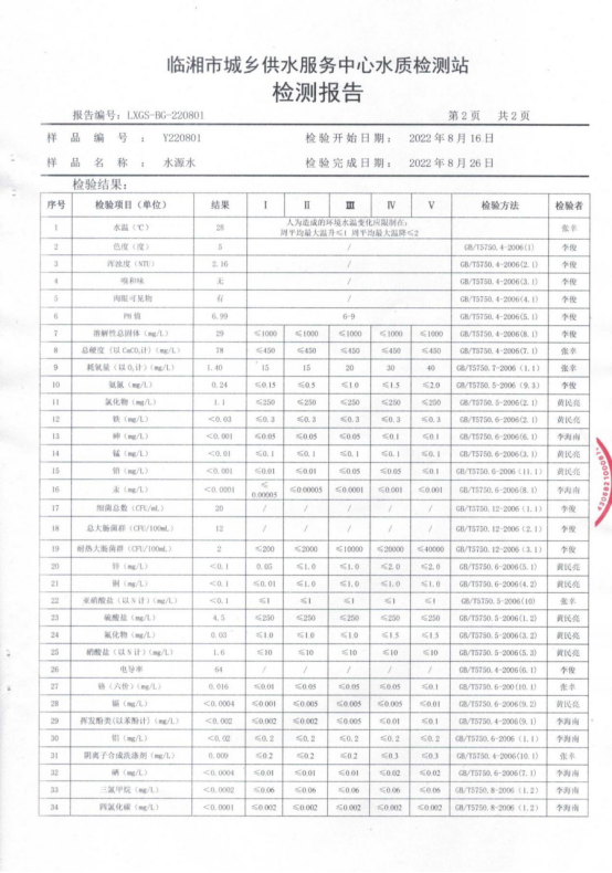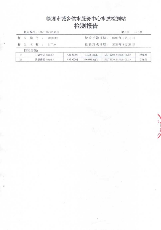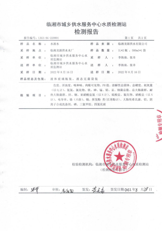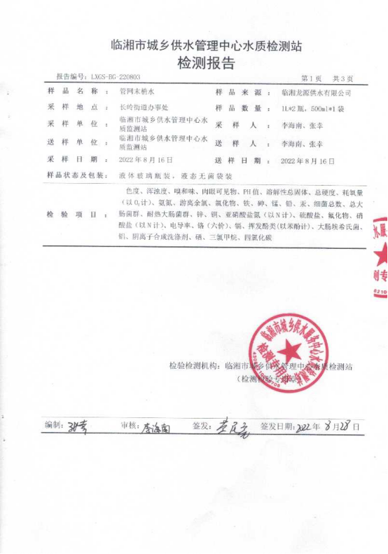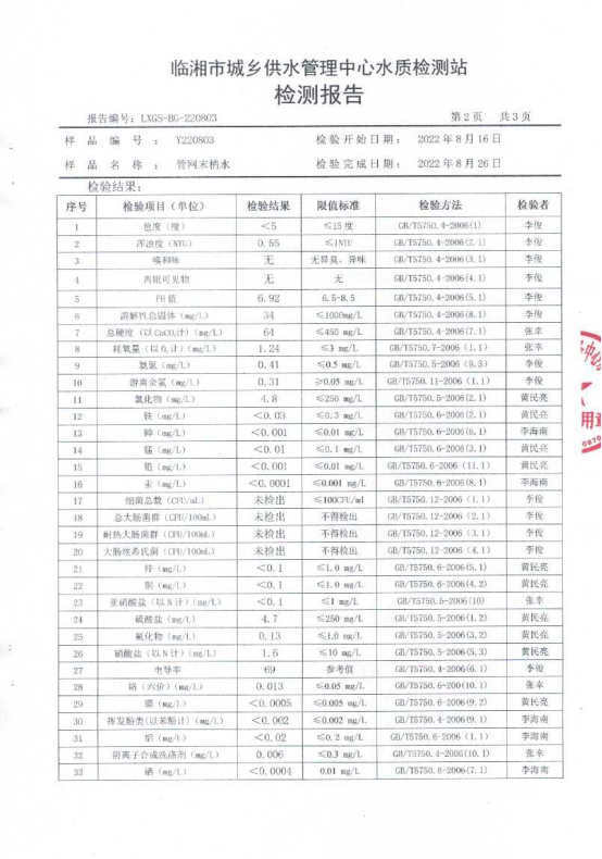 八月水质检测报告