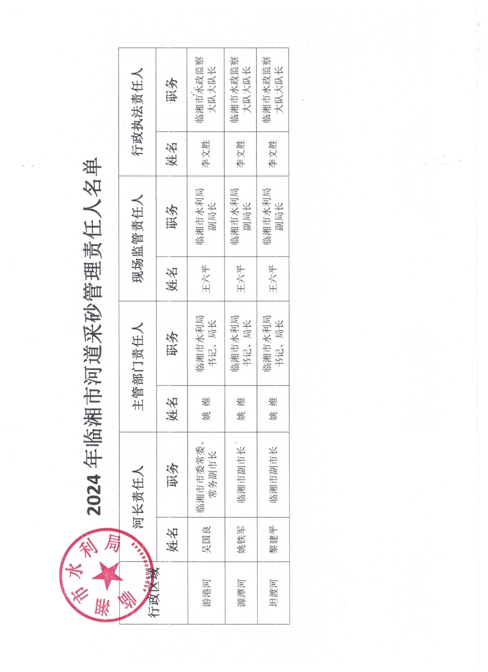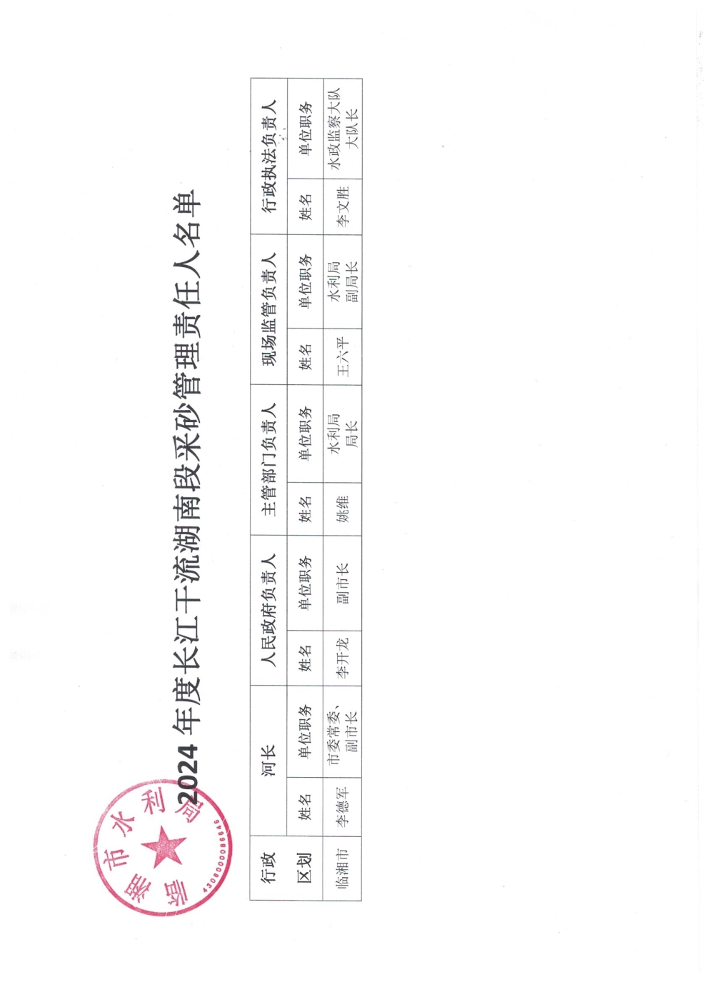 关于2024年临湘市河道采砂、长江干流湖南段采砂管理责任人名单的公示
