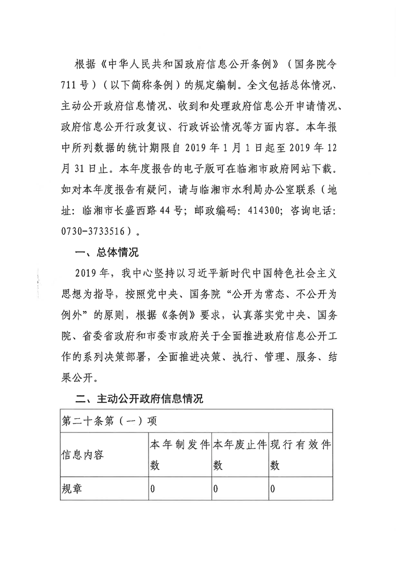 临湘市水利局2019年度政府信息公开工作报告