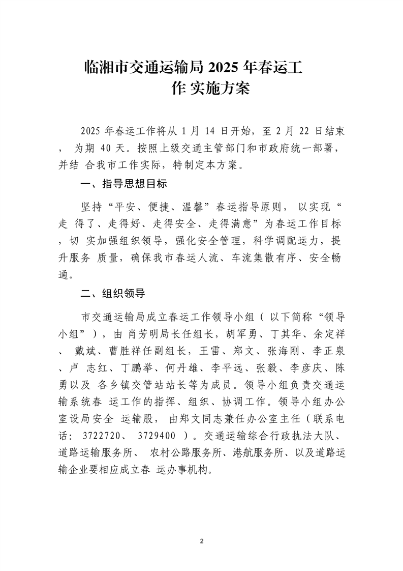 关于印发《2025年临湘市交通运输局春运工作实施方案》的通知