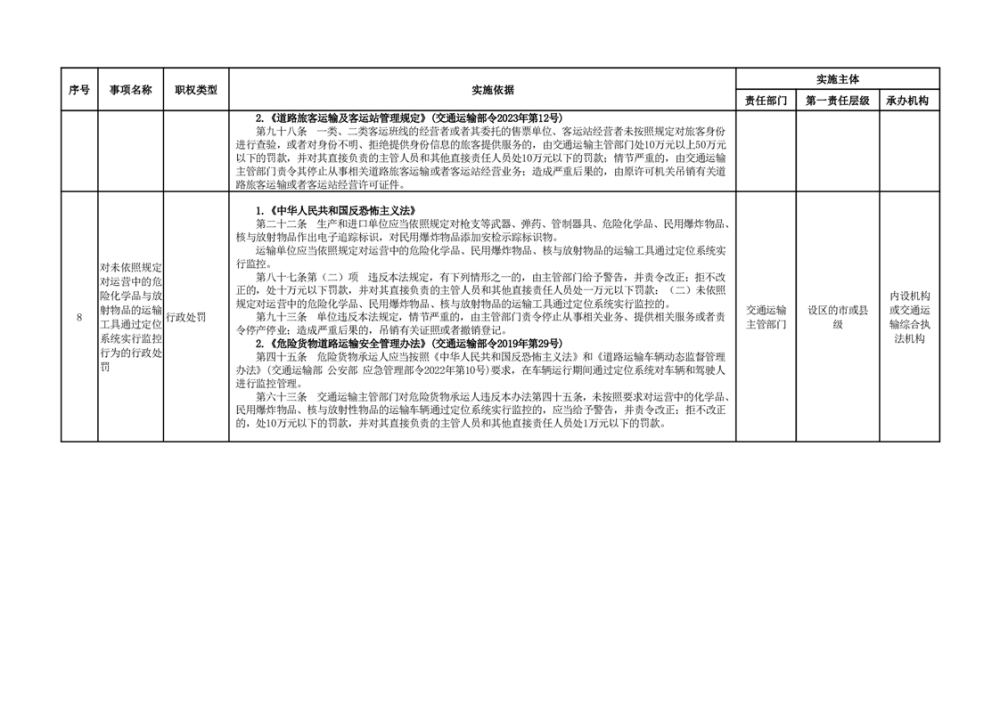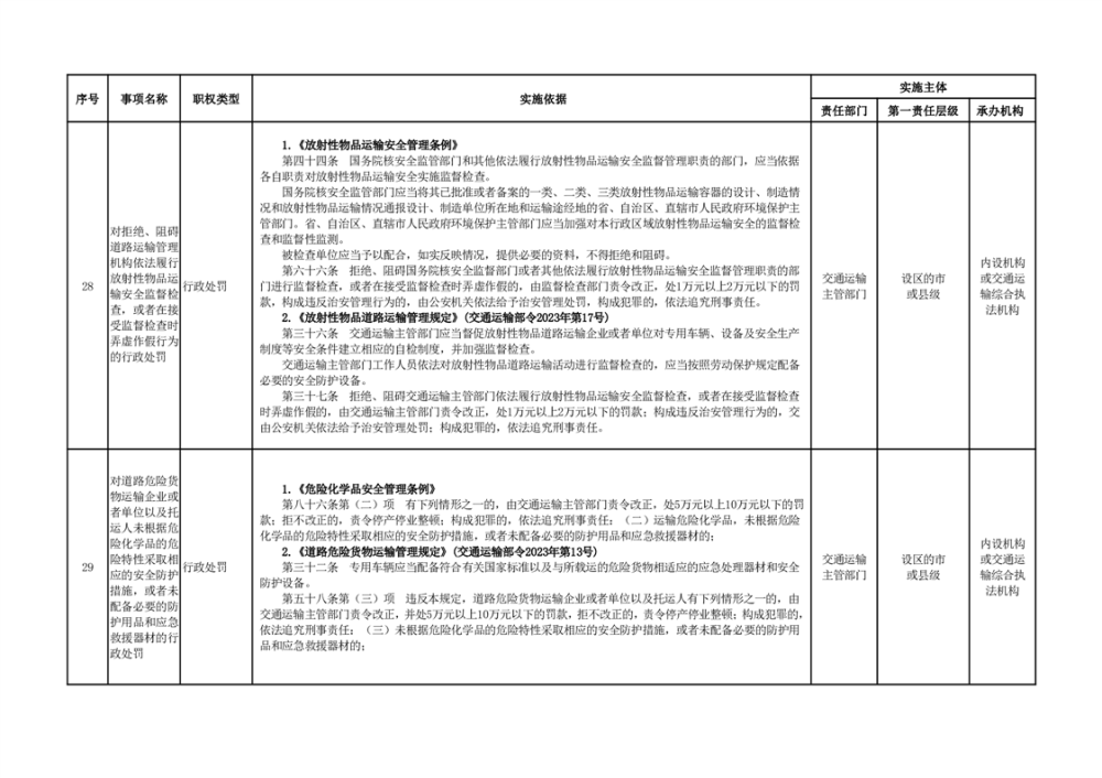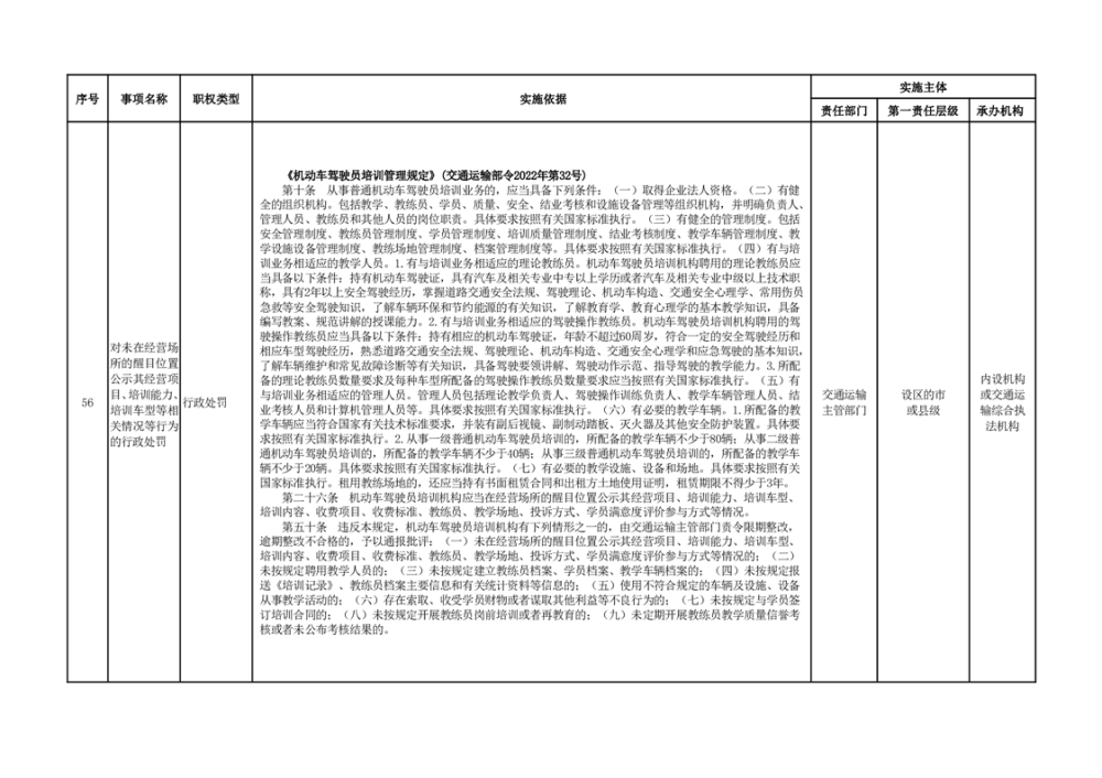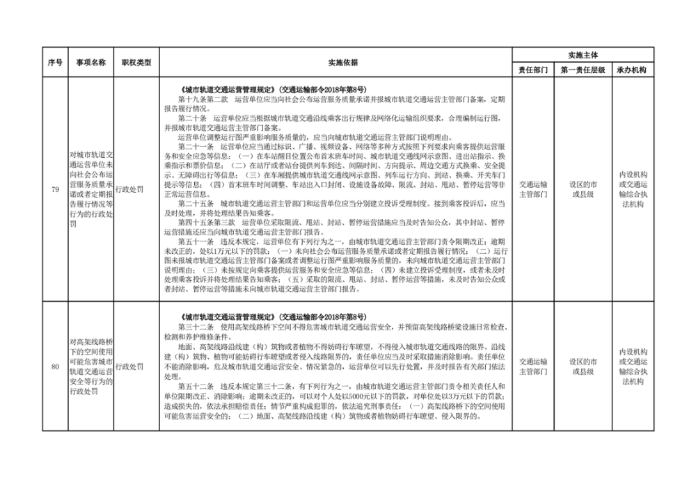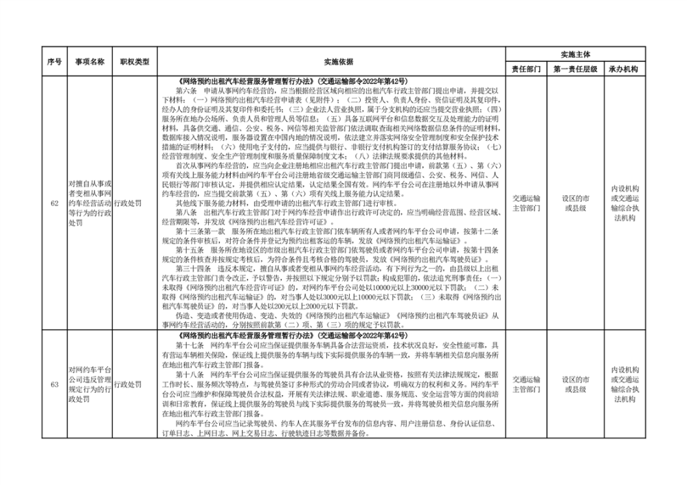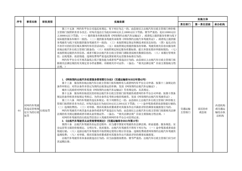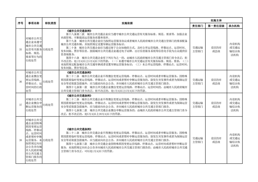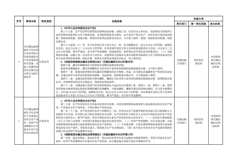 临湘市交通运输综合行政执法事项指导目录 道路运输管理85项