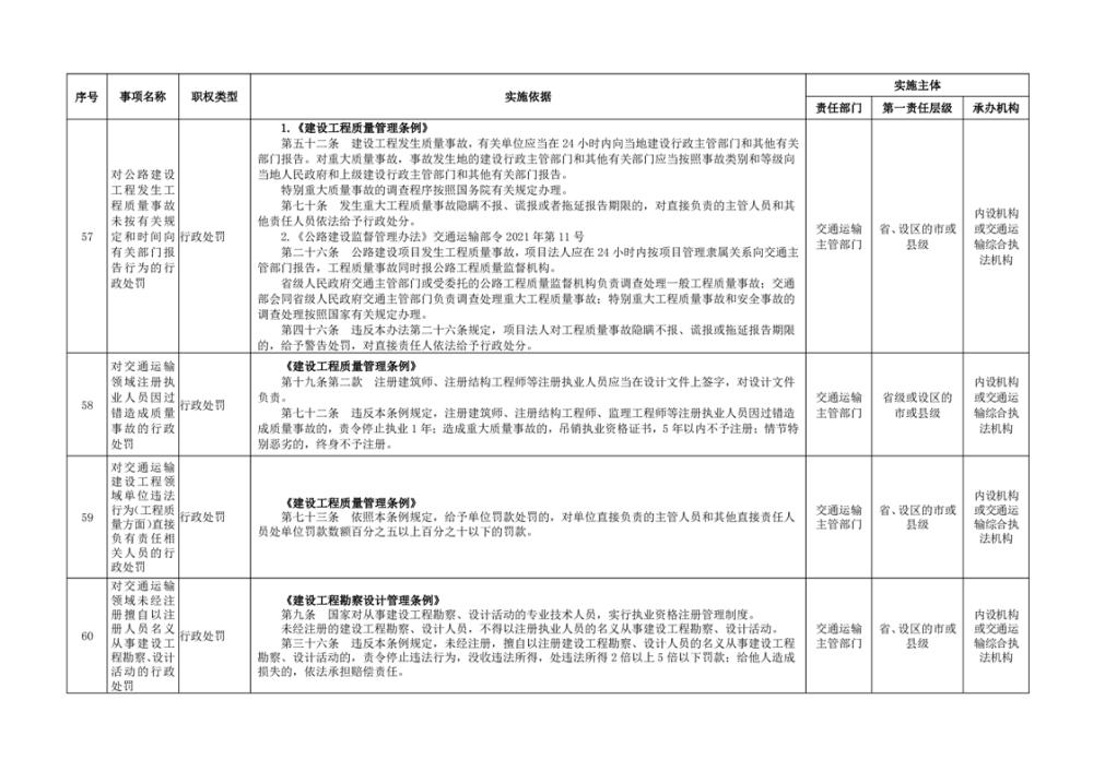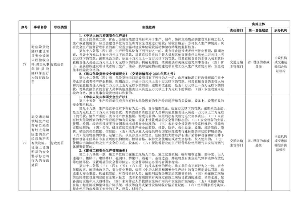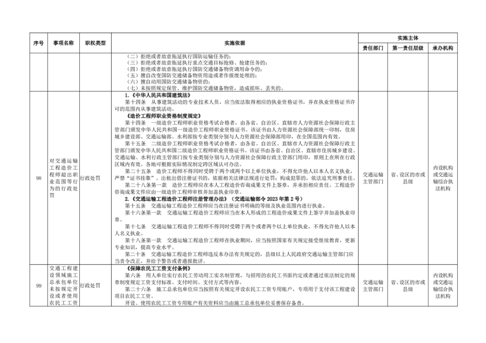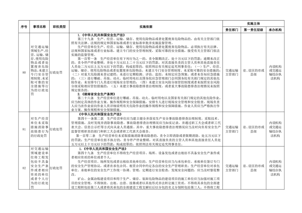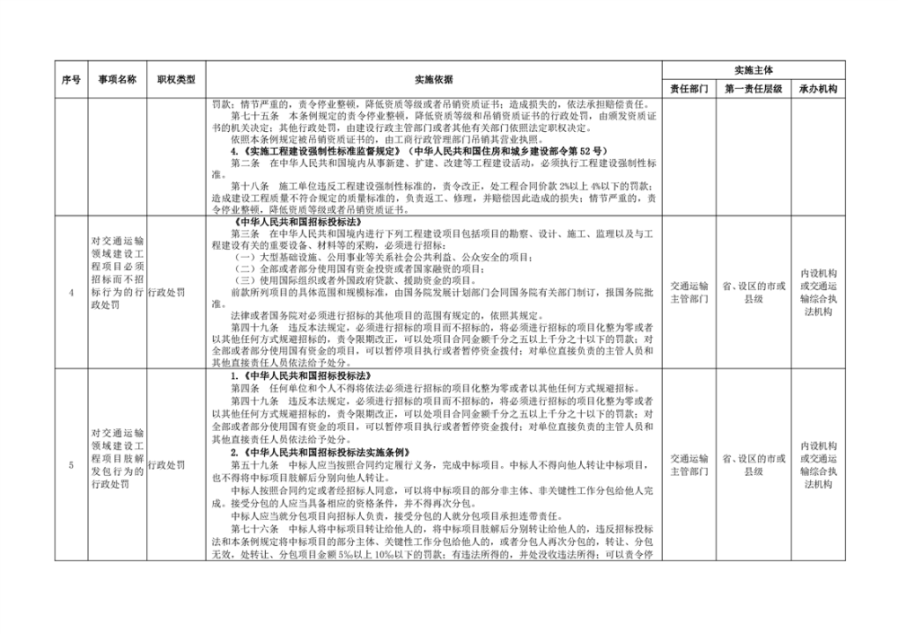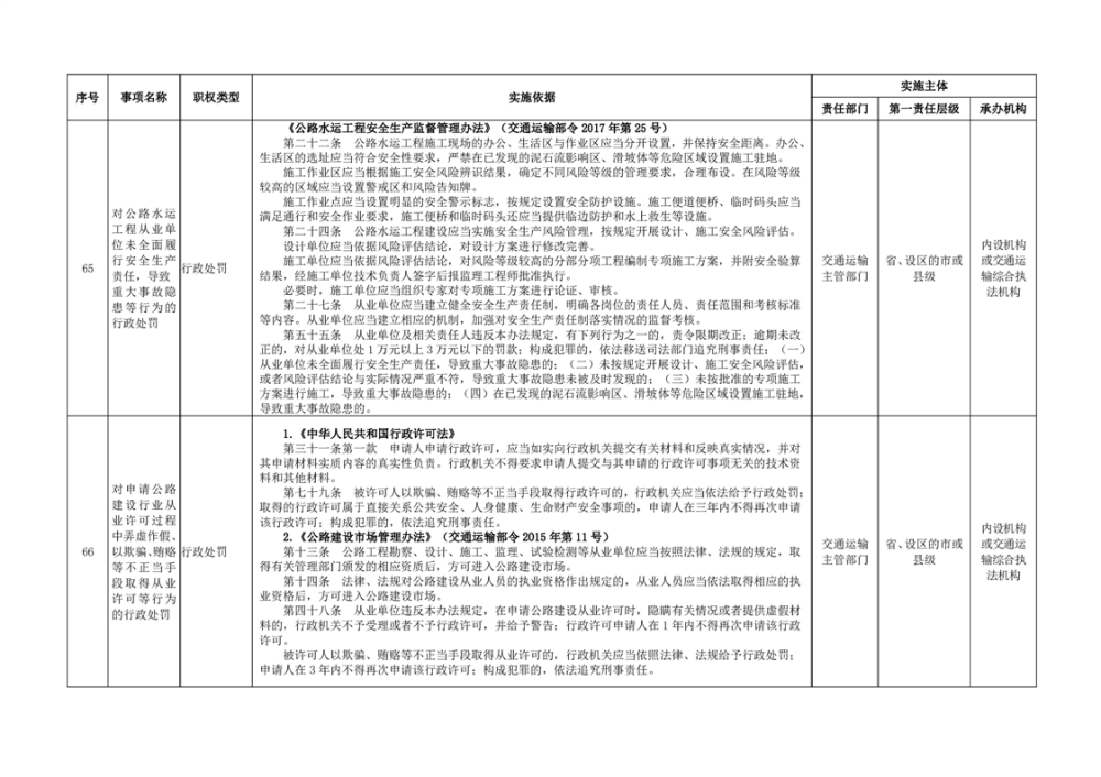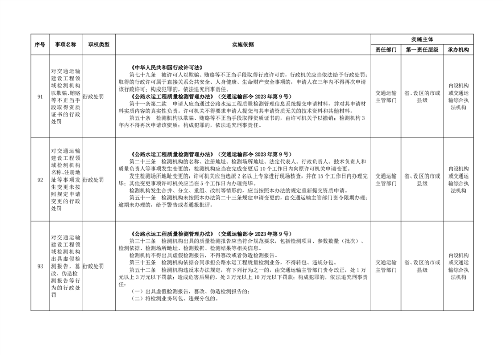 临湘市交通运输综合行政执法事项指导目录 交通建设工程质量安全监督102项