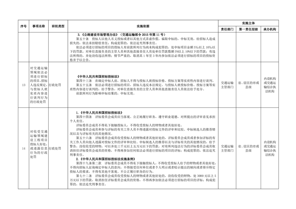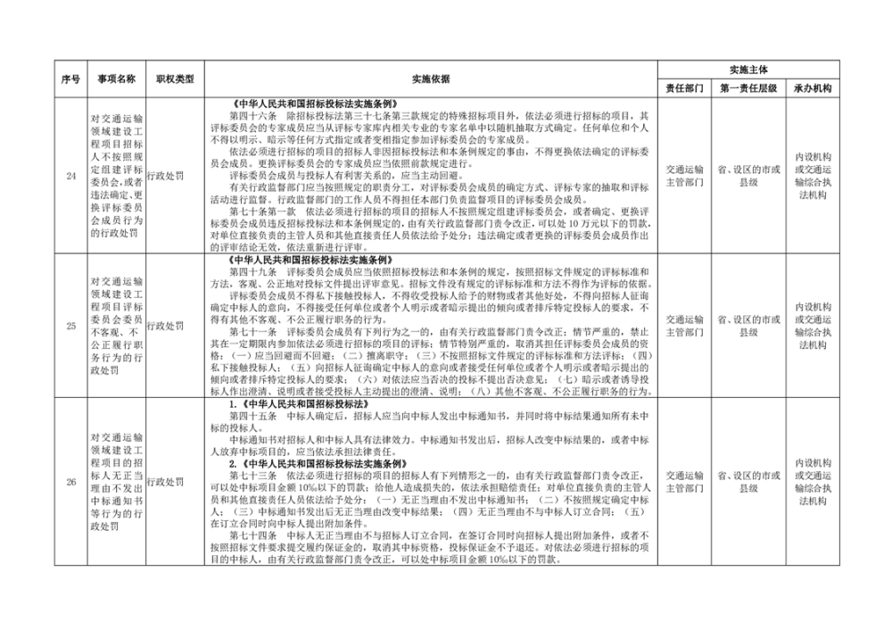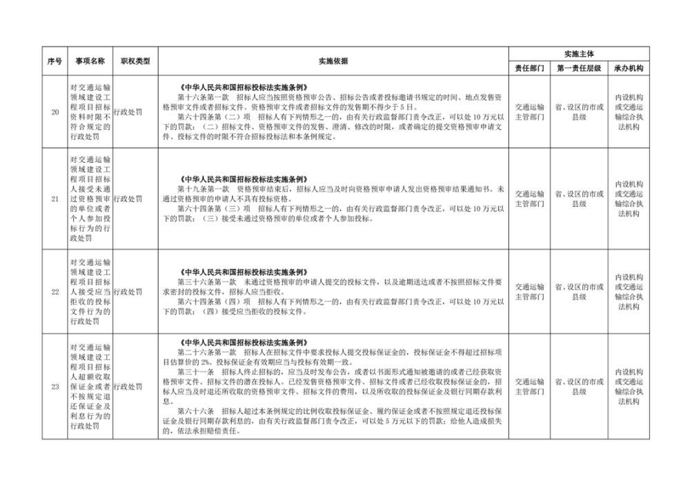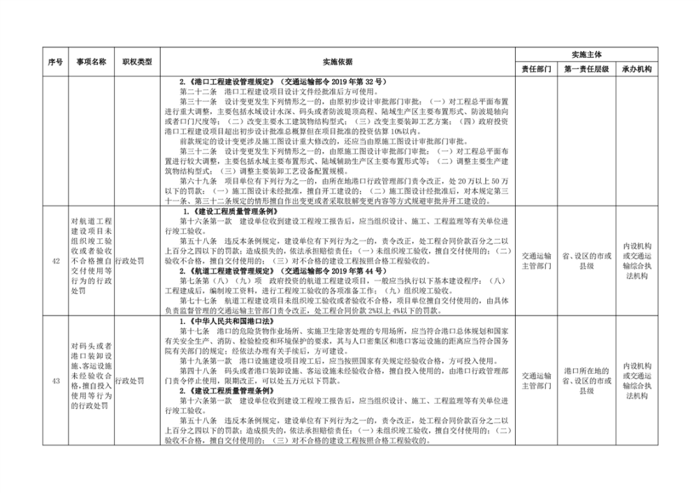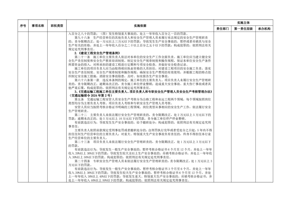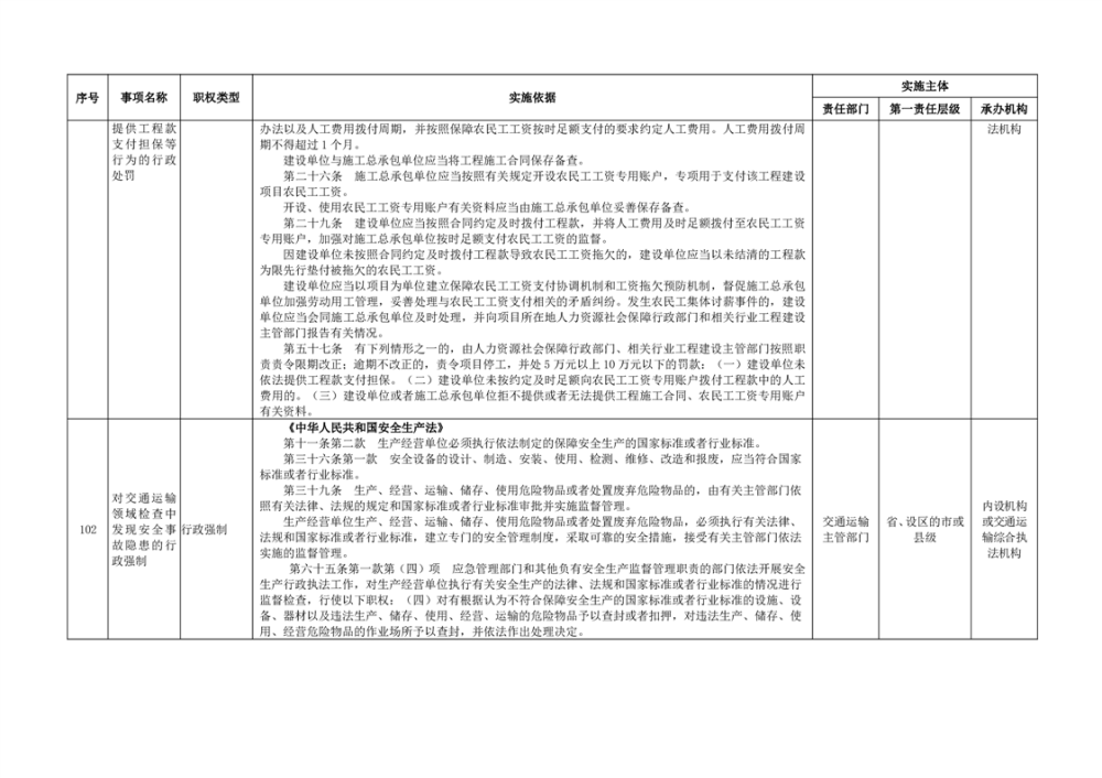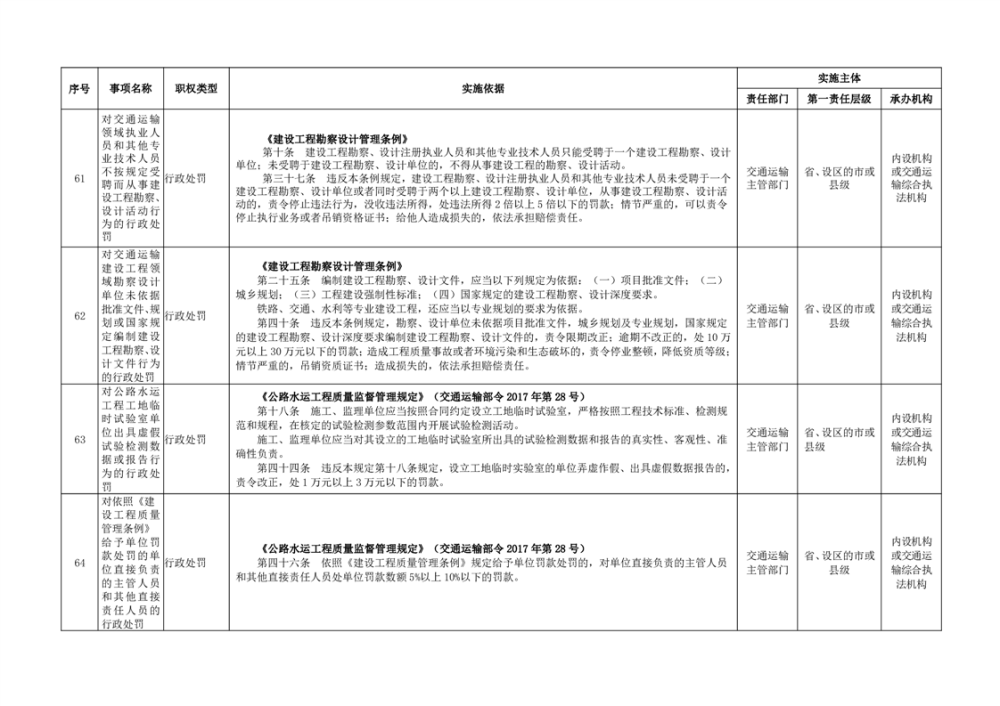 临湘市交通运输综合行政执法事项指导目录 交通建设工程质量安全监督102项