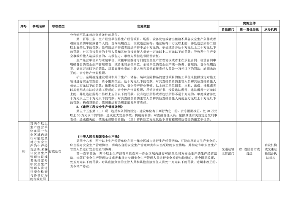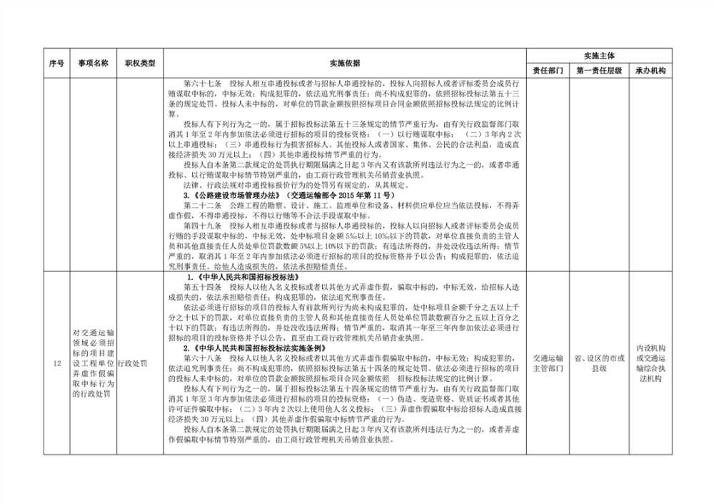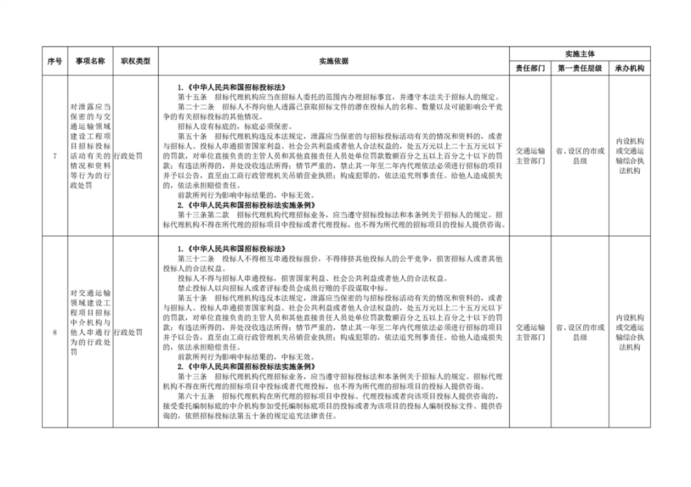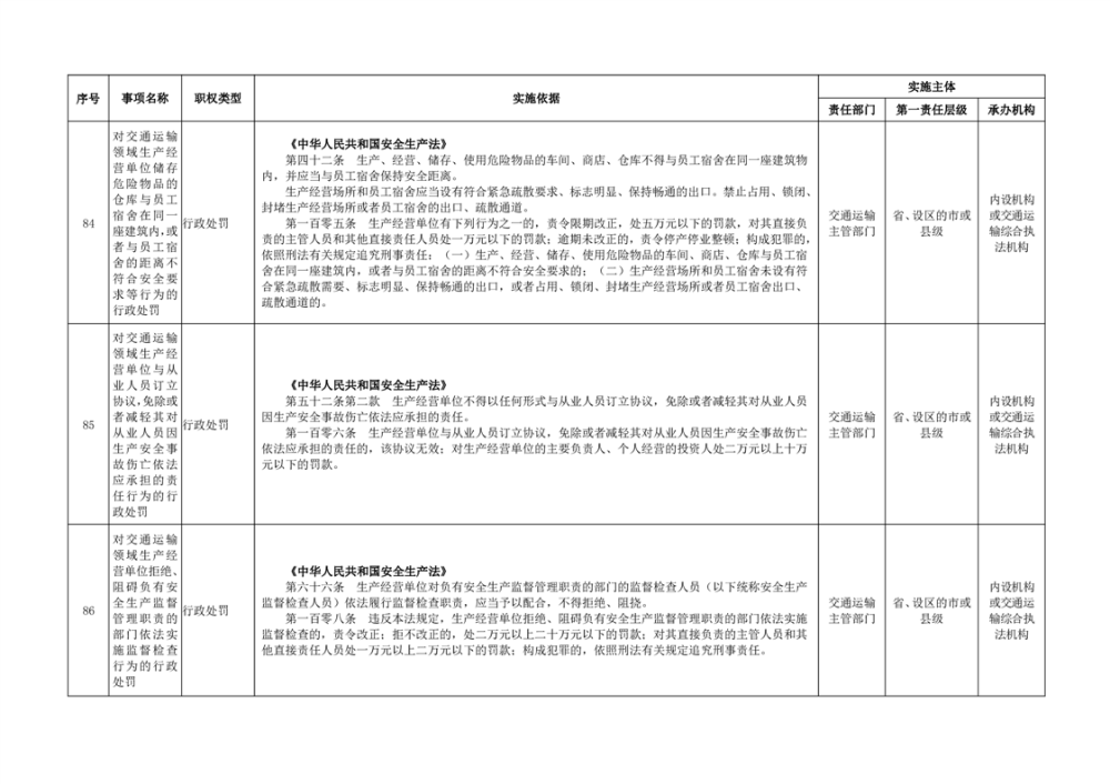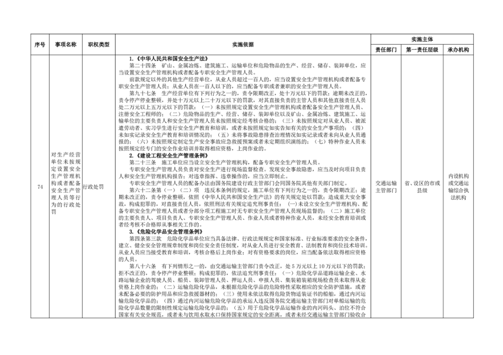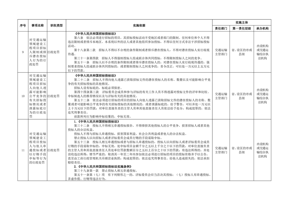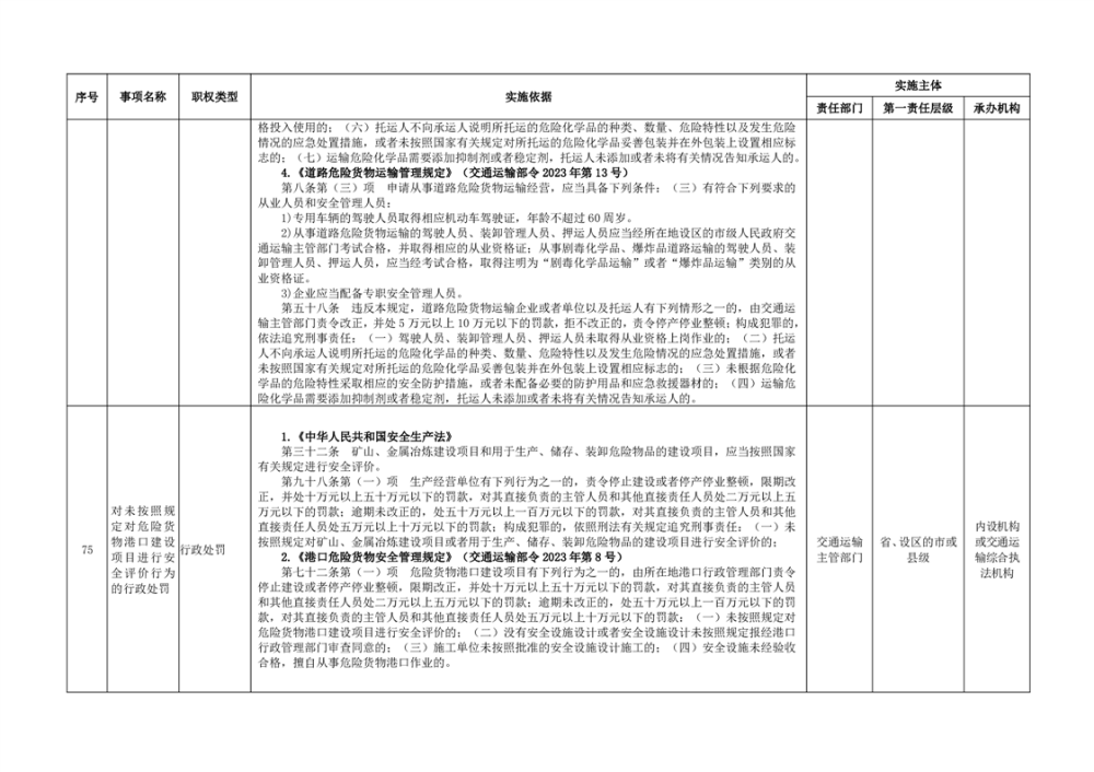 临湘市交通运输综合行政执法事项指导目录 交通建设工程质量安全监督102项