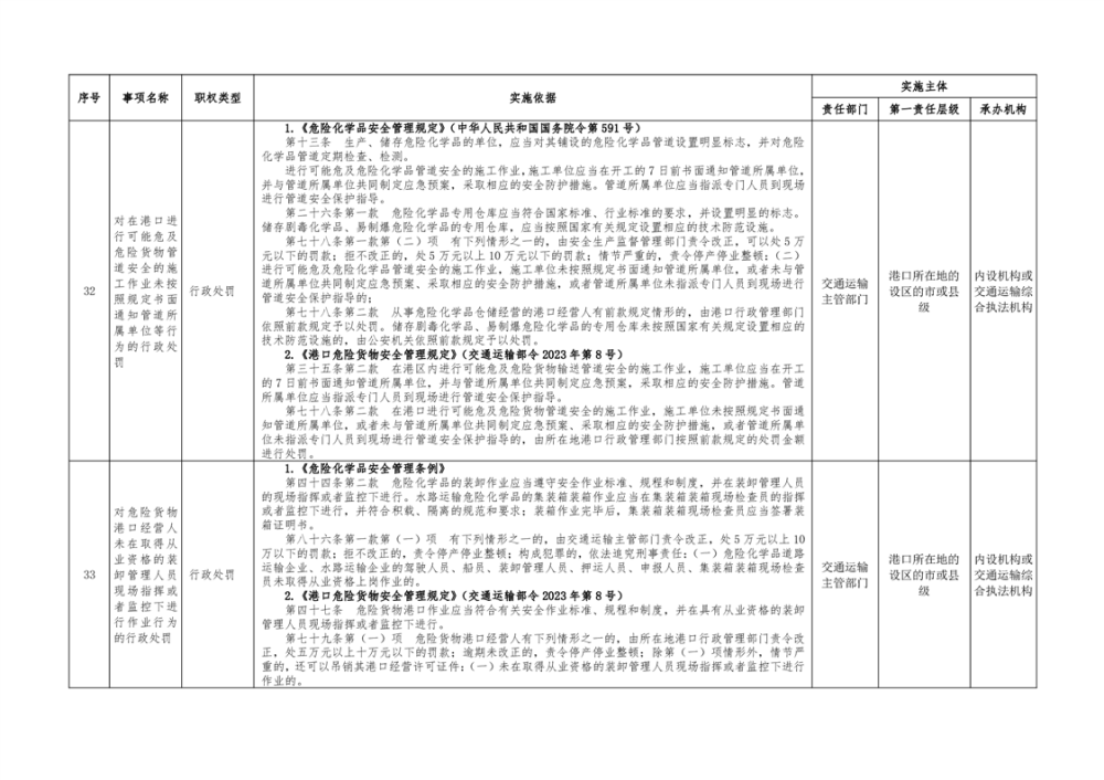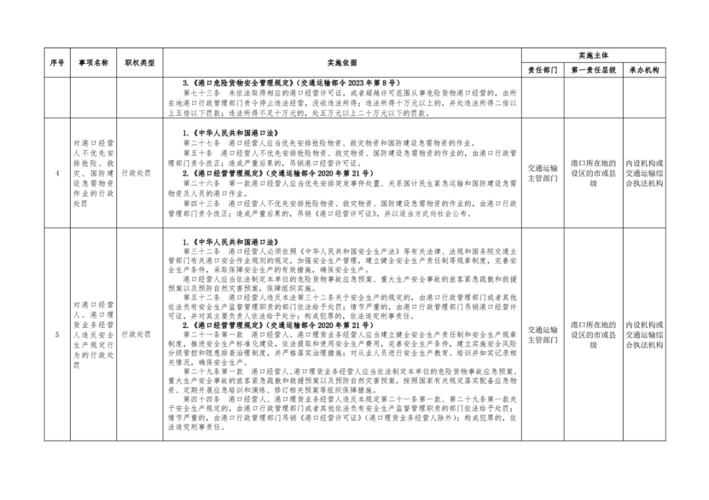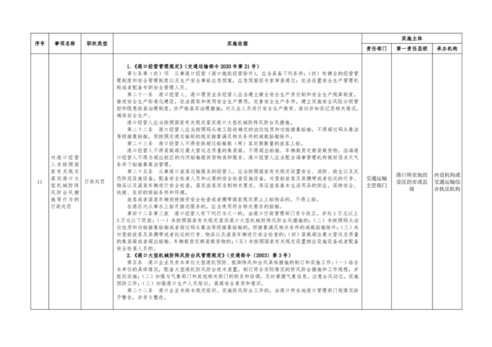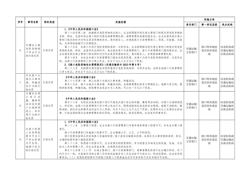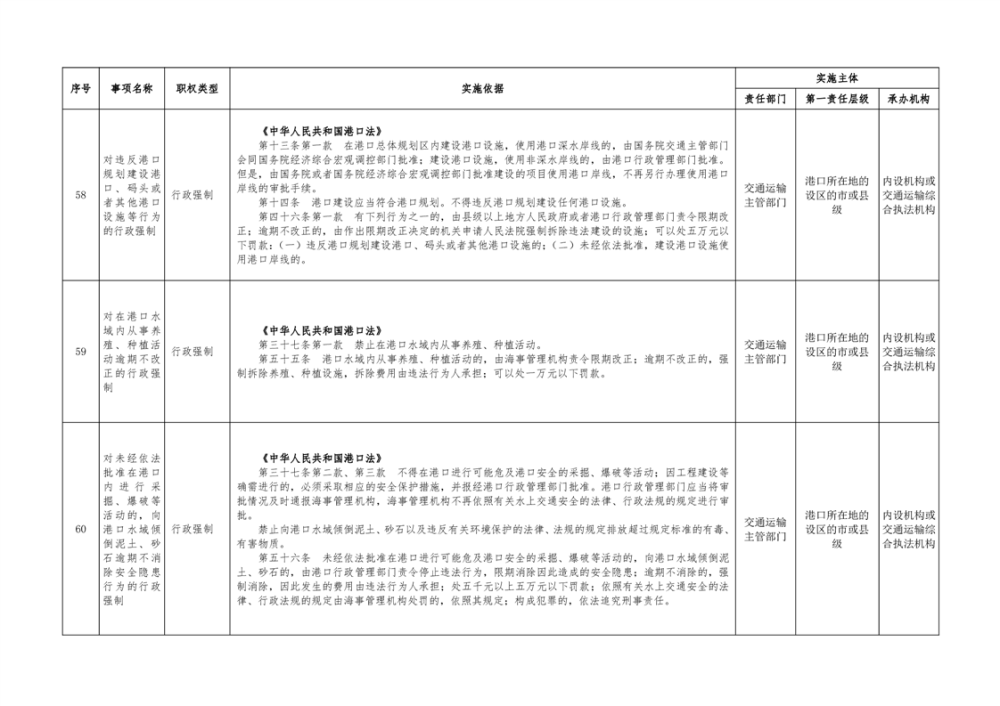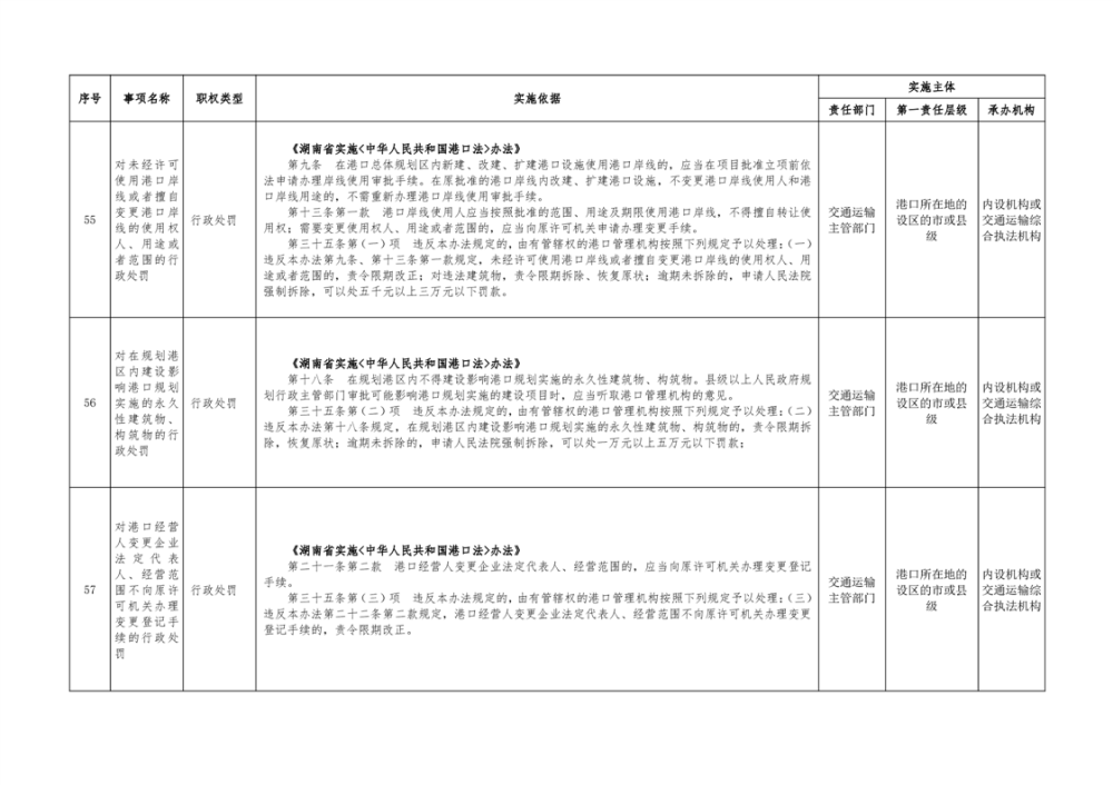 临湘市交通运输综合行政执法事项指导目录 港口管理62项