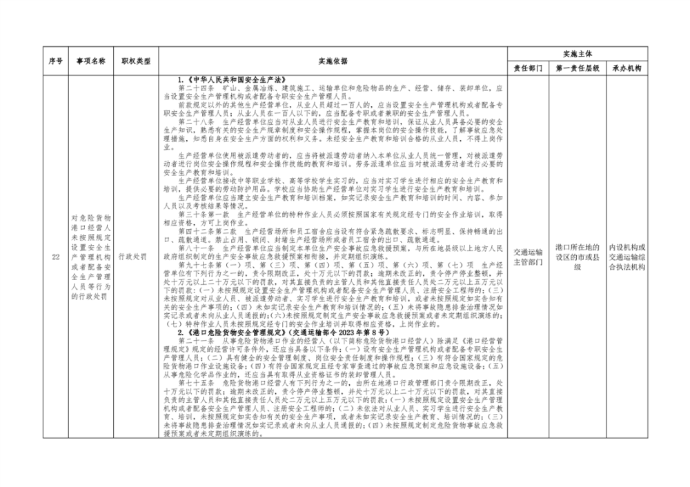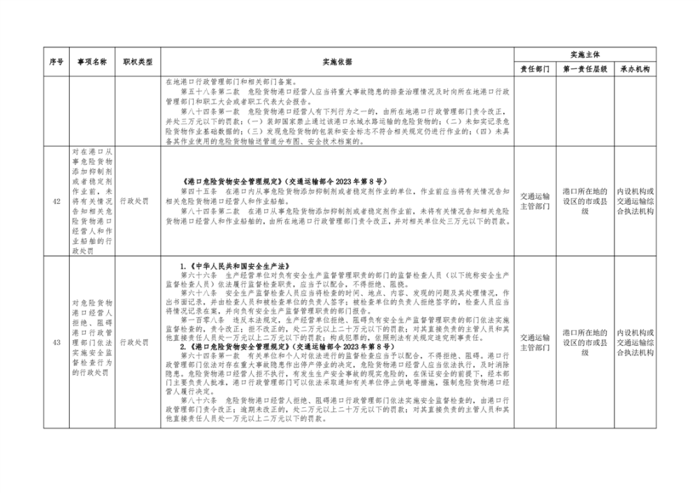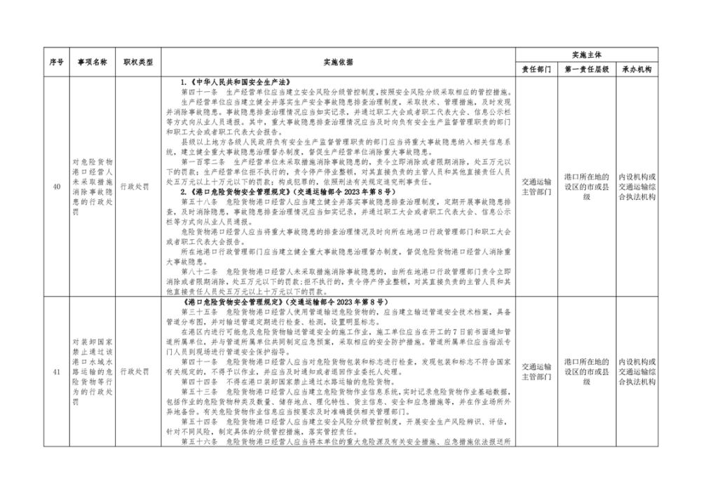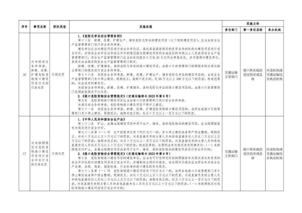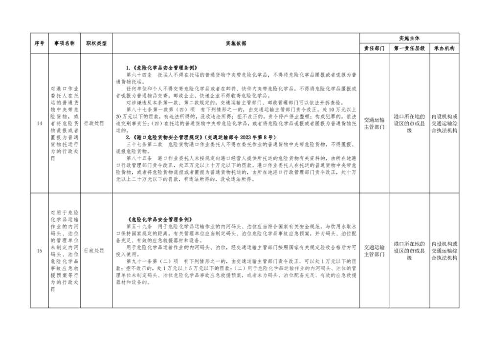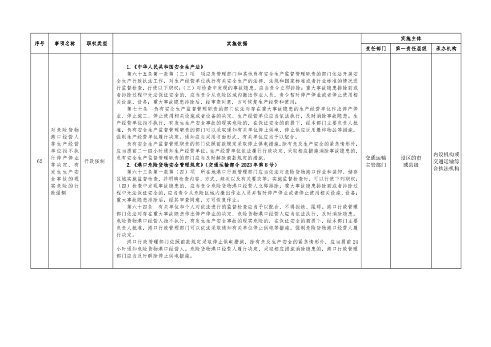 临湘市交通运输综合行政执法事项指导目录 港口管理62项