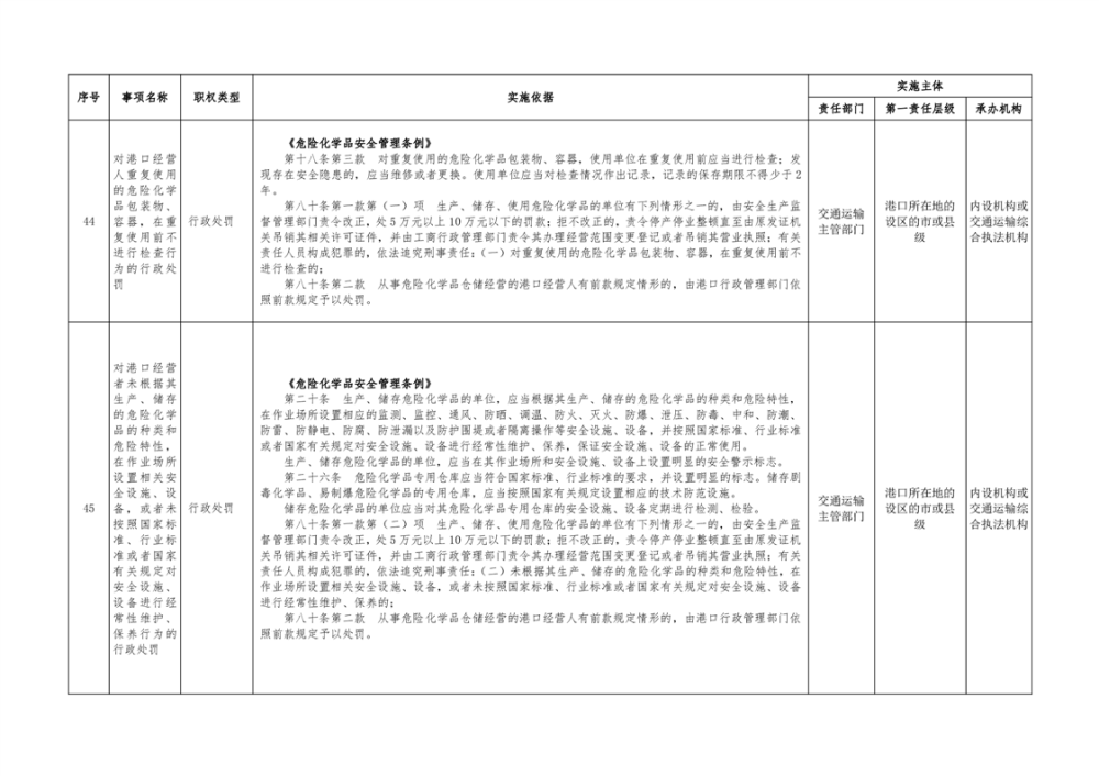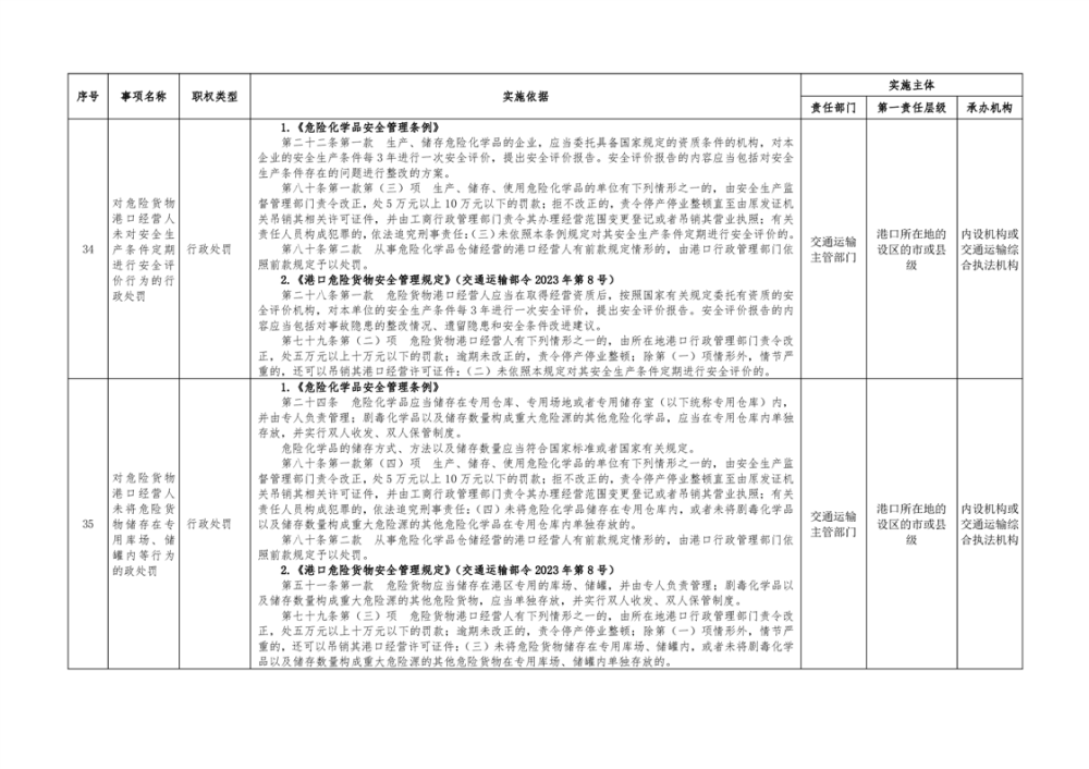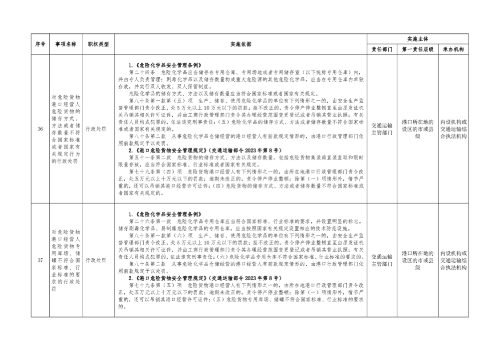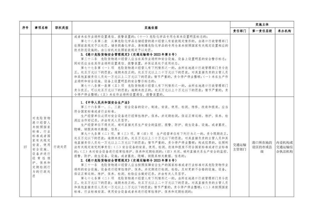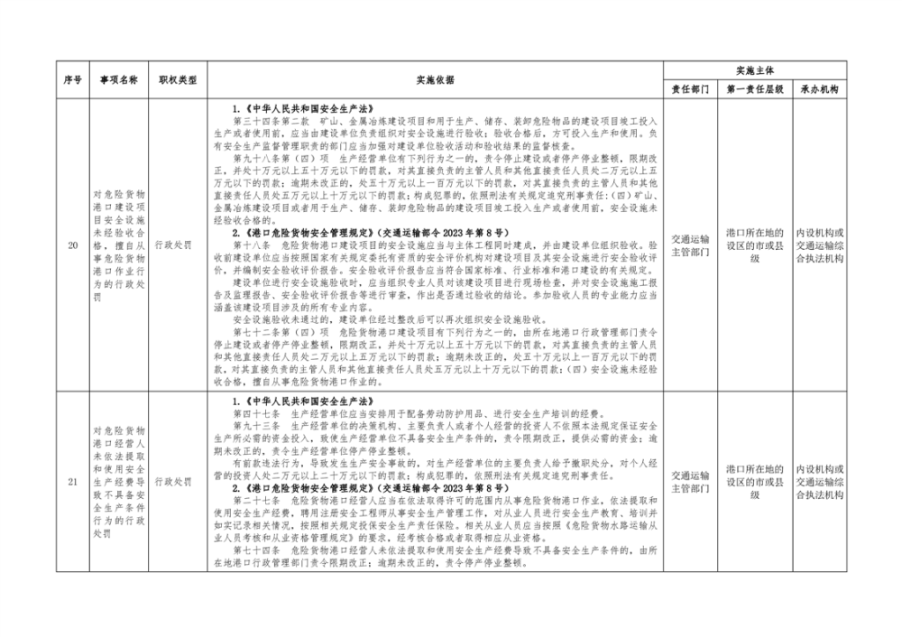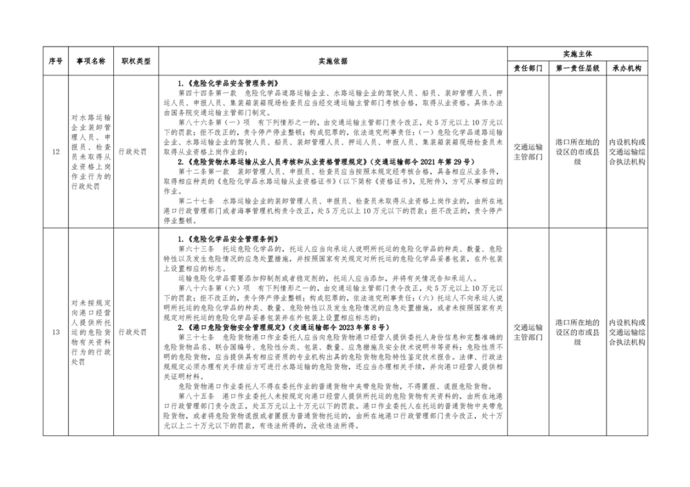 临湘市交通运输综合行政执法事项指导目录 港口管理62项